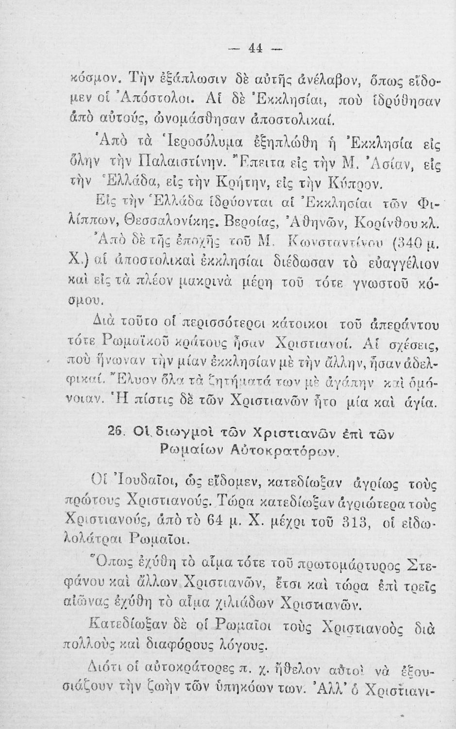 Σχολικό εγχειρίδιο Θρησκευτικών Ε΄ και ΣΤ΄ Δημοτικού που αποτελεί μια ιστορική επισκόπηση της Ορθόδοξης Εκκλησίας από την ίδρυσή της μέχρι την ίδρυση της Εκκλησίας της Ελλάδας.