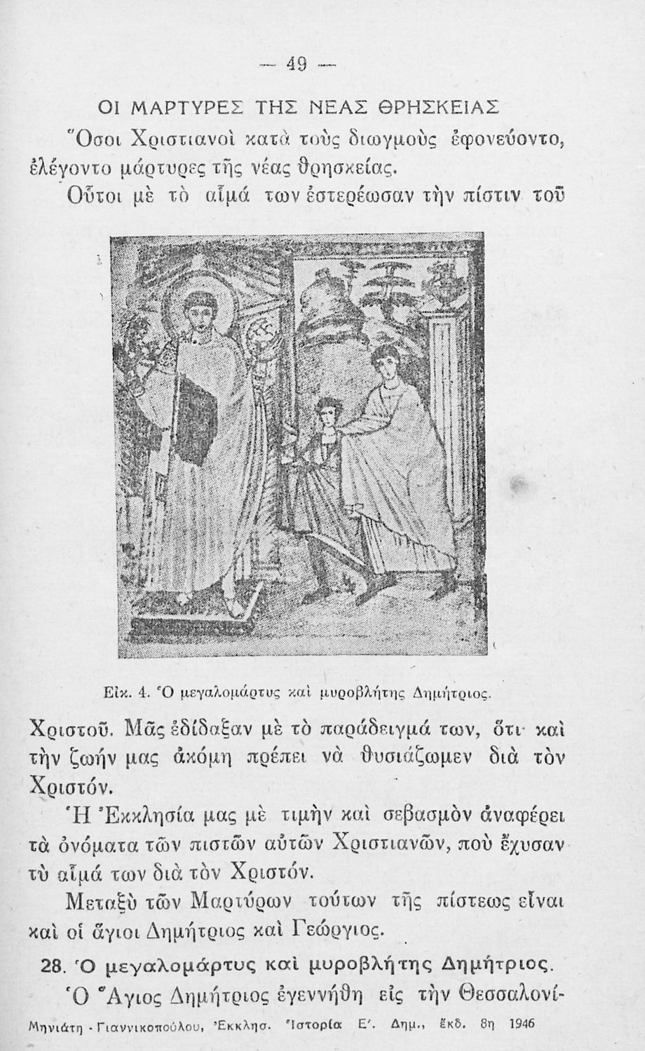 Σχολικό εγχειρίδιο Θρησκευτικών Ε΄ Δημοτικού που αποτελεί μια ιστορική επισκόπηση της Ορθόδοξης Εκκλησίας από την ίδρυσή της μέχρι την ίδρυση της Εκκλησίας της Ελλάδας. Φέρει το σύμβολο της δικτατορίας.