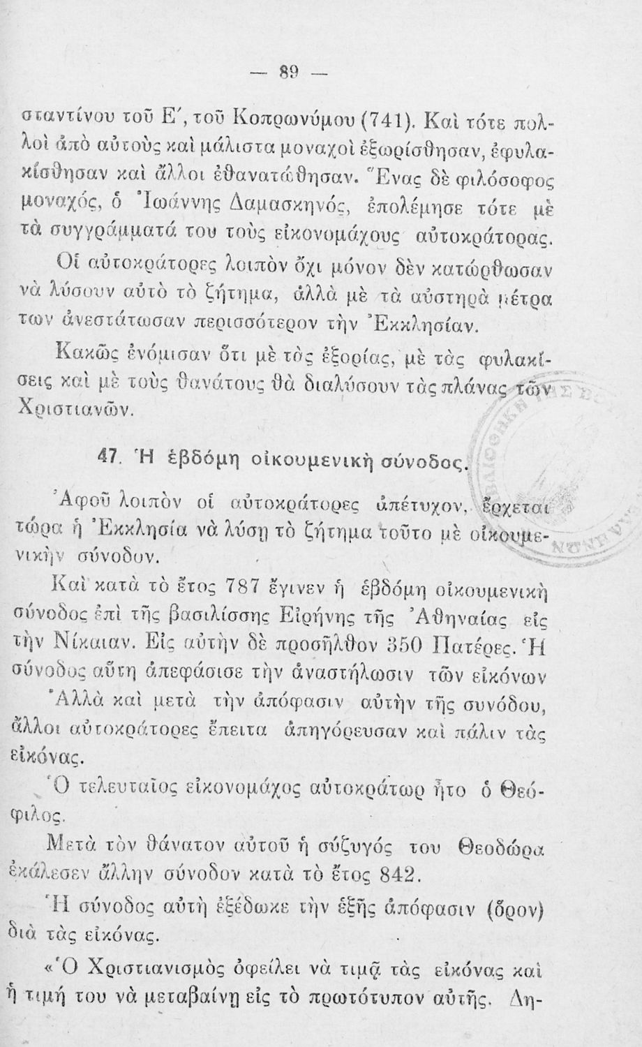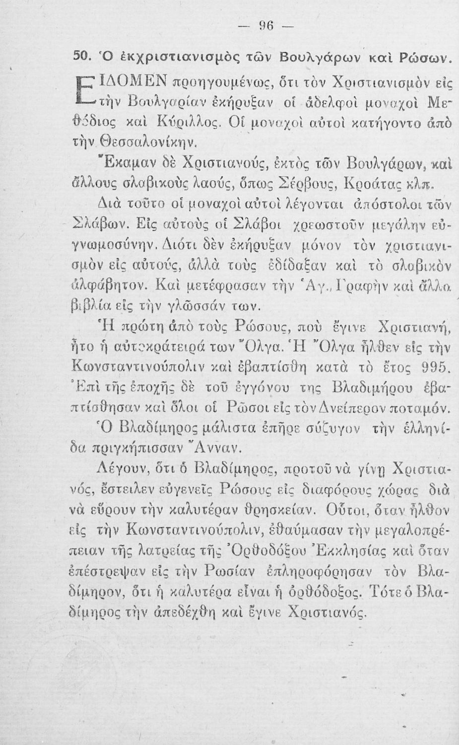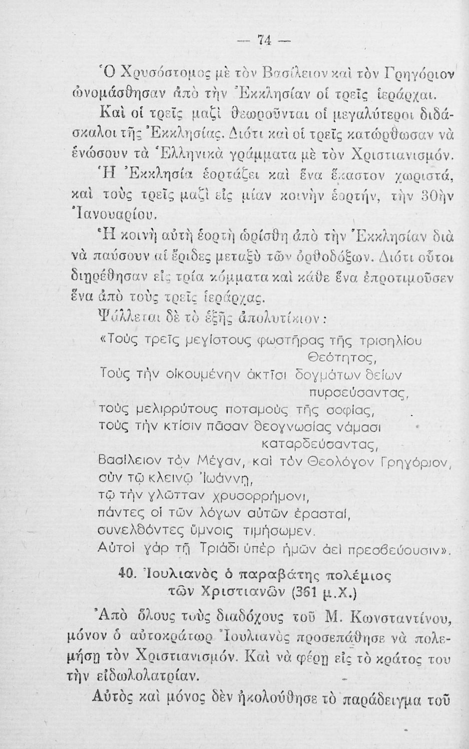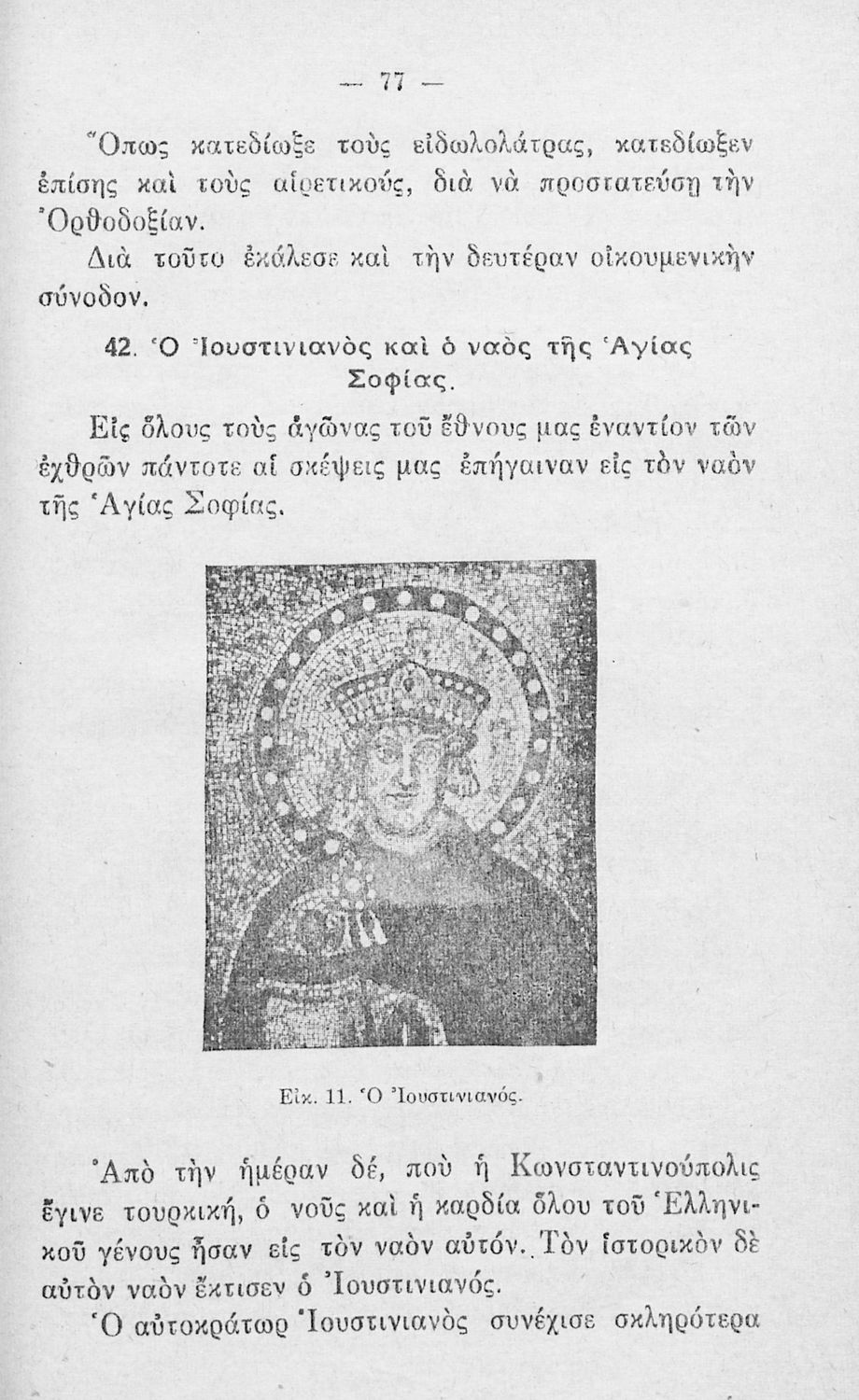 Σχολικό εγχειρίδιο Θρησκευτικών Ε΄ Δημοτικού που αποτελεί μια ιστορική επισκόπηση της Ορθόδοξης Εκκλησίας από την ίδρυσή της μέχρι την ίδρυση της Εκκλησίας της Ελλάδας. Φέρει το σύμβολο της δικτατορίας.