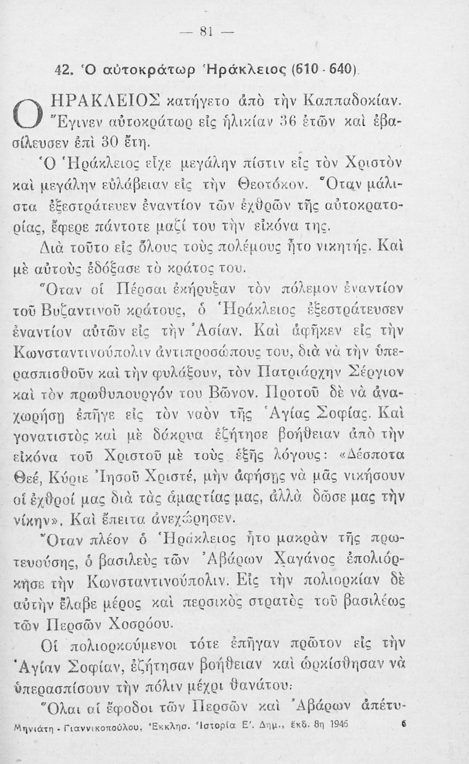 Μαθητικό βοήθημα Ιστορίας Δ΄ Δημοτικού που καλύπτει την περίοδο της Ρωμαϊκής και Βυζαντινής Αυτοκρατορίας μέχρι και την άλωση της Κωνσταντινούπολης. Ο συγγραφέας ήταν επιθεωρητής Δημοτικών Σχολείων.