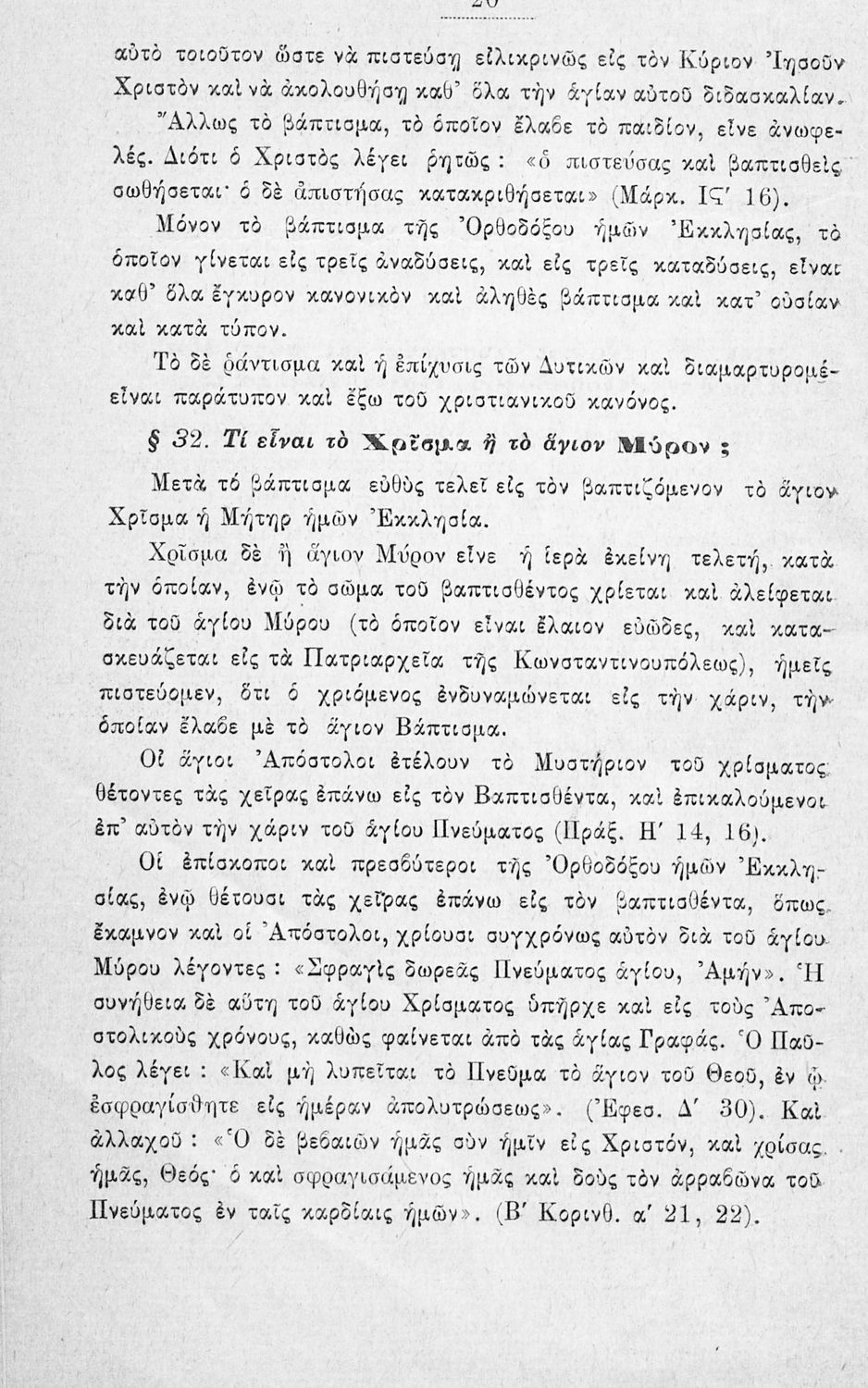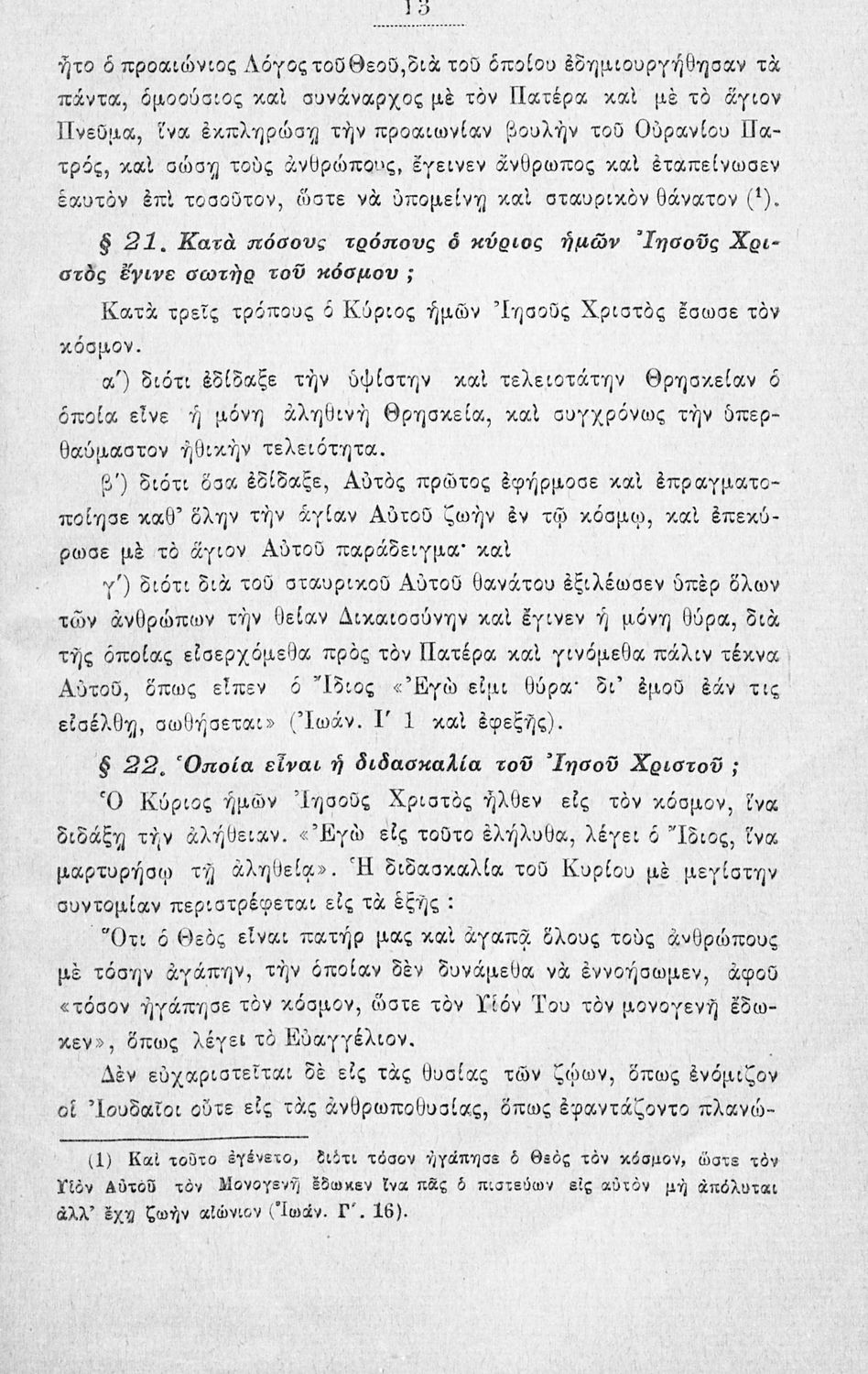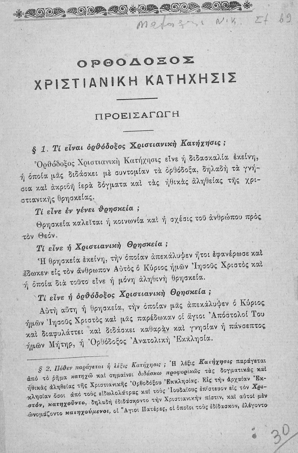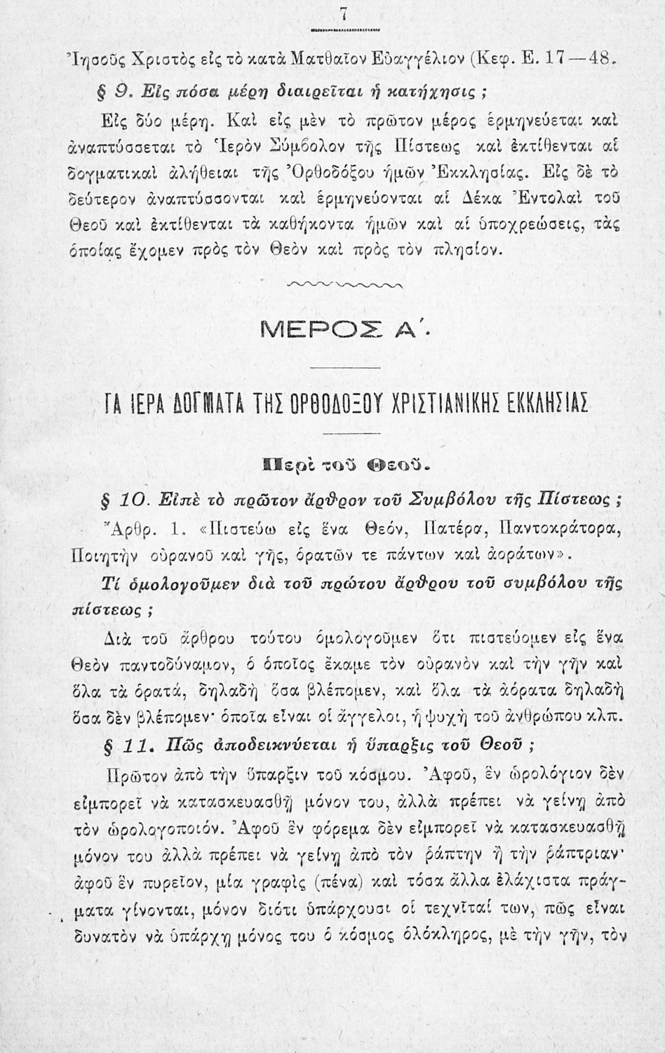 Βαθμίδα εκπαίδευσης: Πρωτοβάθμια Τάξη: Δημοτικό / Αστικό Σχολείο Μάθημα: Θρησκευτικά Γλώσσα: Καθαρεύουσα Παρουσίαση περιεχομένου: Σχολικό εγχειρίδιο Θρησκευτικών για τους μαθητές των Δημοτικών και των Αστικών σχολείων. Το βιβλίο αναφέρεται στη χριστιανική κατήχηση και τη χριστιανική ηθική. Παρουσιάζει τα μυστήρια του χριστιανισμού μέσω των οποίων μυούνται οι πιστοί, όπως η βάπτιση, ο γάμος και η μετάνοια. Στη συνέχεια αναφέρεται στους κώδικες αξιών στους οποίους βασίζεται η χριστιανική ηθική. |