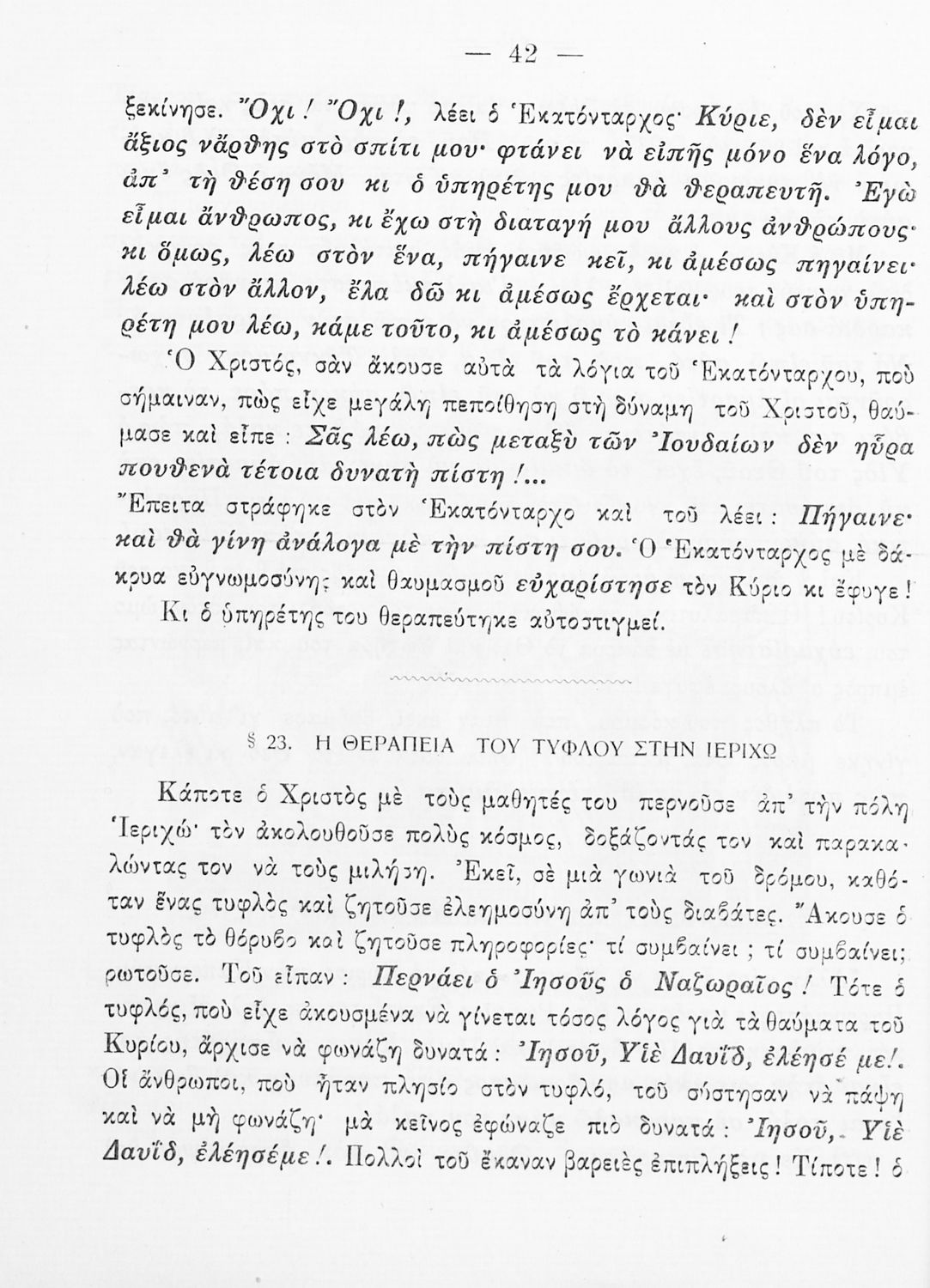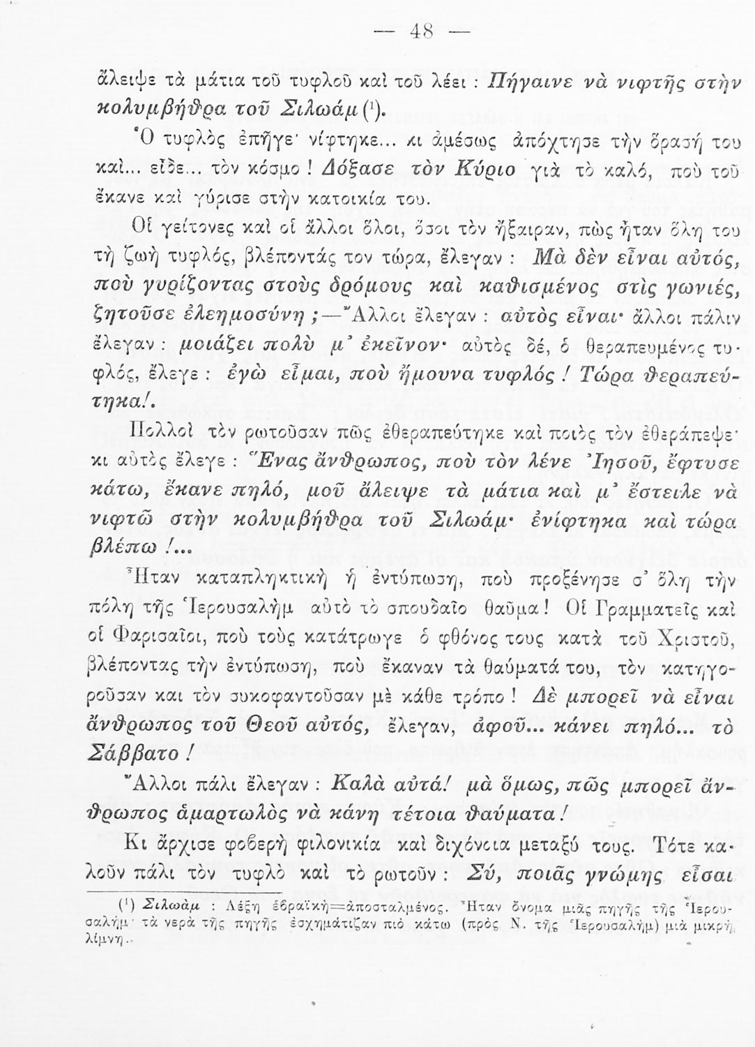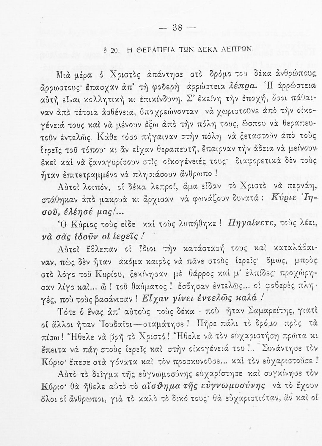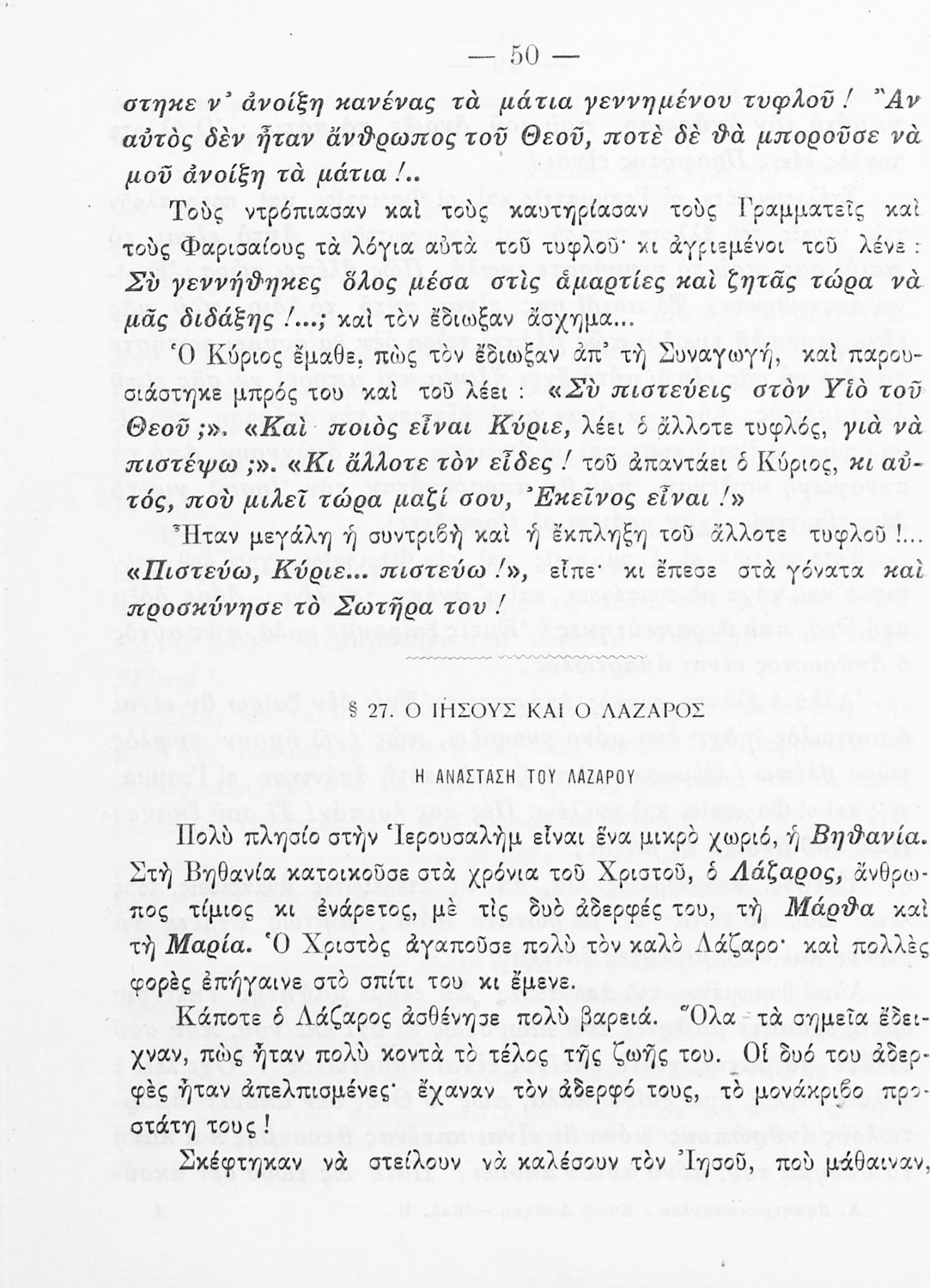 Το σύγγραμμα ήταν σχολικό εγχειρίδιο για το μαθήματα των Θρησκευτικών στο Δημοτικό. Περιγράφει σημαντικά γεγονότα της θρησκευτικής ζωής ξεκινώντας με την Καινή Διαθήκη. Το βιβλίο καλύπτει τα χρόνια του Ιησού Χριστού, τον ηθικό βίο του, που αποτελεί υπόδειγμα για τους Χριστιανούς.