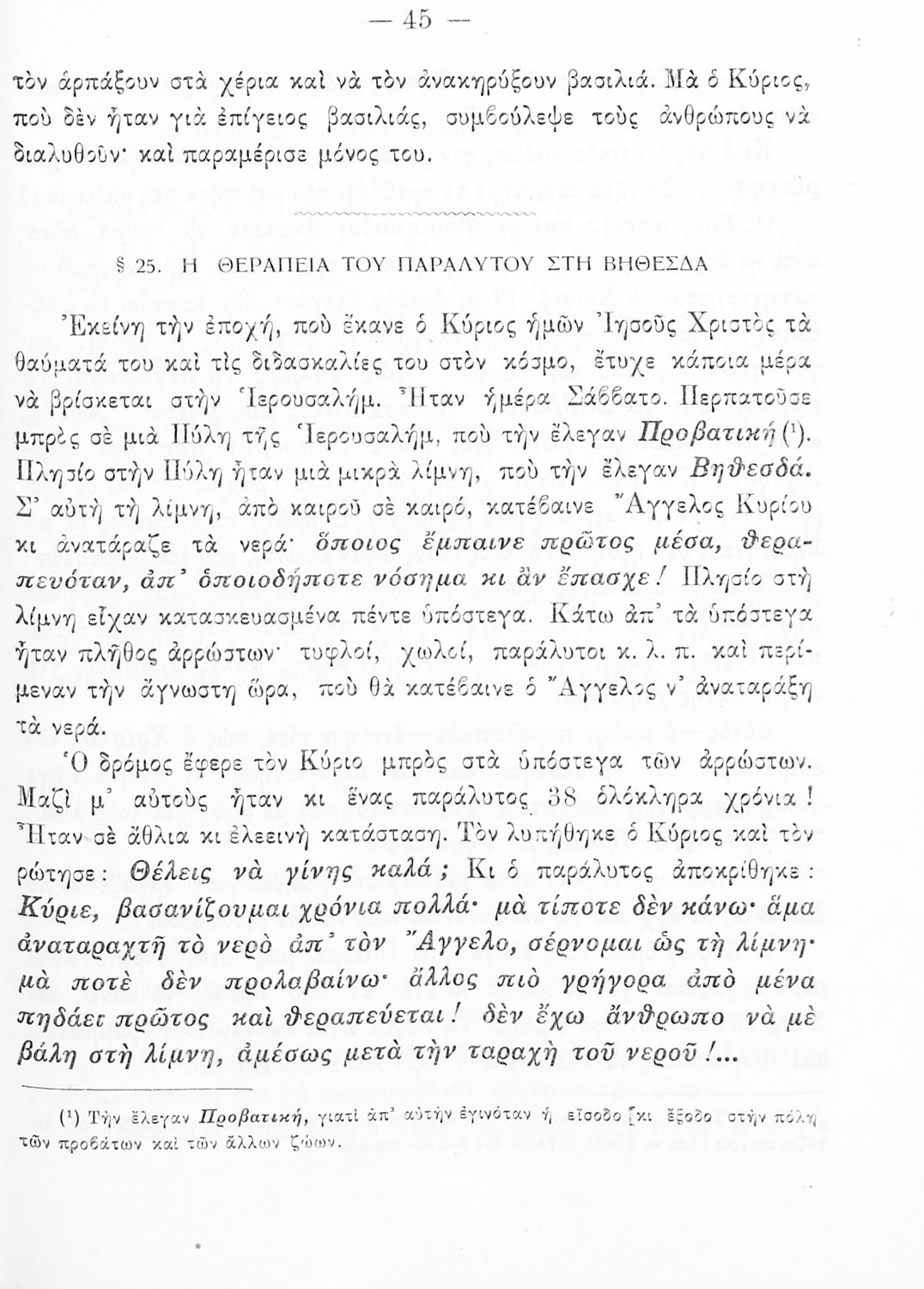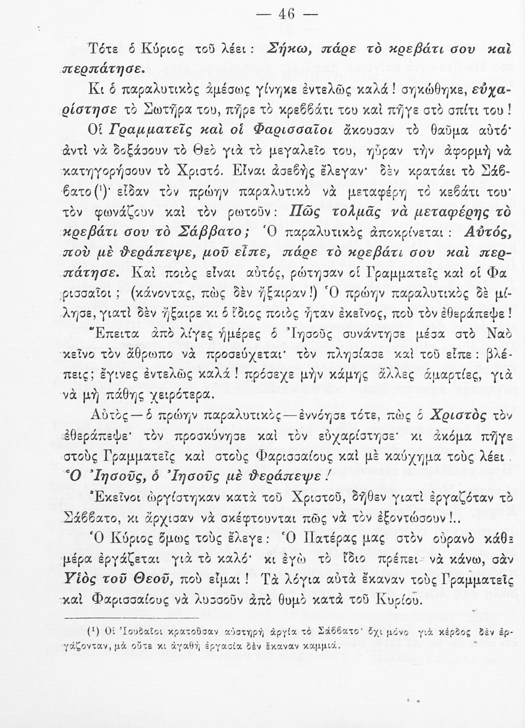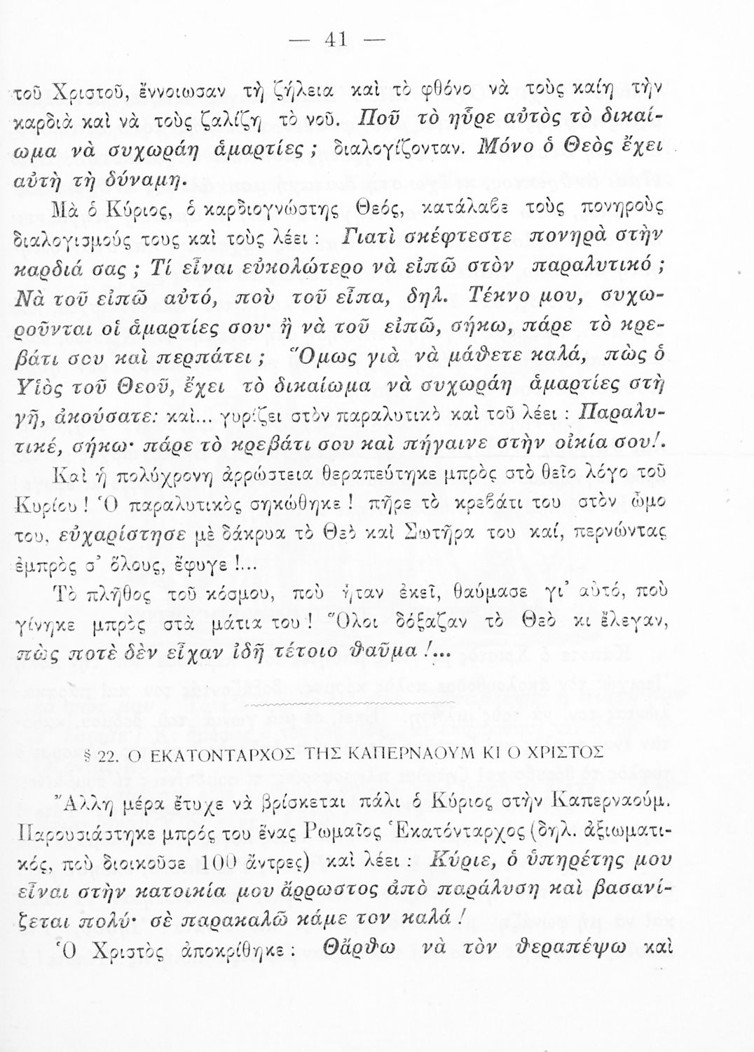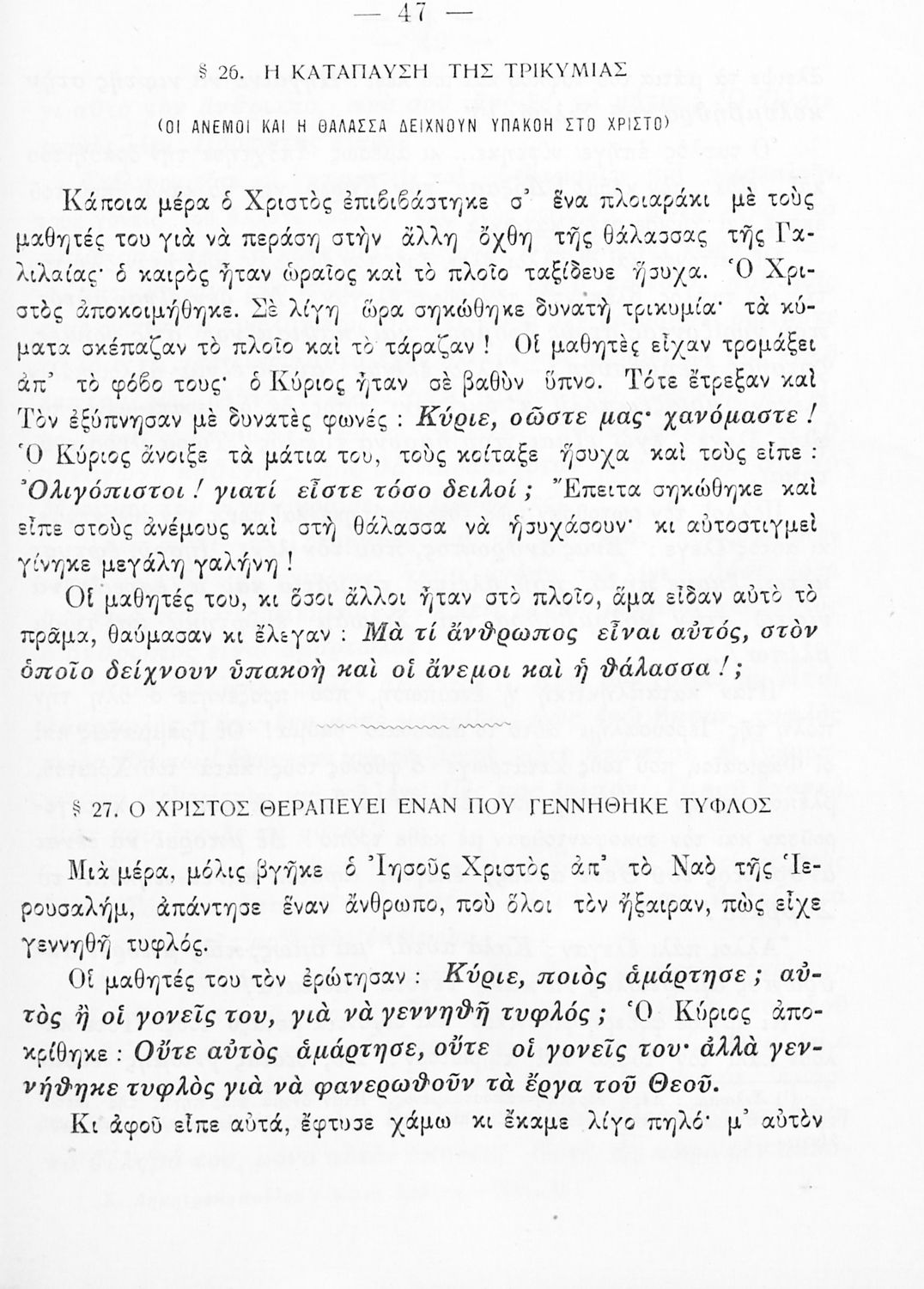 Παρουσίαση περιεχομένου: Το σύγγραμμα ήταν σχολικό εγχειρίδιο για το μαθήματα των Θρησκευτικών στο Δημοτικό. Περιγράφει σημαντικά γεγονότα της θρησκευτικής ζωής ξεκινώντας με την Καινή Διαθήκη. Το βιβλίο καλύπτει τα χρόνια του Ιησού Χριστού, τον ηθικό βίο του, που αποτελεί υπόδειγμα για τους Χριστιανούς.
