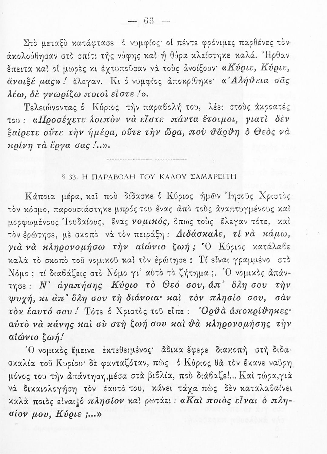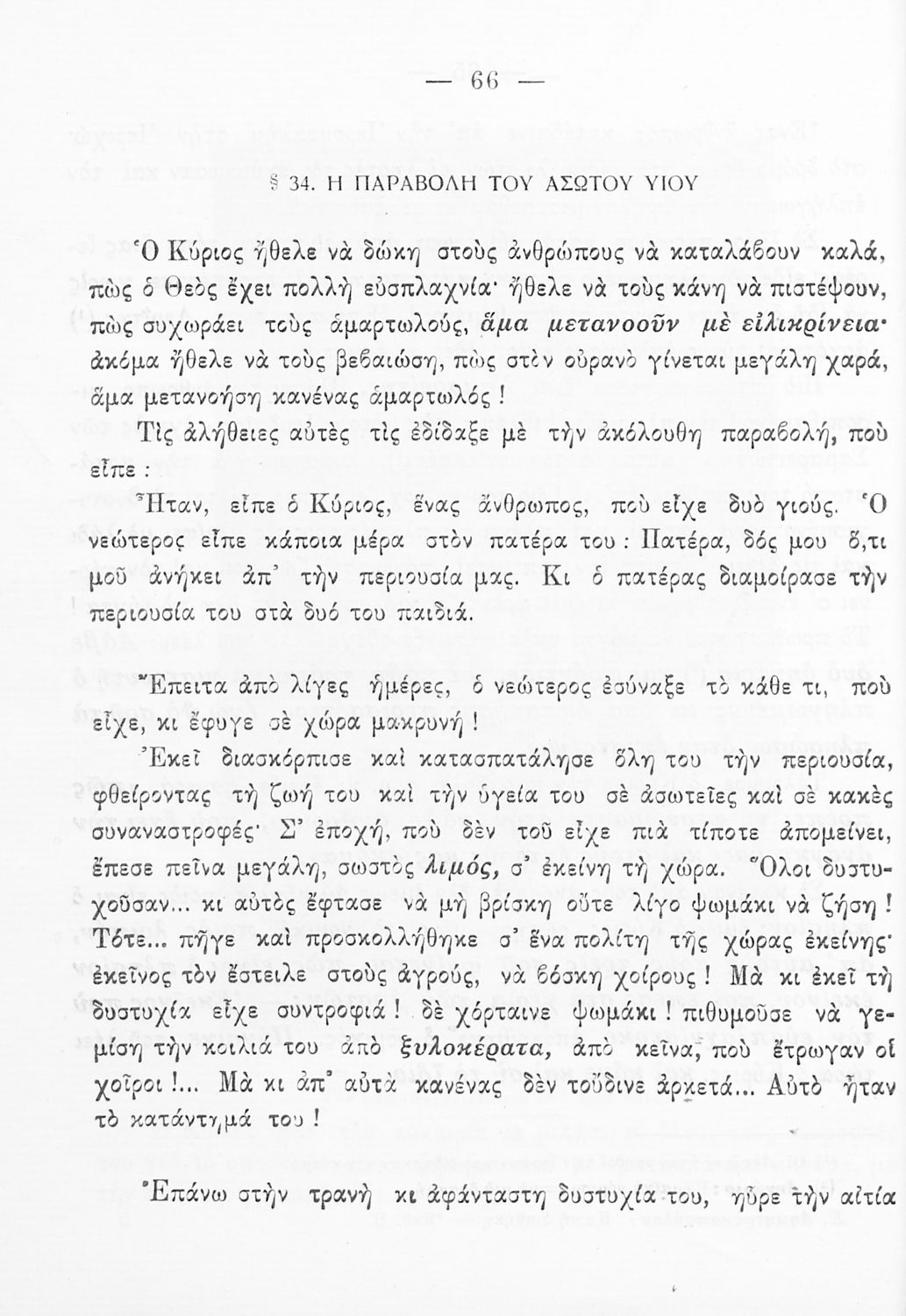 Παρουσίαση περιεχομένου: Το σύγγραμμα ήταν σχολικό εγχειρίδιο για το μαθήματα των Θρησκευτικών στο Δημοτικό. Περιγράφει σημαντικά γεγονότα της θρησκευτικής ζωής ξεκινώντας με την Καινή Διαθήκη. Το βιβλίο καλύπτει τα χρόνια του Ιησού Χριστού, τον ηθικό βίο του, που αποτελεί υπόδειγμα για τους Χριστιανούς.