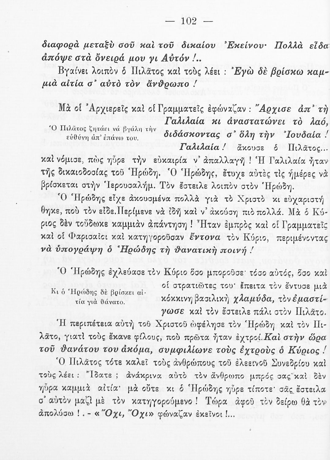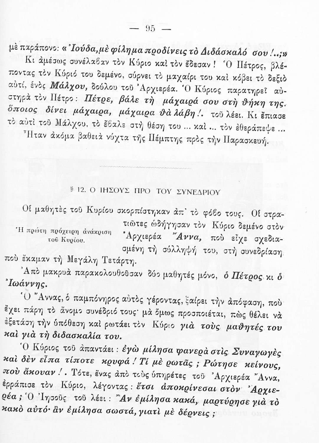 Παρουσίαση περιεχομένου: Το σύγγραμμα ήταν σχολικό εγχειρίδιο για το μαθήματα των Θρησκευτικών στο Δημοτικό. Περιγράφει σημαντικά γεγονότα της θρησκευτικής ζωής ξεκινώντας με την Καινή Διαθήκη. Το βιβλίο καλύπτει τα χρόνια του Ιησού Χριστού, τον ηθικό βίο του, που αποτελεί υπόδειγμα για τους Χριστιανούς.