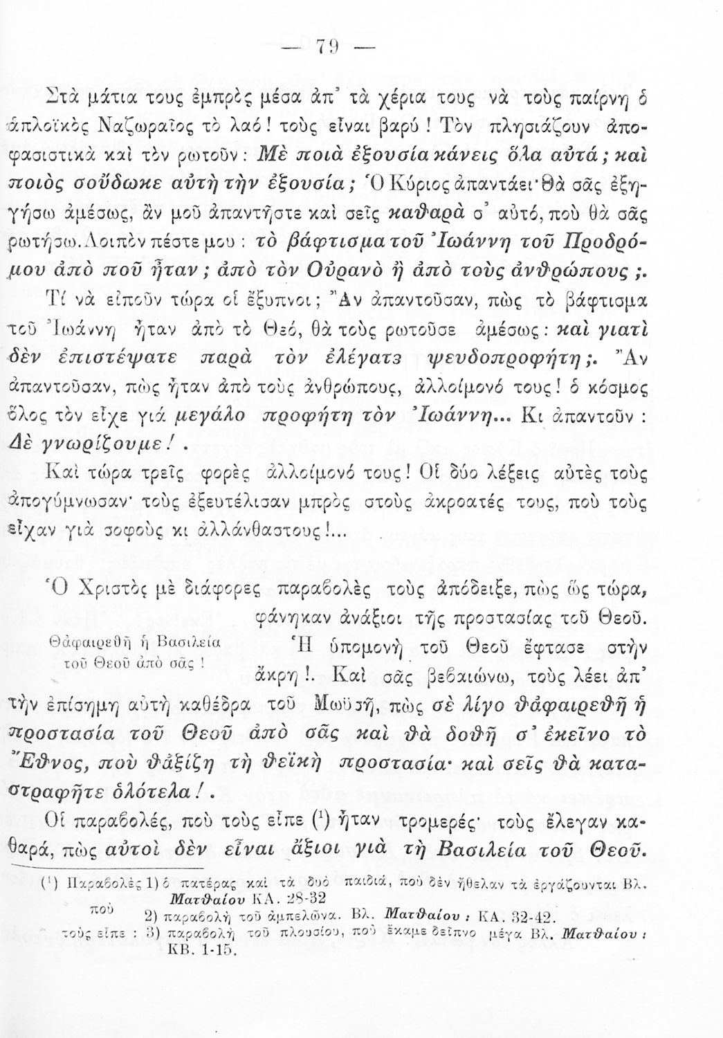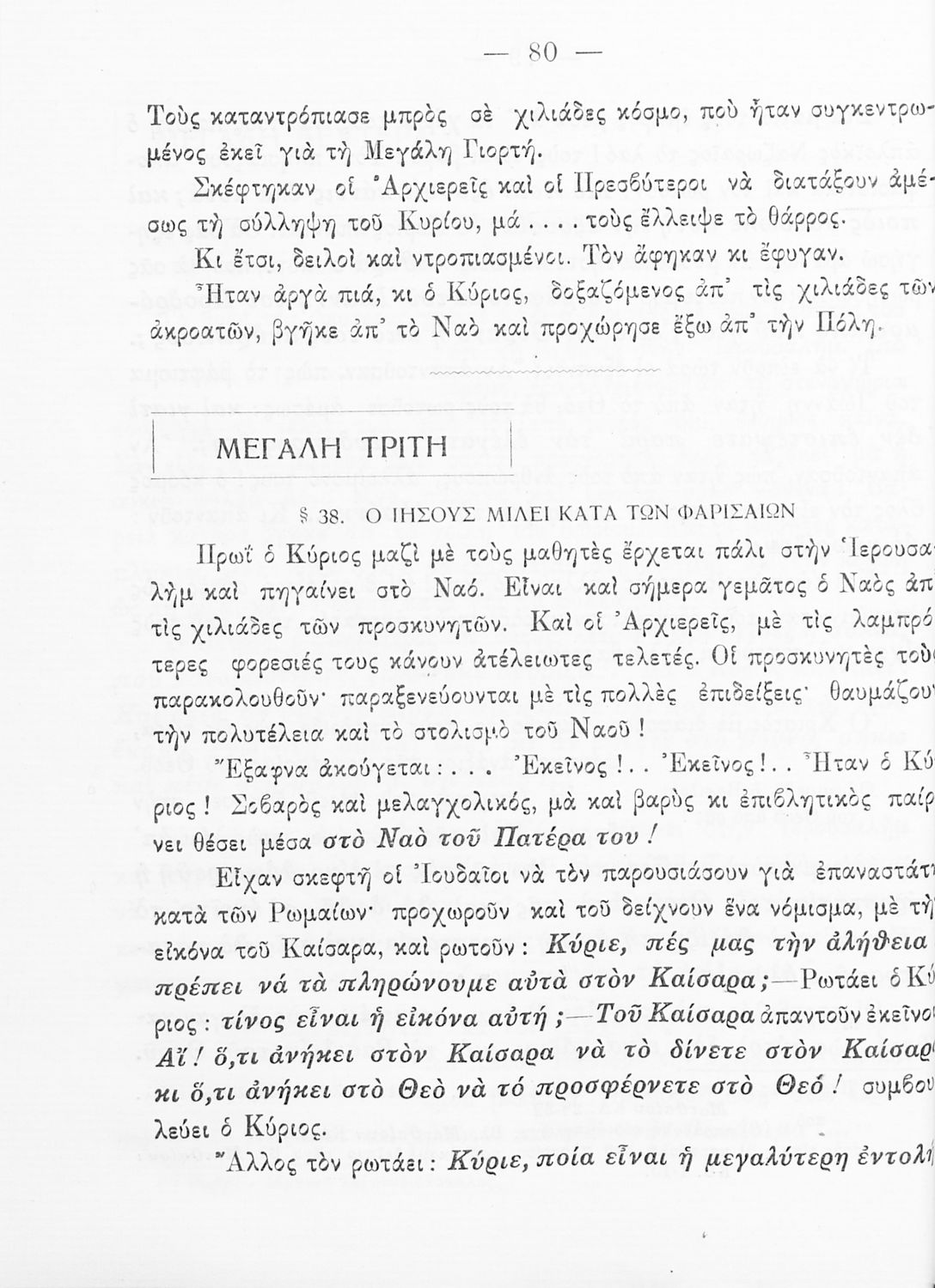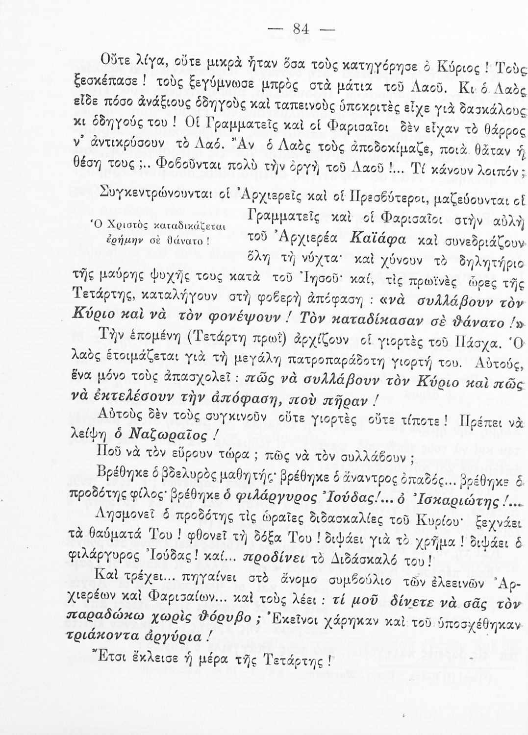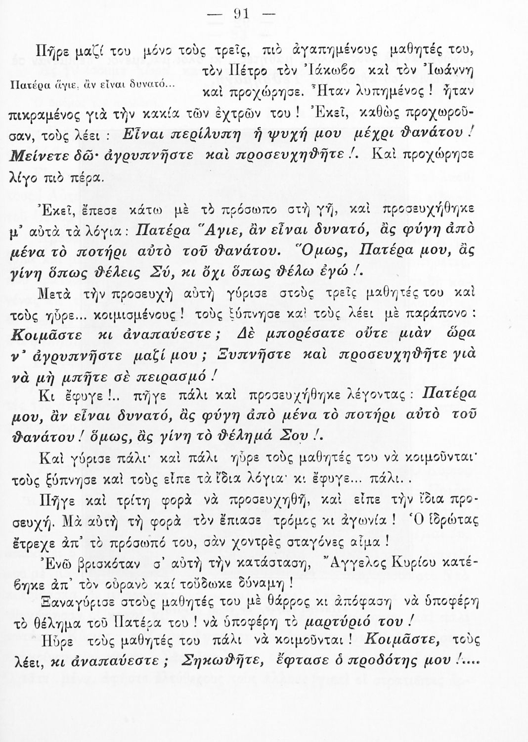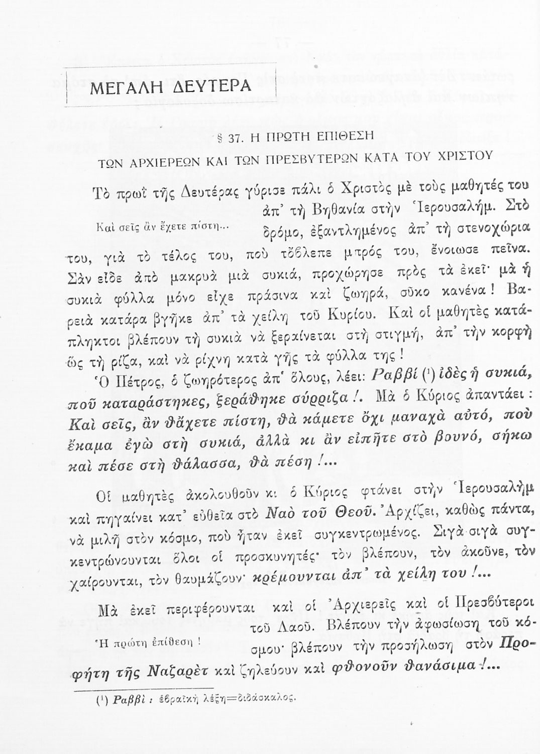Το σύγγραμμα ήταν σχολικό εγχειρίδιο για το μαθήματα των Θρησκευτικών στο Δημοτικό. Περιγράφει σημαντικά γεγονότα της θρησκευτικής ζωής ξεκινώντας με την Καινή Διαθήκη. Το βιβλίο καλύπτει τα χρόνια του Ιησού Χριστού, τον ηθικό βίο του, που αποτελεί υπόδειγμα για τους Χριστιανούς.