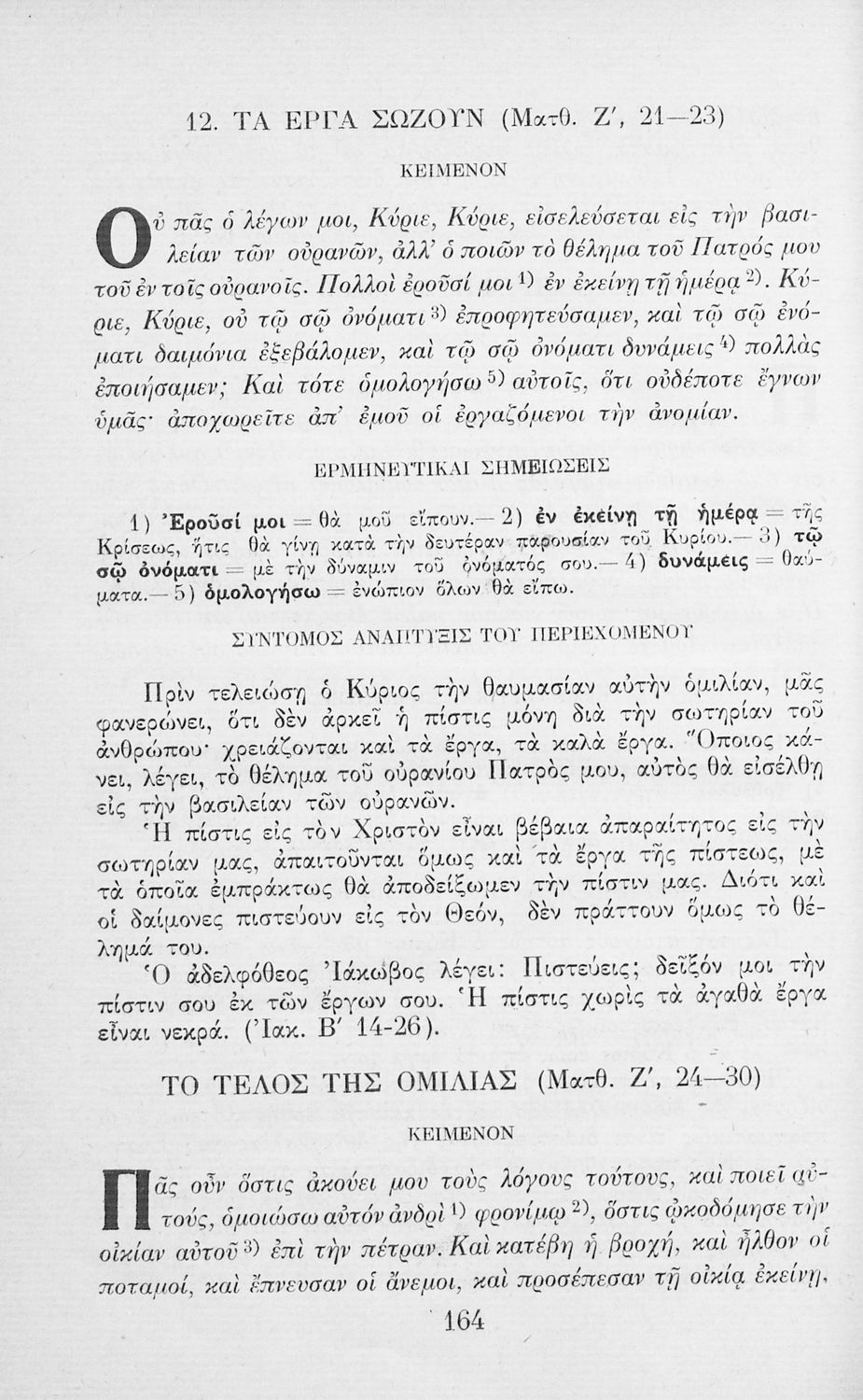 Το σύγγραμμα ήταν μαθητικό βοήθημα για το μάθημα των Θρησκευτικών. Περιέχει κείμενο, σχόλια των Ευαγγελίων