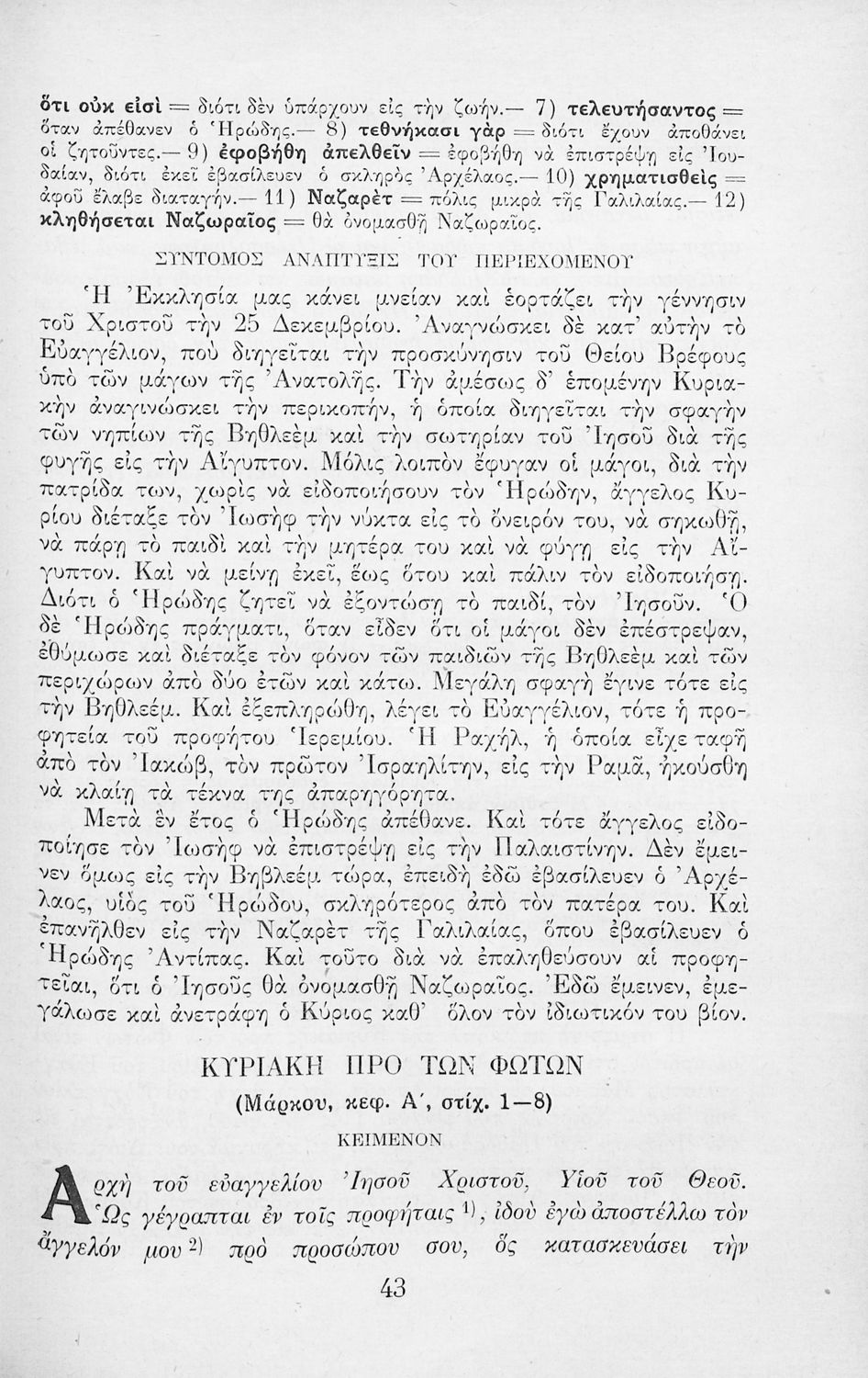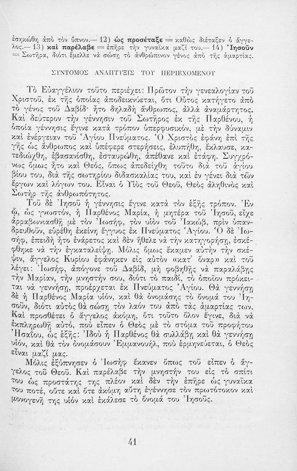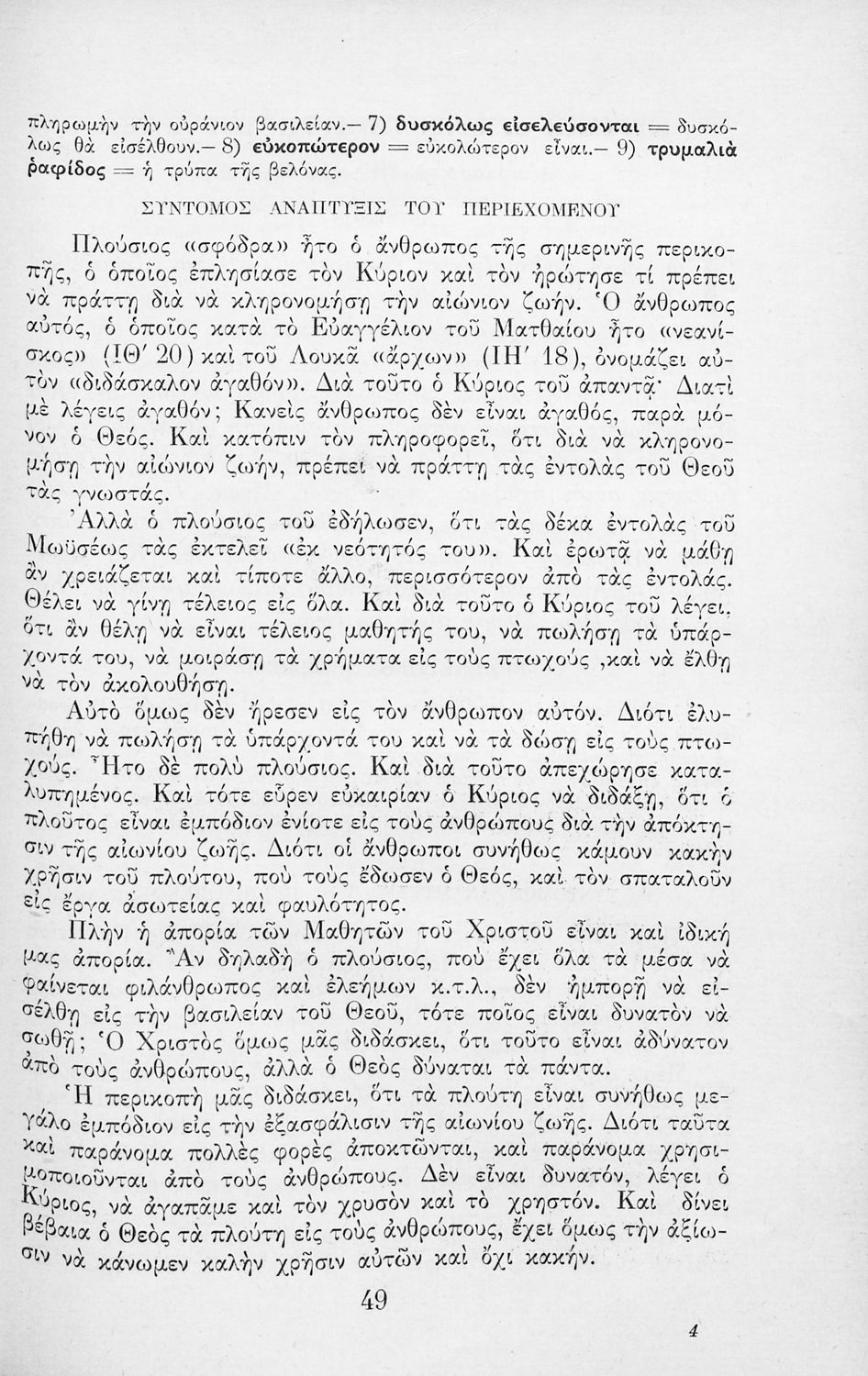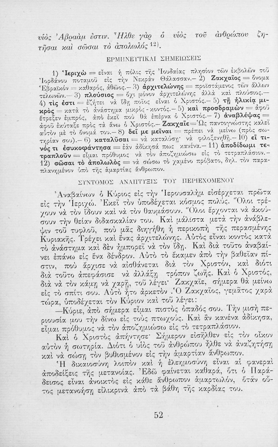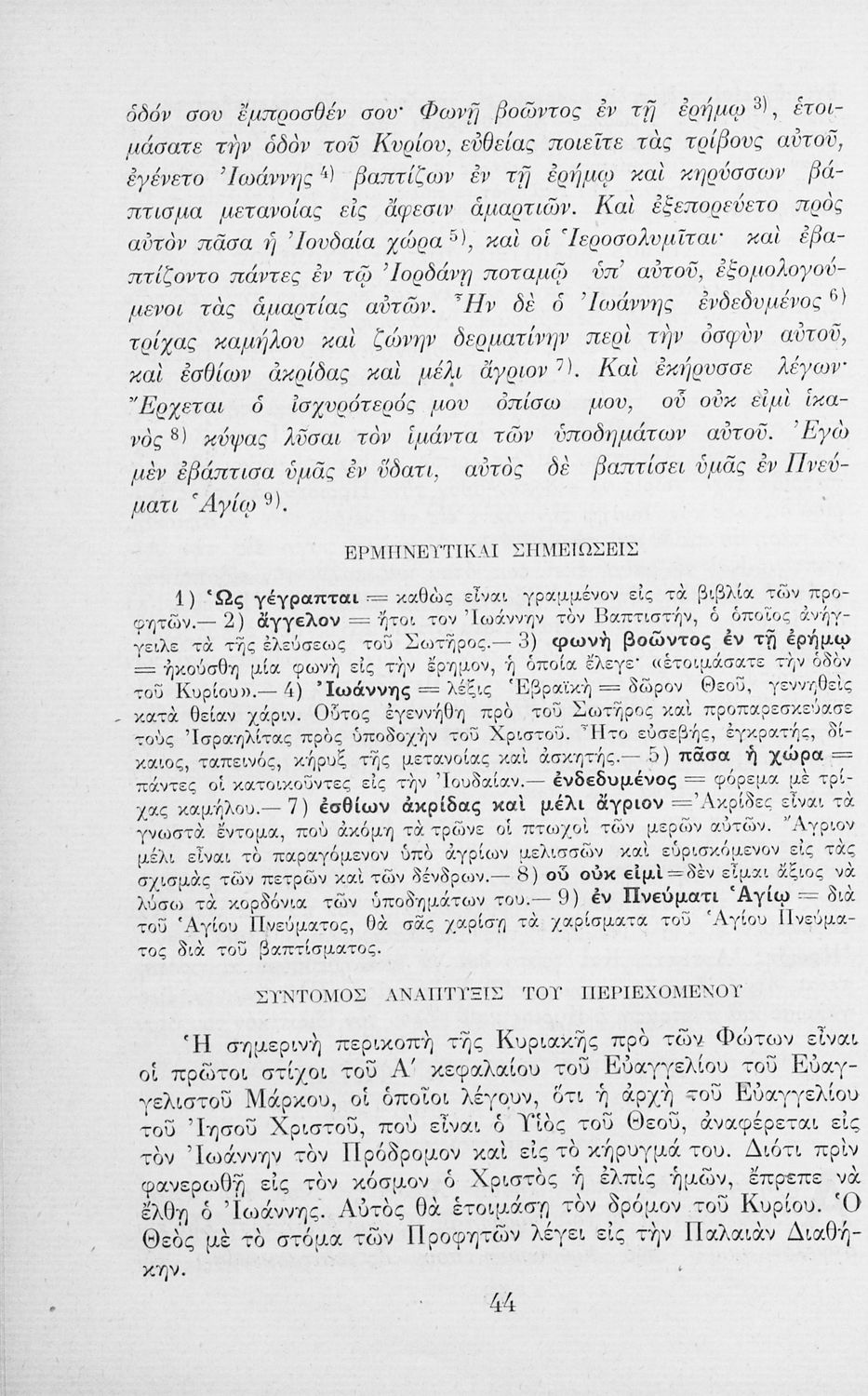 Παρουσίαση περιεχομένου: Το σύγγραμμα ήταν μαθητικό βοήθημα για το μάθημα των Θρησκευτικών. Περιέχει κείμενο, σχόλια των Ευαγγελίων