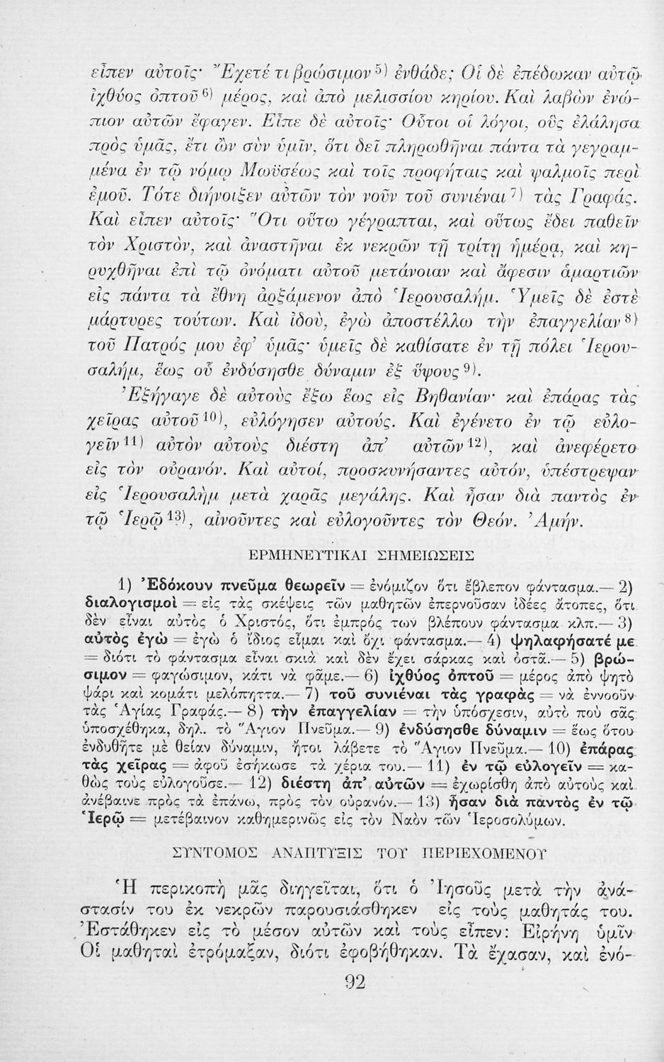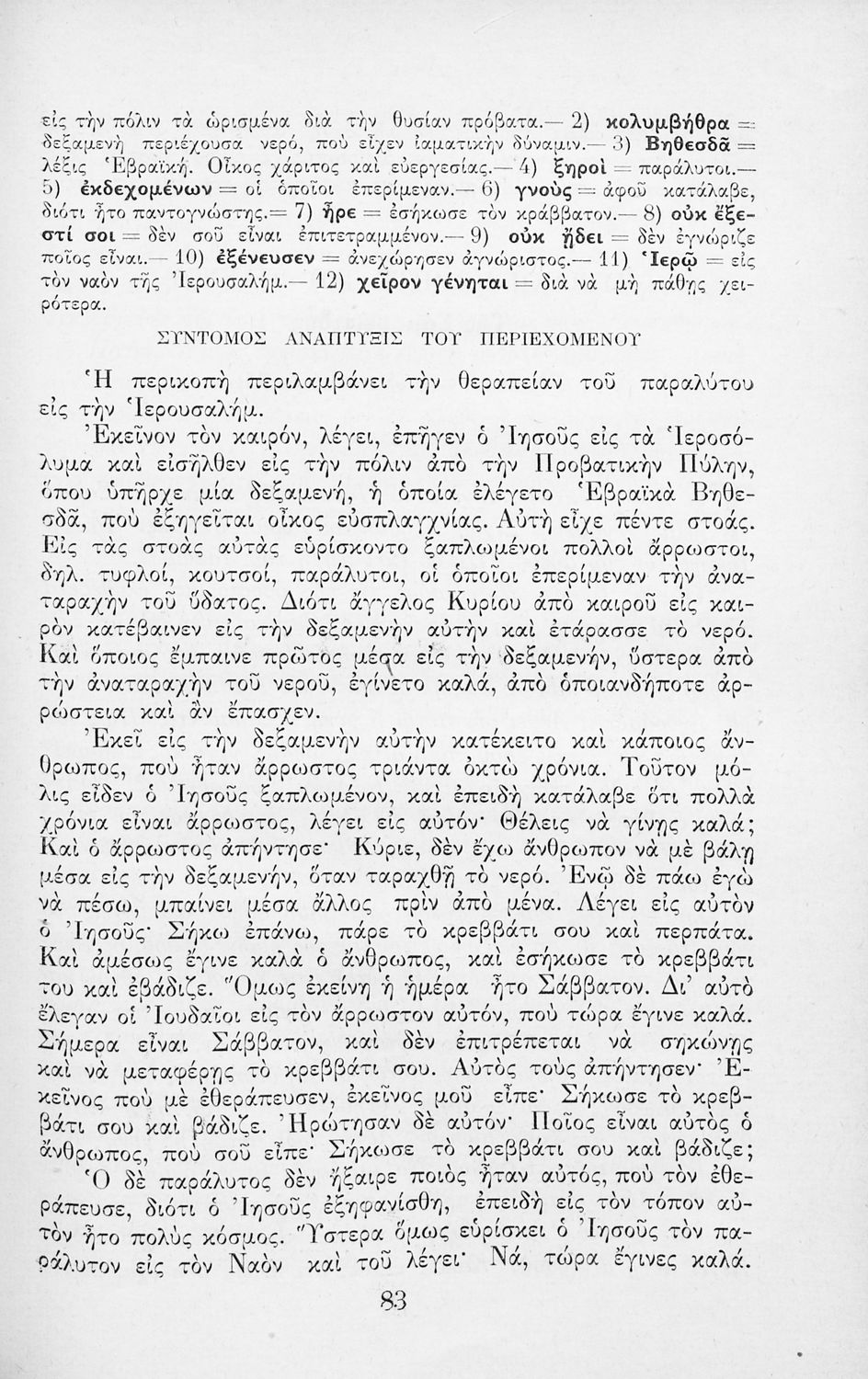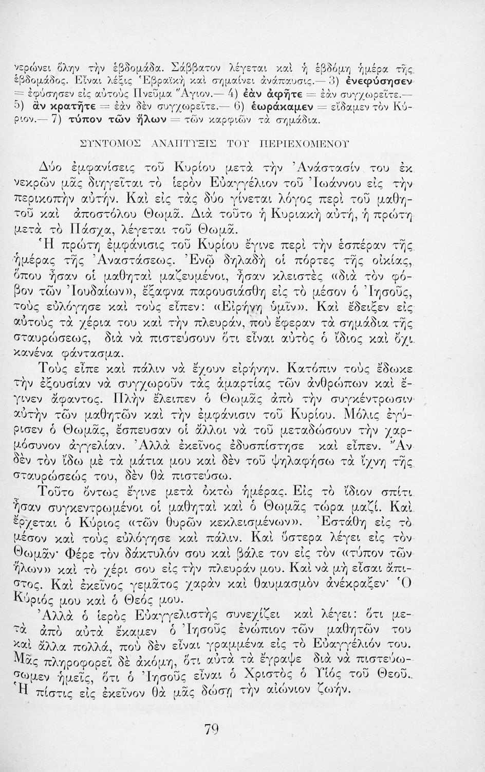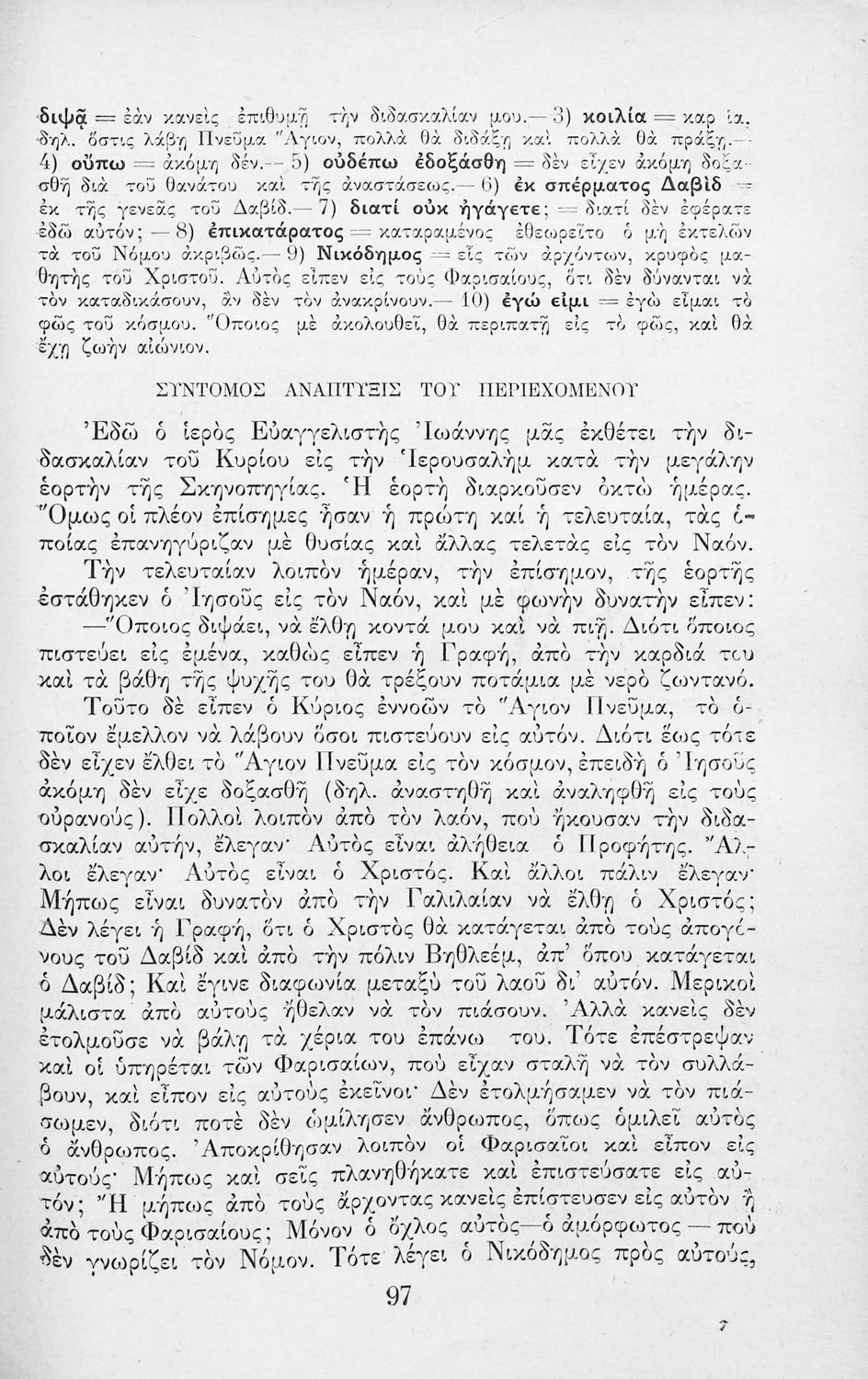 Παρουσίαση περιεχομένου: Το σύγγραμμα ήταν μαθητικό βοήθημα για το μάθημα των Θρησκευτικών. Περιέχει κείμενο, σχόλια των Ευαγγελίων