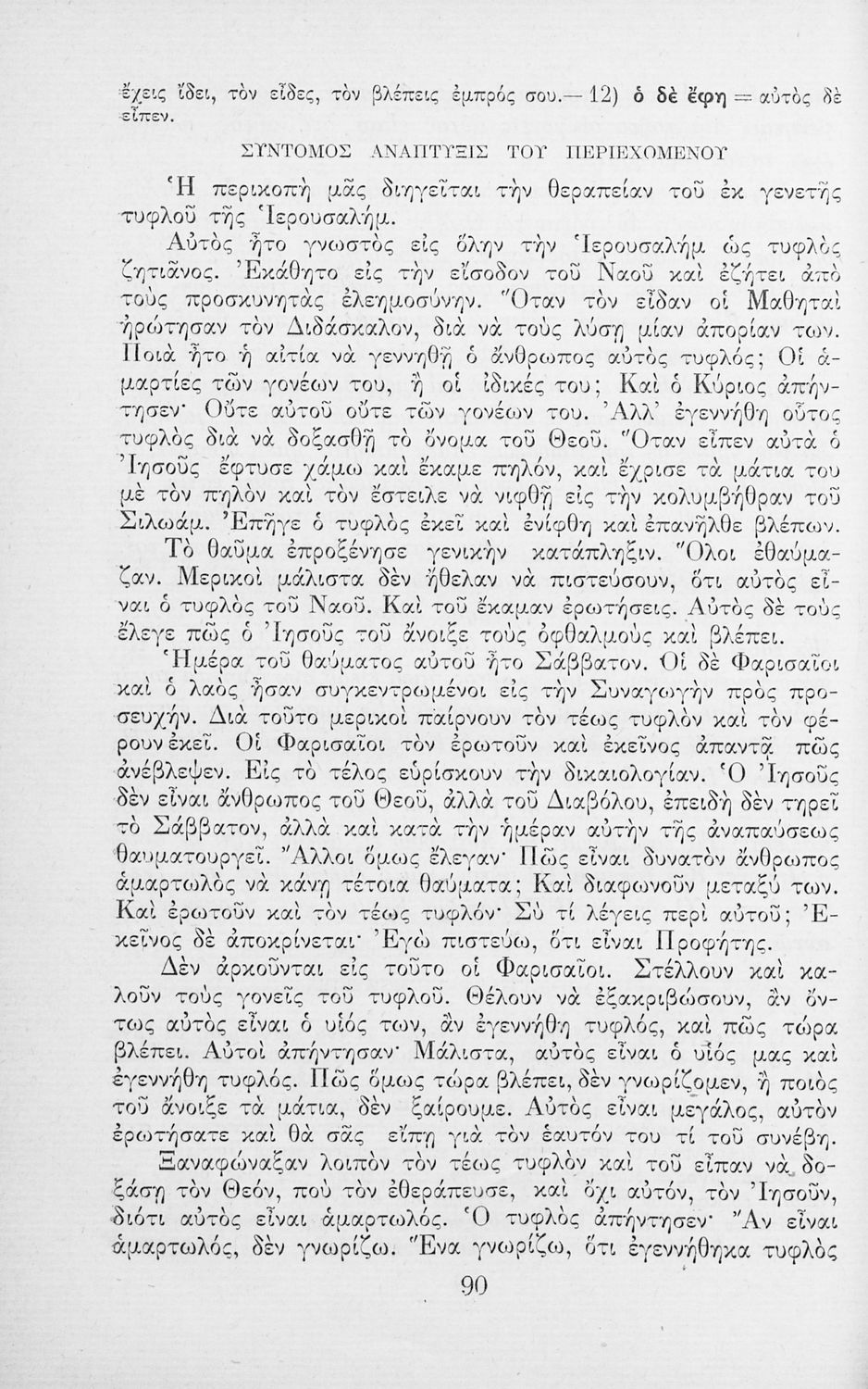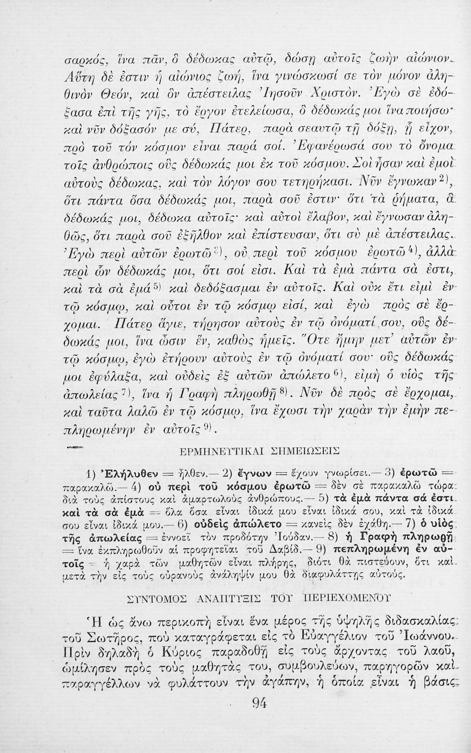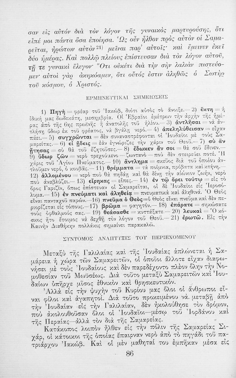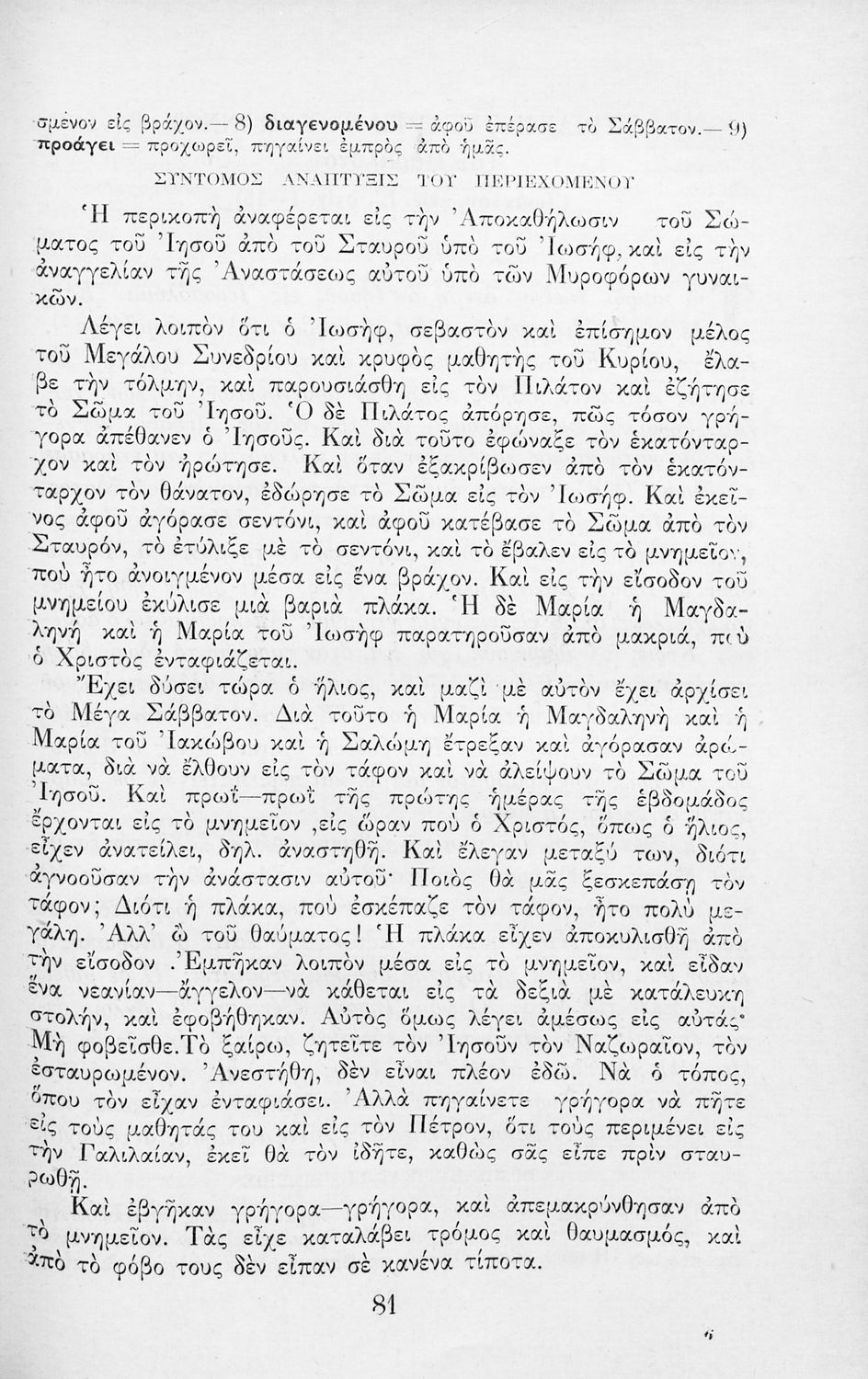 Παρουσίαση περιεχομένου: Το σύγγραμμα ήταν μαθητικό βοήθημα για το μάθημα των Θρησκευτικών. Περιέχει κείμενο, σχόλια των Ευαγγελίων
