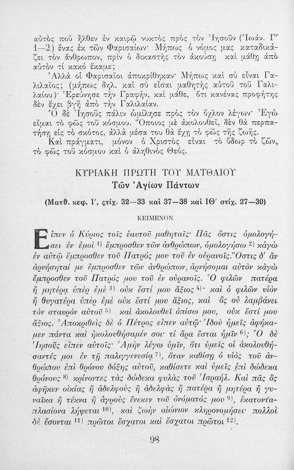 Περικοπαί από τα ιερά Ευαγγέλια. Προς χρήσιν των μαθητών Πέμπτης και Έκτης Τάξεως του Δημοτικού Σχολείου