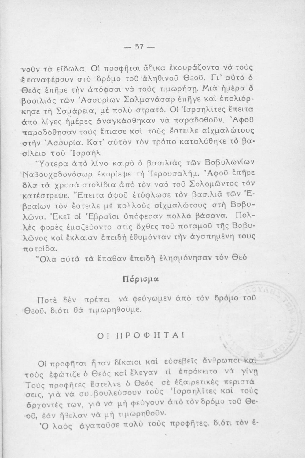 Μαθητικό βοήθημα Θρησκευτικών Γ΄ Δημοτικού που συνιστά μία εξιστόρηση της Παλαιάς Διαθήκης από τη δημιουργία του κόσμου ως τους Προφήτες.