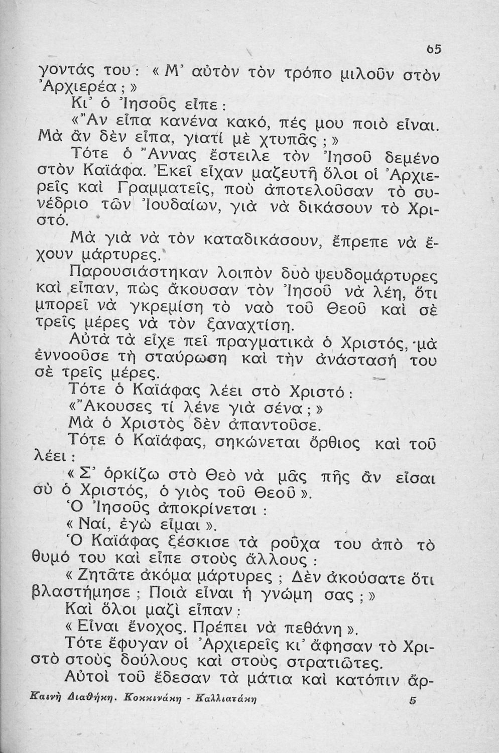 Κωδικός αναγνώρισης: 03-20561034 Τίτλος: Καινή διαθήκη Δ΄ τάξεως Δημοτικού Συγγραφέας: Ολγ. Κοκκινάκη, Ειρ. Καλλιατάκη Μέγεθος και υπόστρωμα: Μαθητικό βοήθημα, 22εκ., μαλακό εξώφυλλο, 86 σελίδες. Εξώφυλλο (έγχρωμο), σκίτσα (ασπρόμαυρα). |
