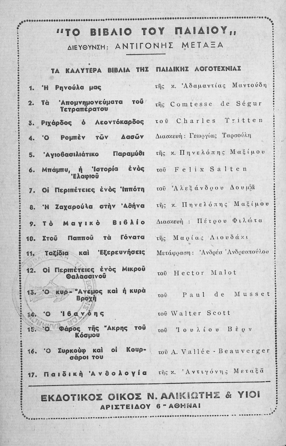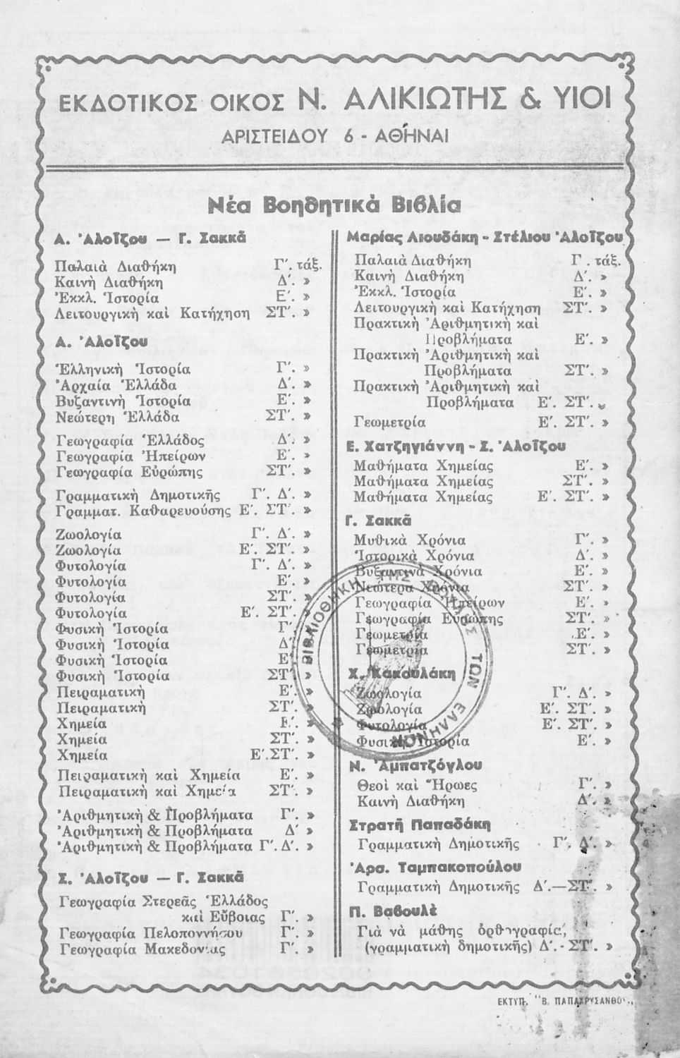 Εκδότης: Ν. Αλικιώτης Τόπος έκδοσης: Αθήνα Έκδοση: 1η |