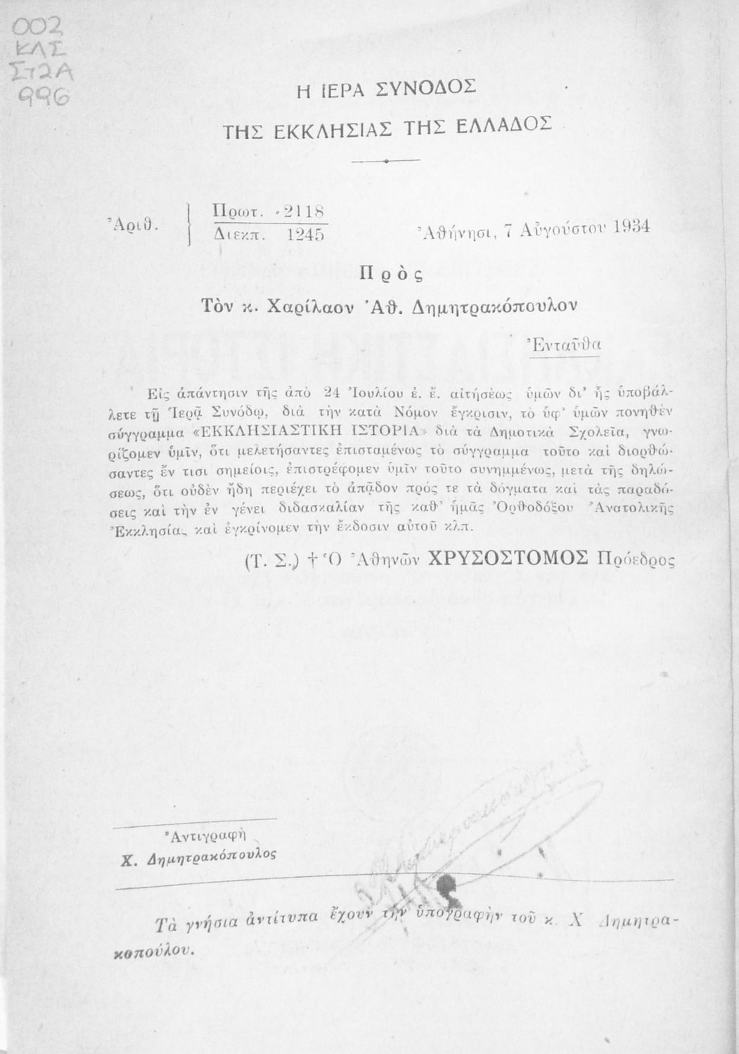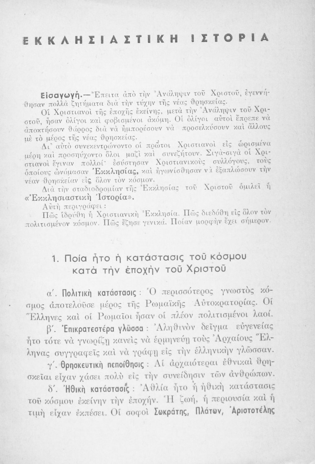Βαθμίδα εκπαίδευσης: Πρωτοβάθμια Τάξη: Ε' Δημοτικού Μάθημα: Θρησκευτικά Γλώσσα: Καθαρεύουσα Παρουσίαση περιεχομένου: Μαθητικό βοήθημα Θρησκευτικών Ε΄ Δημοτικού που αποτελεί μια ιστορική επισκόπηση της Ορθόδοξης Εκκλησίας από την ιδρυσή της μέχρι την ίδρυση της Εκκλησίας της Ελλάδας. |
