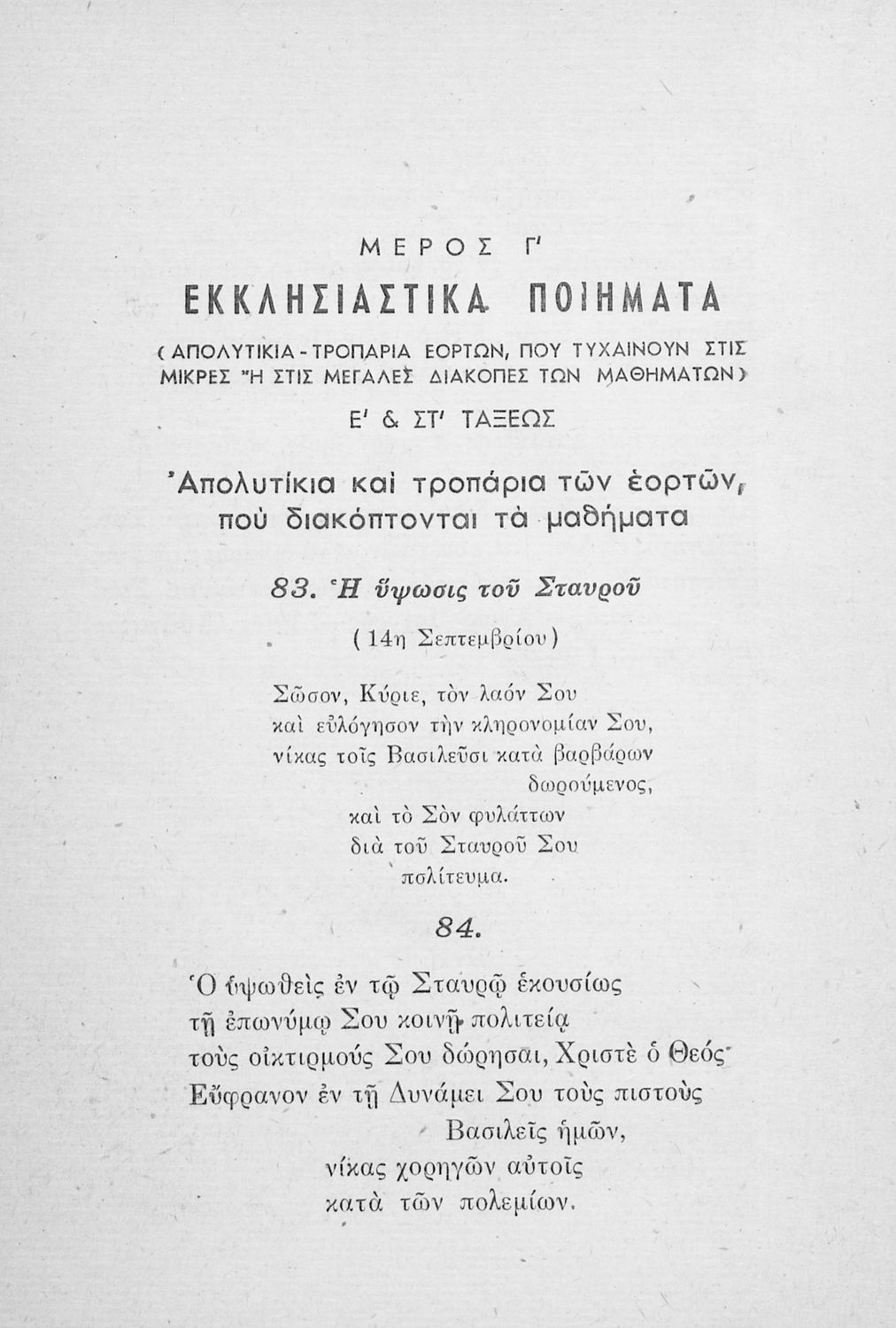 Σχολικό εγχειρίδιο για όλες τις τάξεις του Δημοτικού για το μάθημα των Θρησκευτικών. Το εγχειρίδιο περιλαμβάνει ποιήματα και προσευχές με θέμα τον Χριστό, την Παναγία, τις θρησκευτικές εορτές και στο τέλος του βιβλίου περιλαμβάνεται παράρτημα με "εξαποστειλάρια".