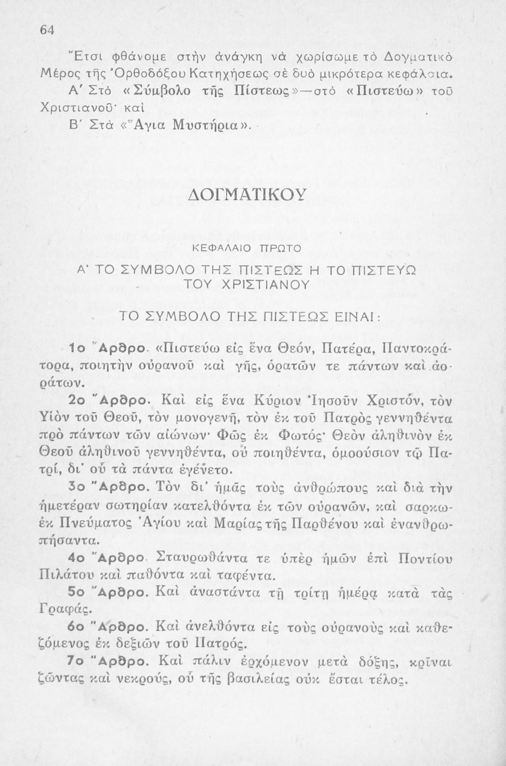 Μαθητικό βοήθημα Θρησκευτικών Ε΄ και ΣΤ΄ Δημοτικού που αναλύει την έννοια της κατήχησης με έμφαση στο ορθόδοξο χριστιανικό δόγμα, το οποίο εξετάζει από δογματική και ηθική σκοπιά. Περιλαμβάνει και στοιχεία ...