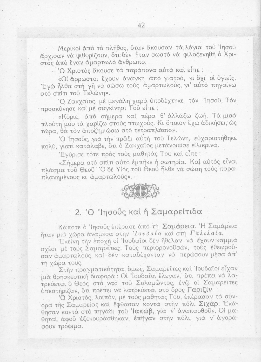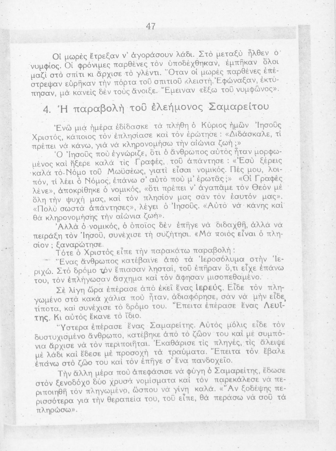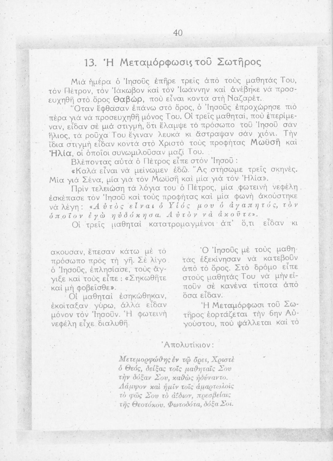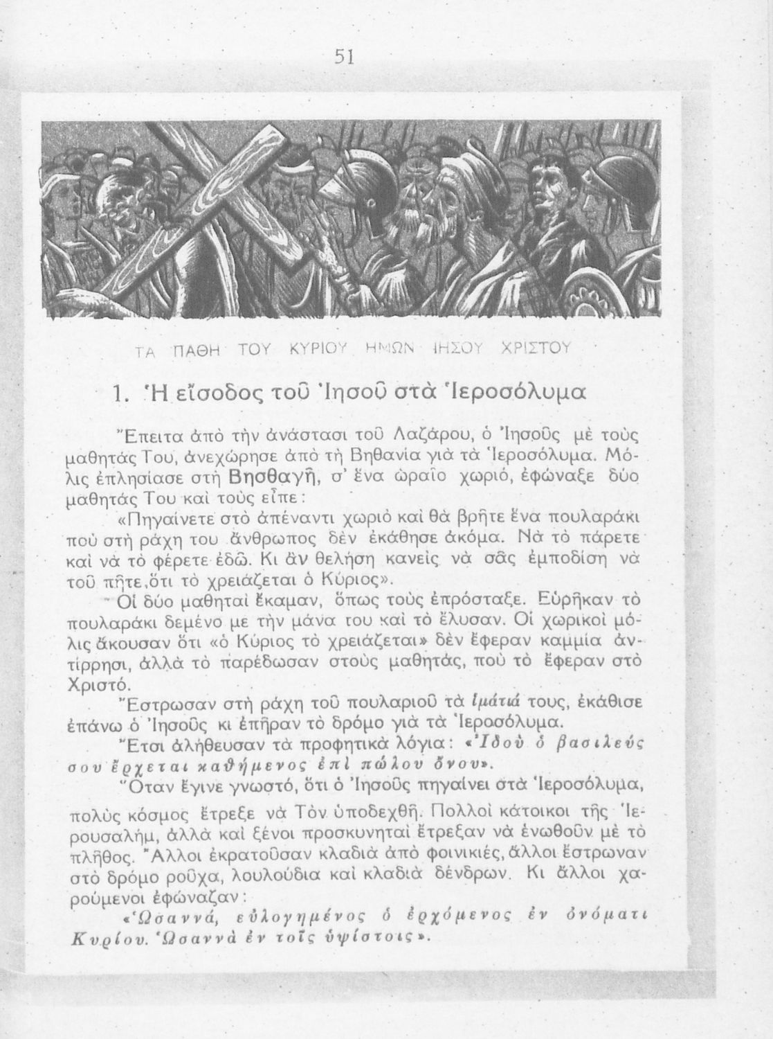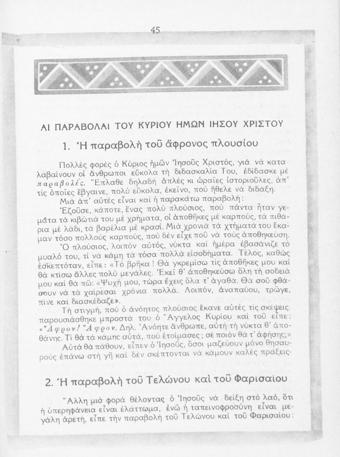 Σχολικό εγχειρίδιο Νέων Ελληνικών Δ΄ Γυμνασίου και Β΄ Αστικού Σχολείου που περιέχει πεζά και ποιήματα Ελλήνων συγγραφέων εμπνευσμένα από τη θρησκευτική και κοινωνική ζωή, την ελληνική μυθολογία, την αρχαία και