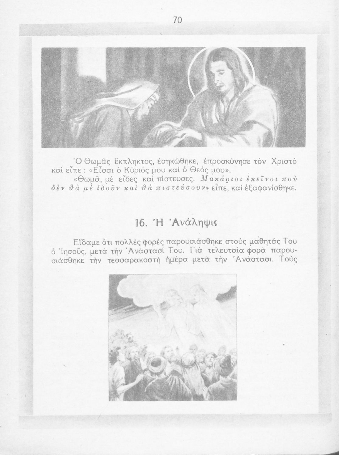Σχολικό εγχειρίδιο Νέων Ελληνικών Δ΄ Γυμνασίου και Β΄ Αστικού Σχολείου που περιέχει πεζά και ποιήματα Ελλήνων συγγραφέων εμπνευσμένα από τη θρησκευτική και κοινωνική ζωή, την ελληνική μυθολογία, την αρχαία και