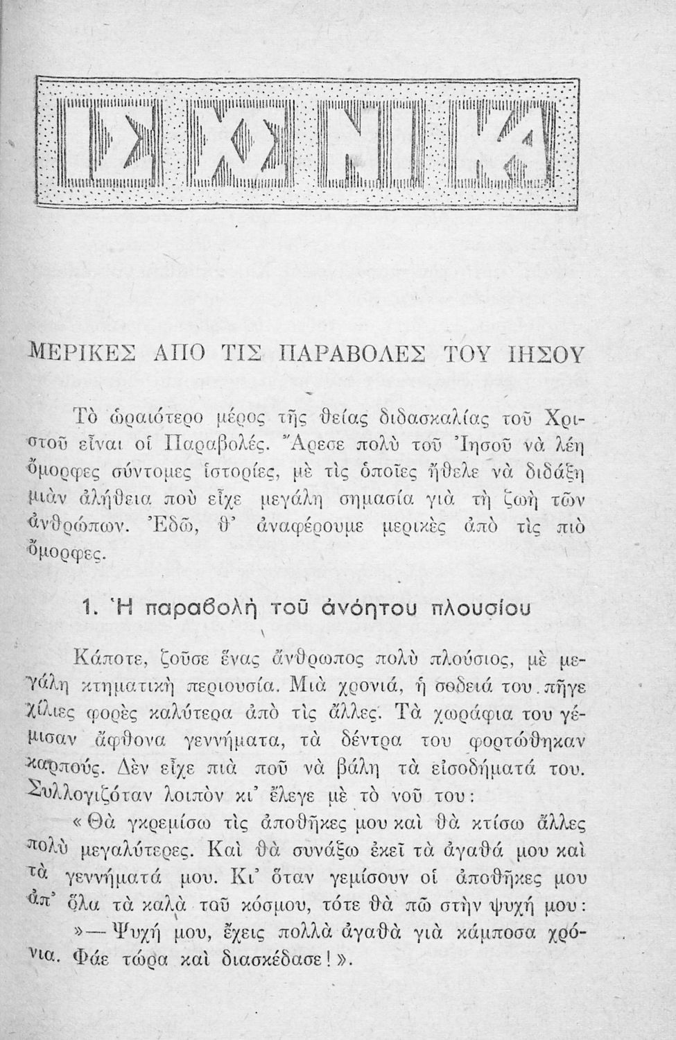 Σχολικό εγχειρίδιο Νέων Ελληνικών Δ΄ Γυμνασίου και Β΄ Αστικού Σχολείου που περιέχει πεζά και ποιήματα Ελλήνων συγγραφέων εμπνευσμένα από τη θρησκευτική και κοινωνική ζωή, την ελληνική μυθολογία, την αρχαία και