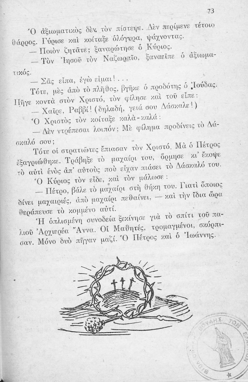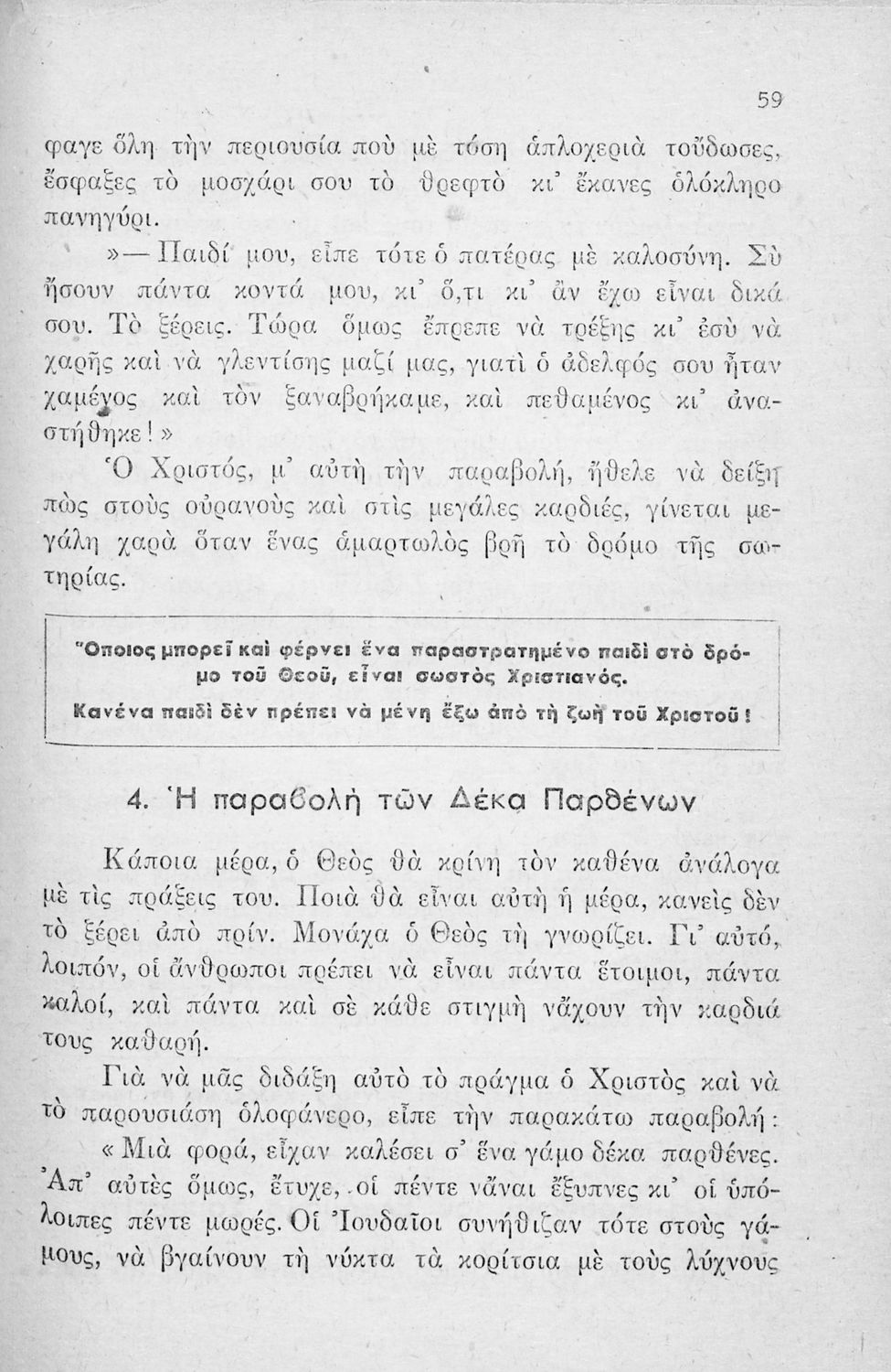 Βαθμίδα εκπαίδευσης: Πρωτοβάθμια Τάξη: Δ' Δημοτικού Μάθημα: Θρησκευτικά Γλώσσα: Απλή καθαρεύουσα Παρουσίαση περιεχομένου: Μαθητικό βοήθημα Θρησκευτικών Δ΄ Δημοτικού που αποτελεί μια εξιστόρηση της Καινής Διαθήκης από τη γέννηση της Θεοτόκου μέχρι την ανάληψη του Χριστού. |
