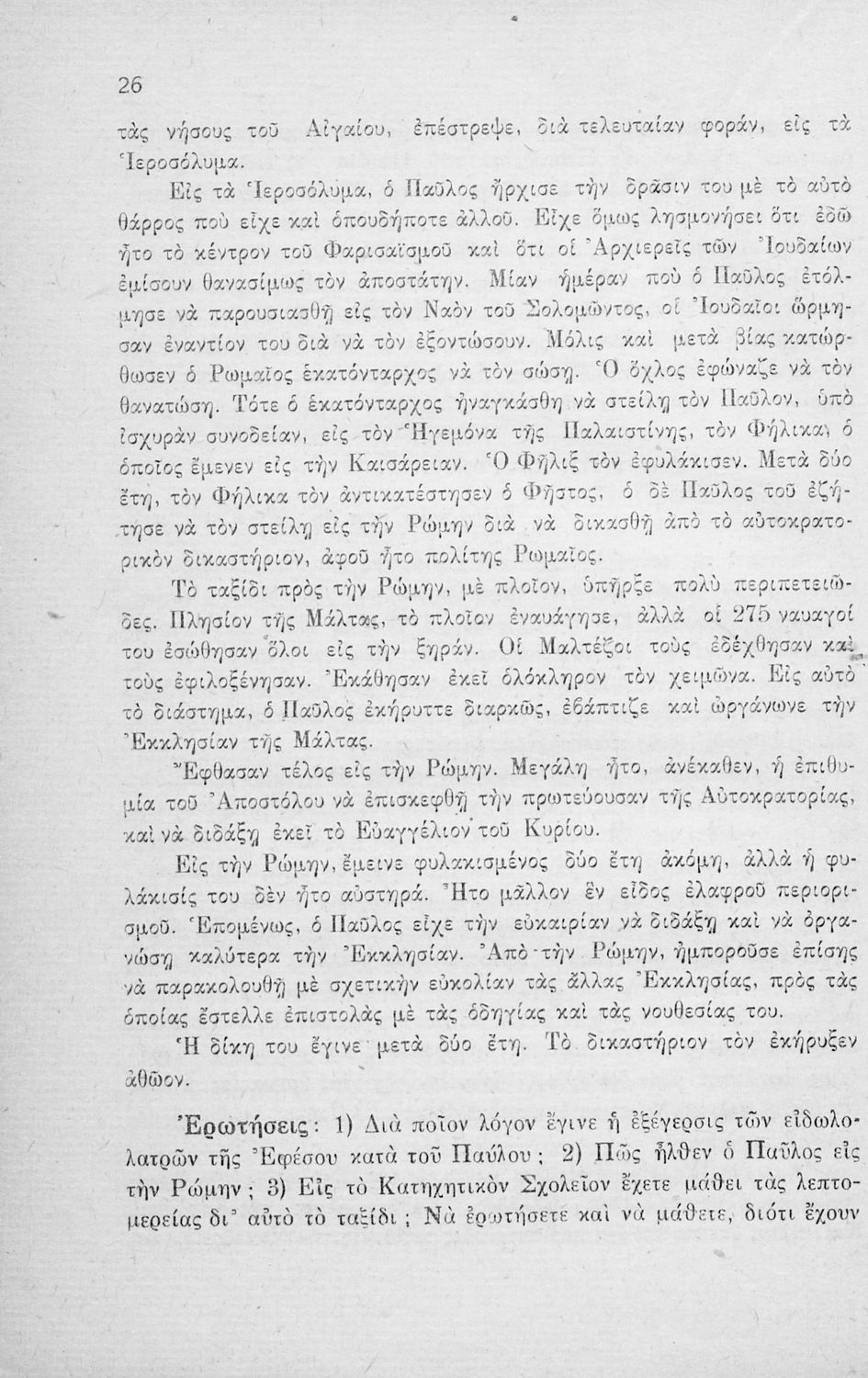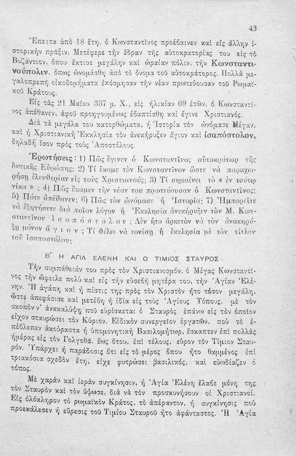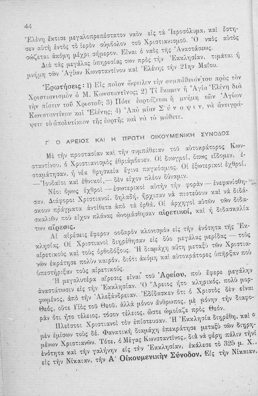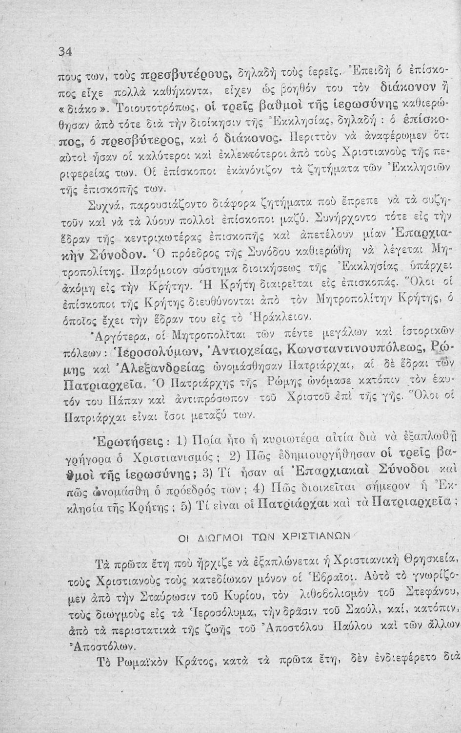Βαθμίδα εκπαίδευσης: Πρωτοβάθμια Τάξη: Ε' Δημοτικού Μάθημα: Θρησκευτικά Γλώσσα: Απλή καθαρεύουσα Παρουσίαση περιεχομένου: Μαθητικό βοήθημα Θρησκευτικών Ε΄ Δημοτικού που αποτελεί μια ιστορική επισκόπηση της Ορθόδοξης Εκκλησίας από την ίδρυσή της μέχρι την ίδρυση της Εκκλησίας της Ελλάδας. |