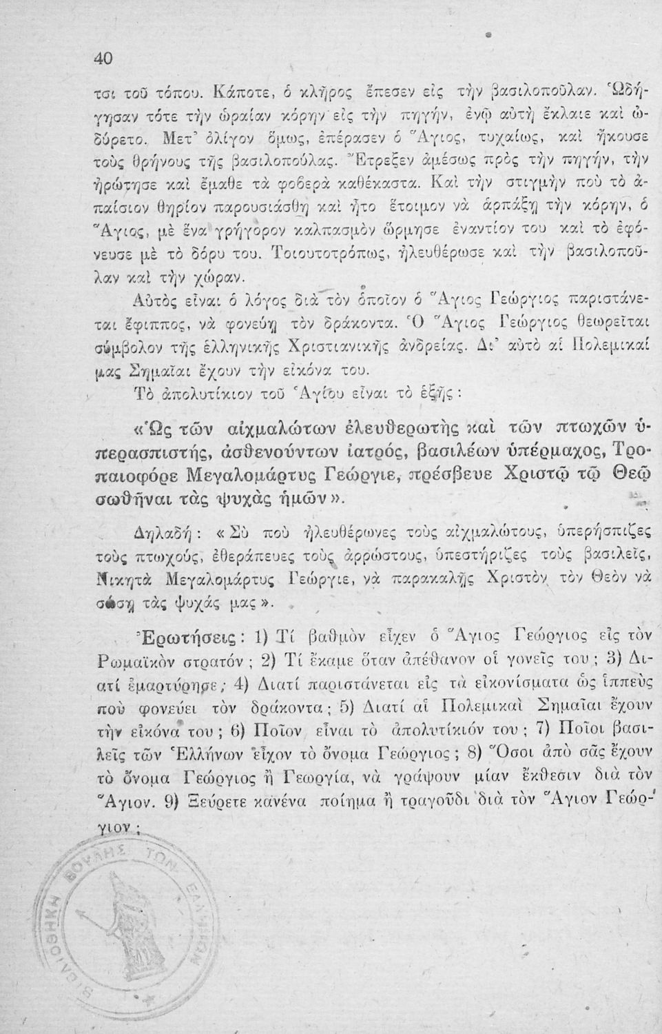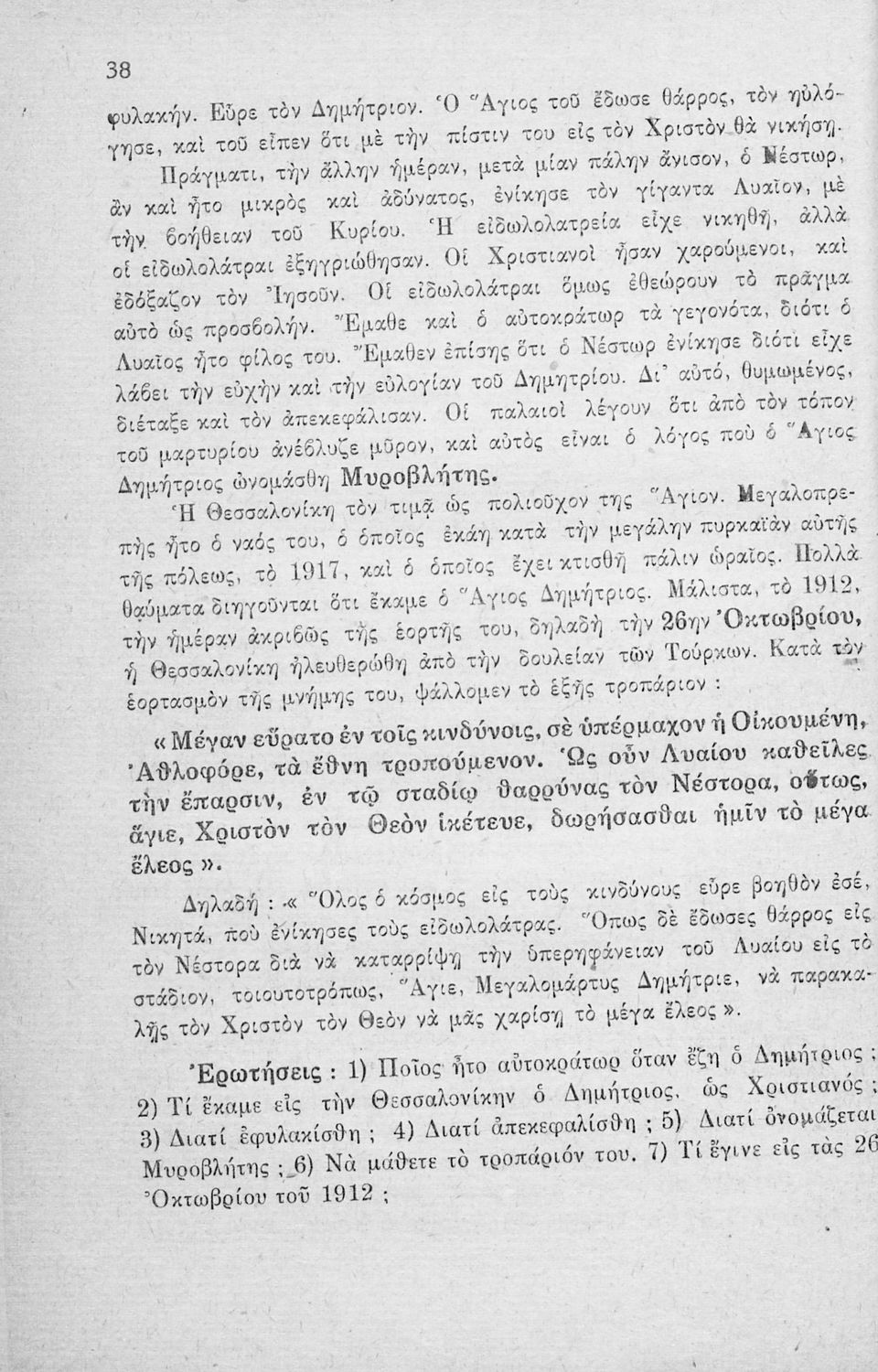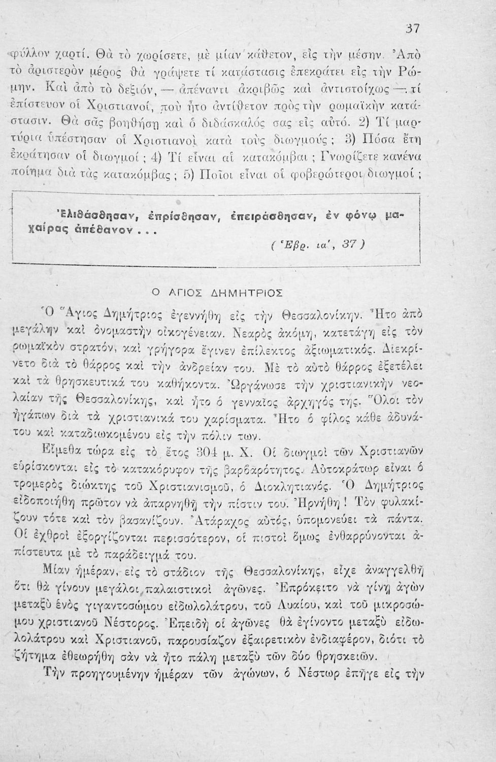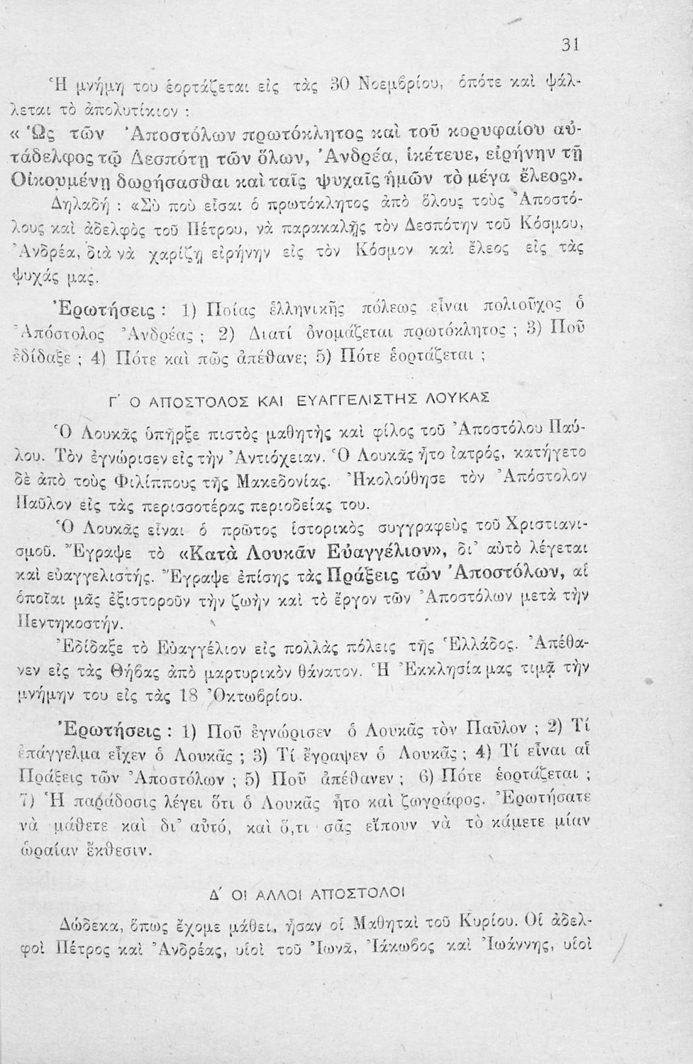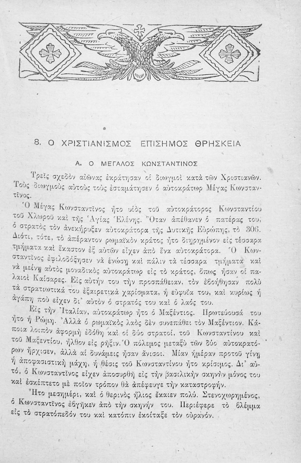 Βαθμίδα εκπαίδευσης: Πρωτοβάθμια Τάξη: Ε' Δημοτικού Μάθημα: Θρησκευτικά Γλώσσα: Απλή καθαρεύουσα Παρουσίαση περιεχομένου: Μαθητικό βοήθημα Θρησκευτικών Ε΄ Δημοτικού που αποτελεί μια ιστορική επισκόπηση της Ορθόδοξης Εκκλησίας από την ίδρυσή της μέχρι την ίδρυση της Εκκλησίας της Ελλάδας. |