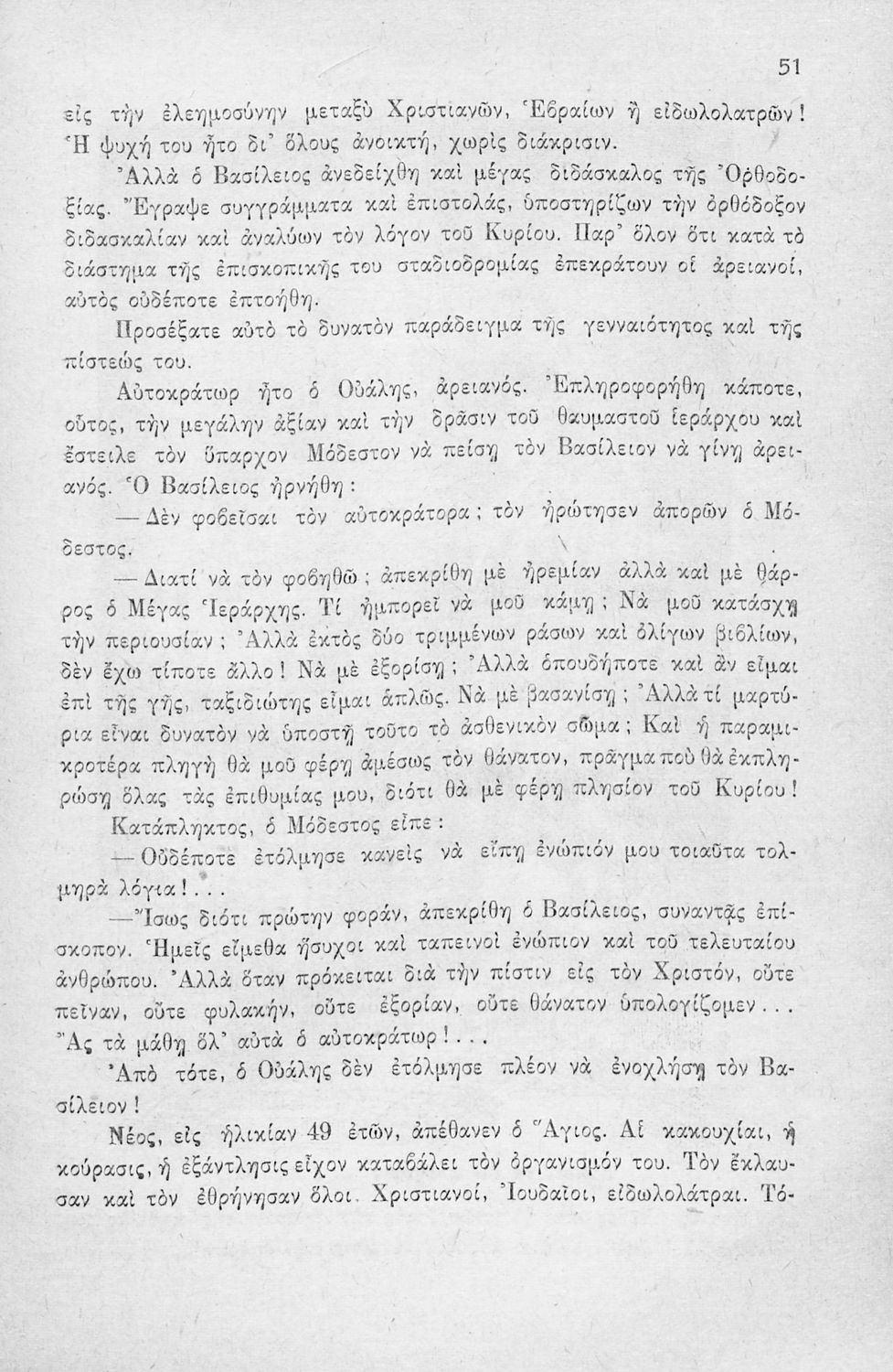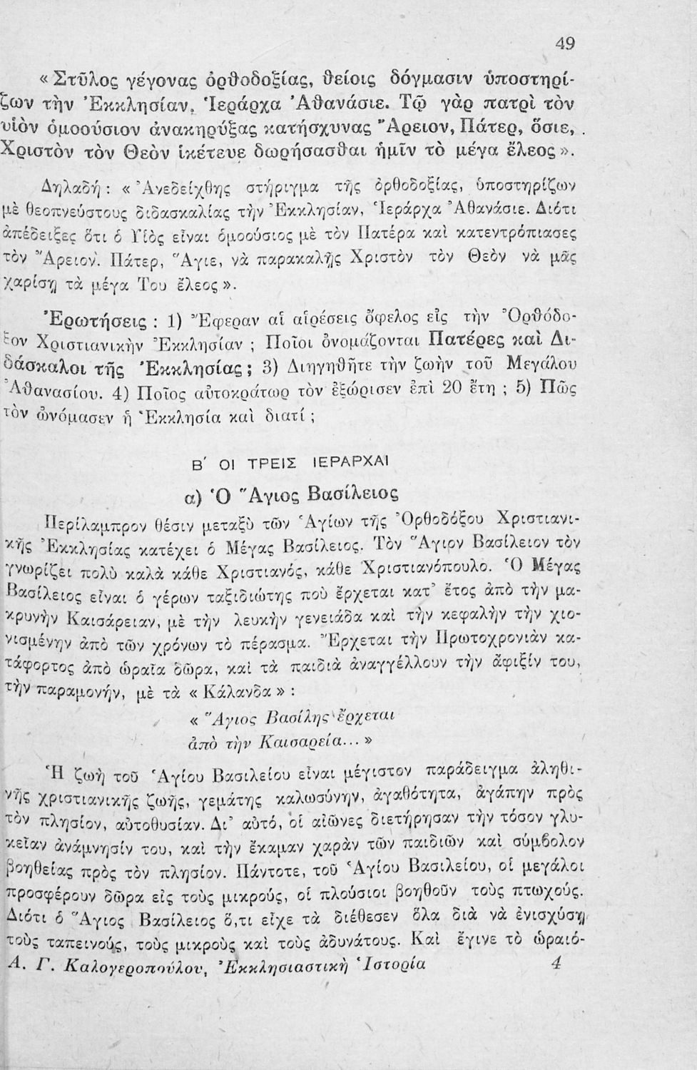Βαθμίδα εκπαίδευσης: Πρωτοβάθμια Τάξη: Ε' Δημοτικού Μάθημα: Θρησκευτικά Γλώσσα: Απλή καθαρεύουσα Παρουσίαση περιεχομένου: Μαθητικό βοήθημα Θρησκευτικών Ε΄ Δημοτικού που αποτελεί μια ιστορική επισκόπηση της Ορθόδοξης Εκκλησίας από την ίδρυσή της μέχρι την ίδρυση της Εκκλησίας της Ελλάδας. |