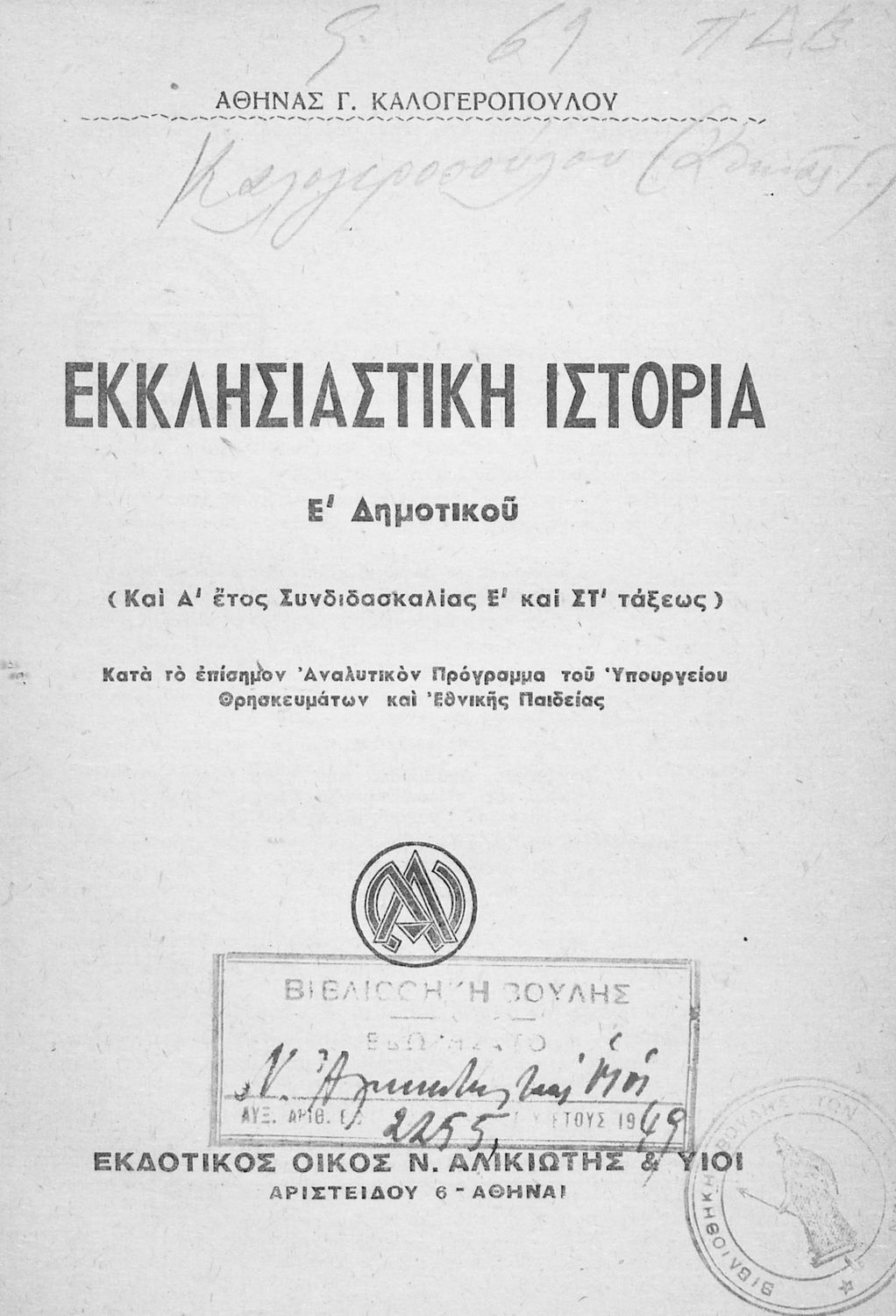 Εκκλησιαστική ιστορία Ε΄ Δημοτικού (και Α΄ έτος συνδιδασκαλίας Ε΄ και ΣΤ΄ τάξεως)