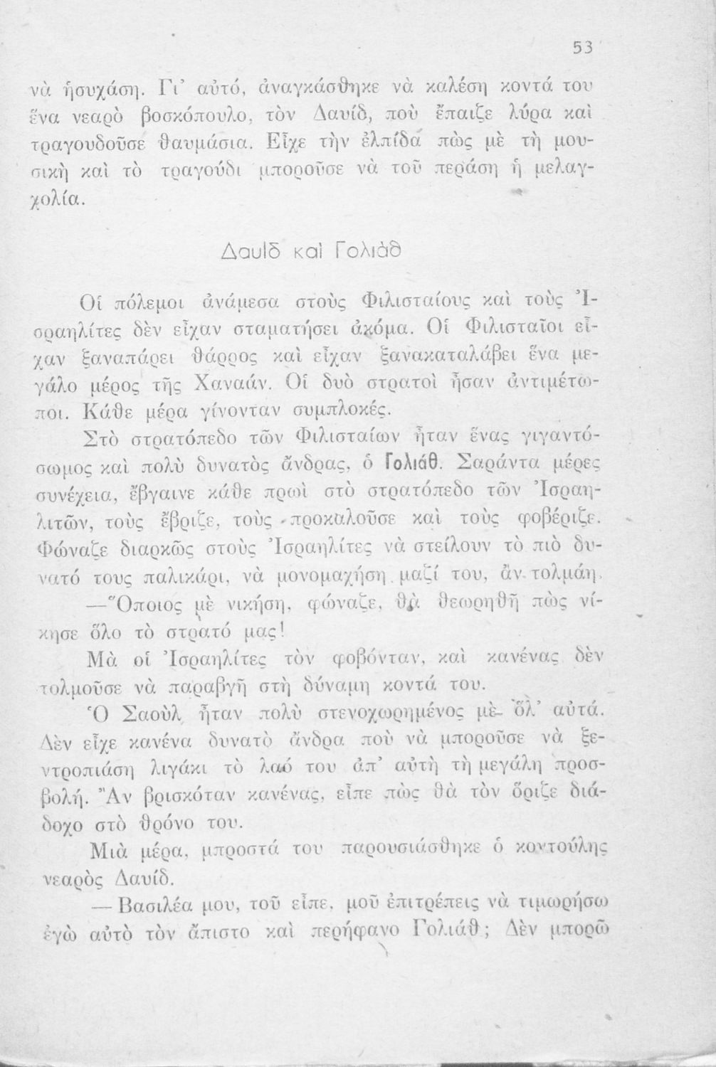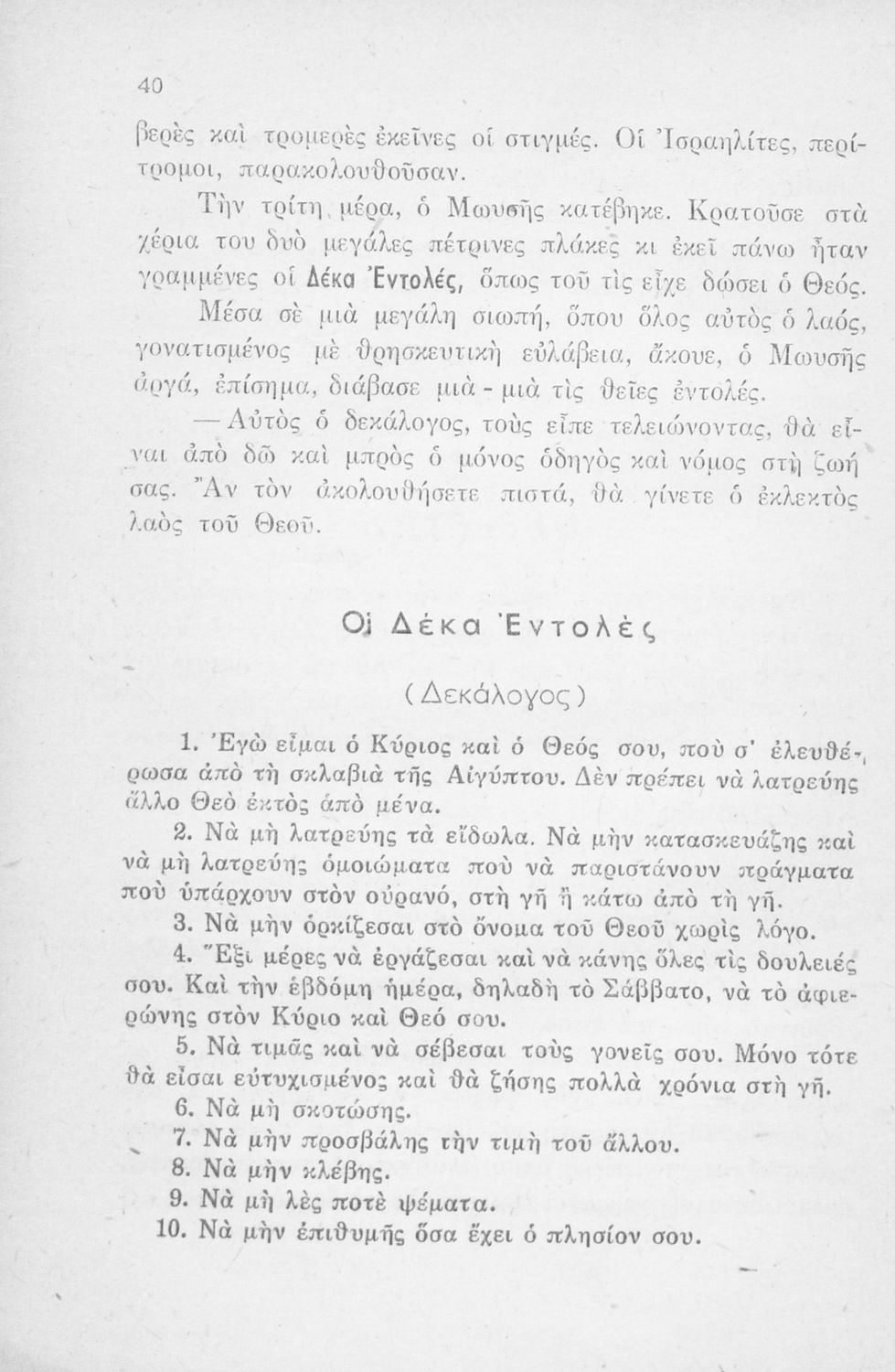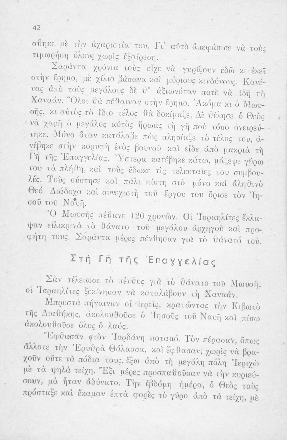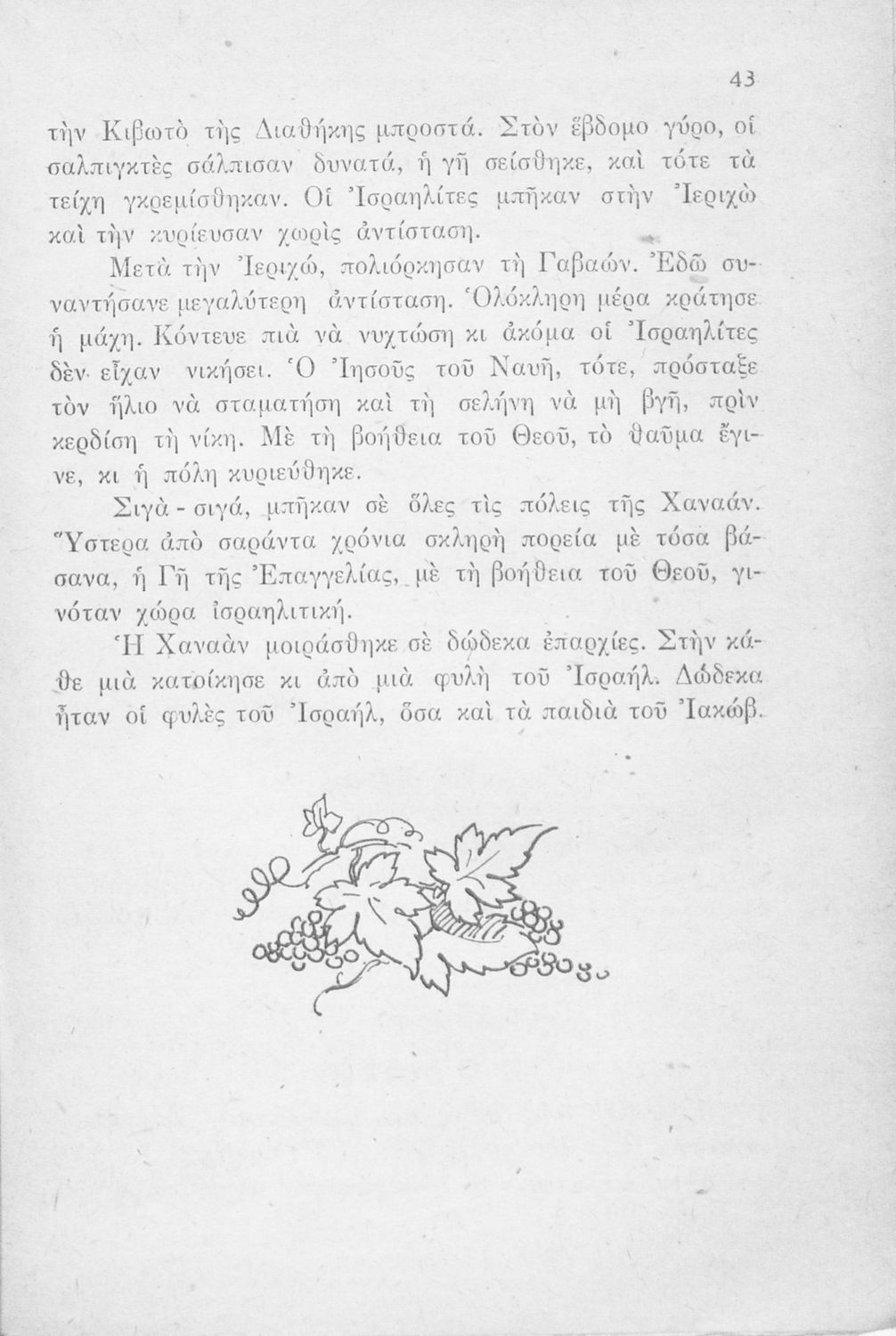 Σχολικό εγχειρίδιο για την Γ΄ Τάξη πιθανόν της Εκκλησιαστικής Γεωργικής Σχολής. Αναφέρεται στα γεγονότα της Παλαιάς Διαθήκης. Περιέχει τη δράση του Ιακώβ, του Μωυσή, μέχρι και τους προφήτες.