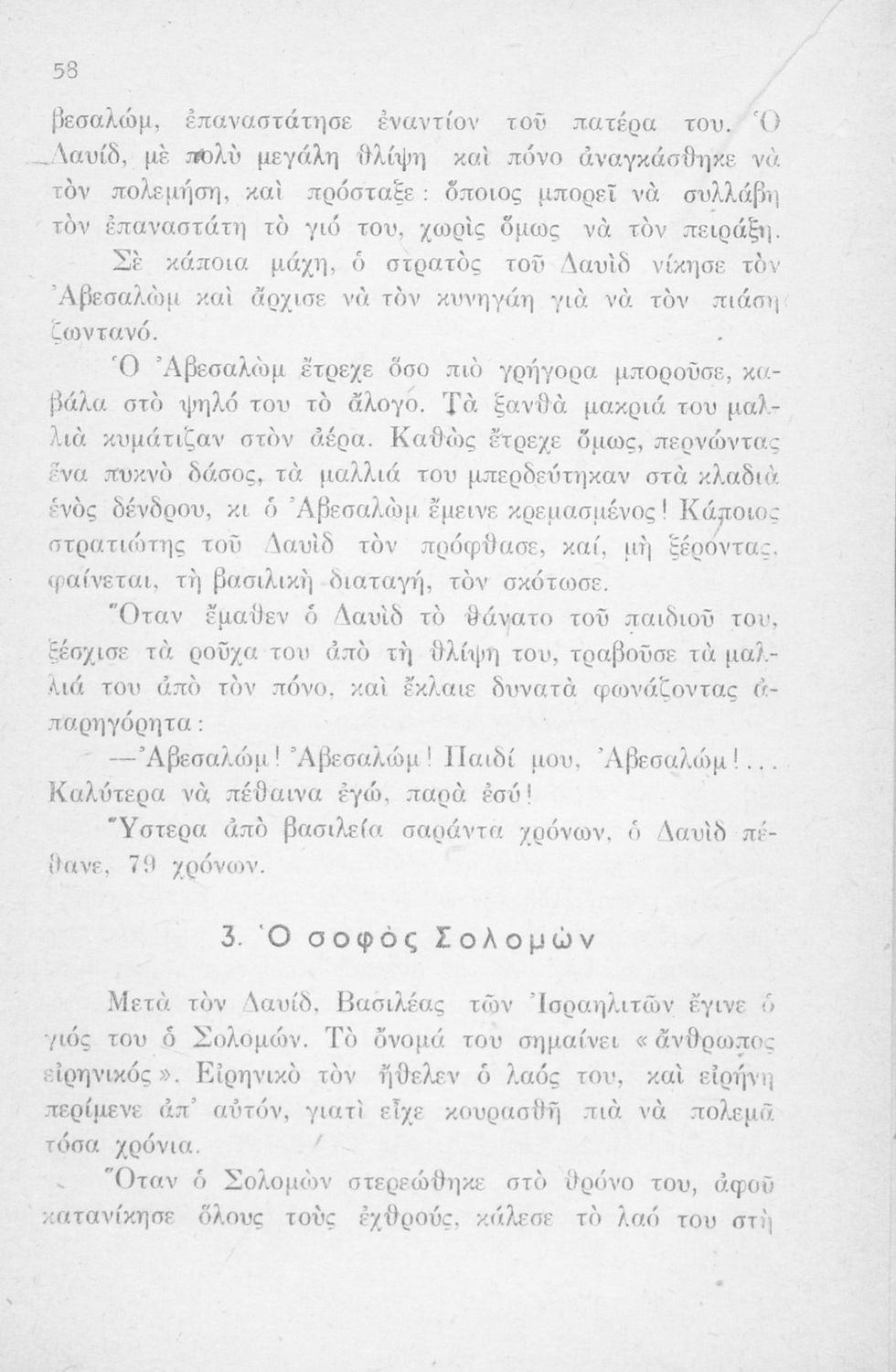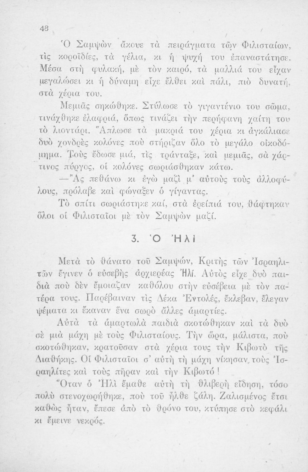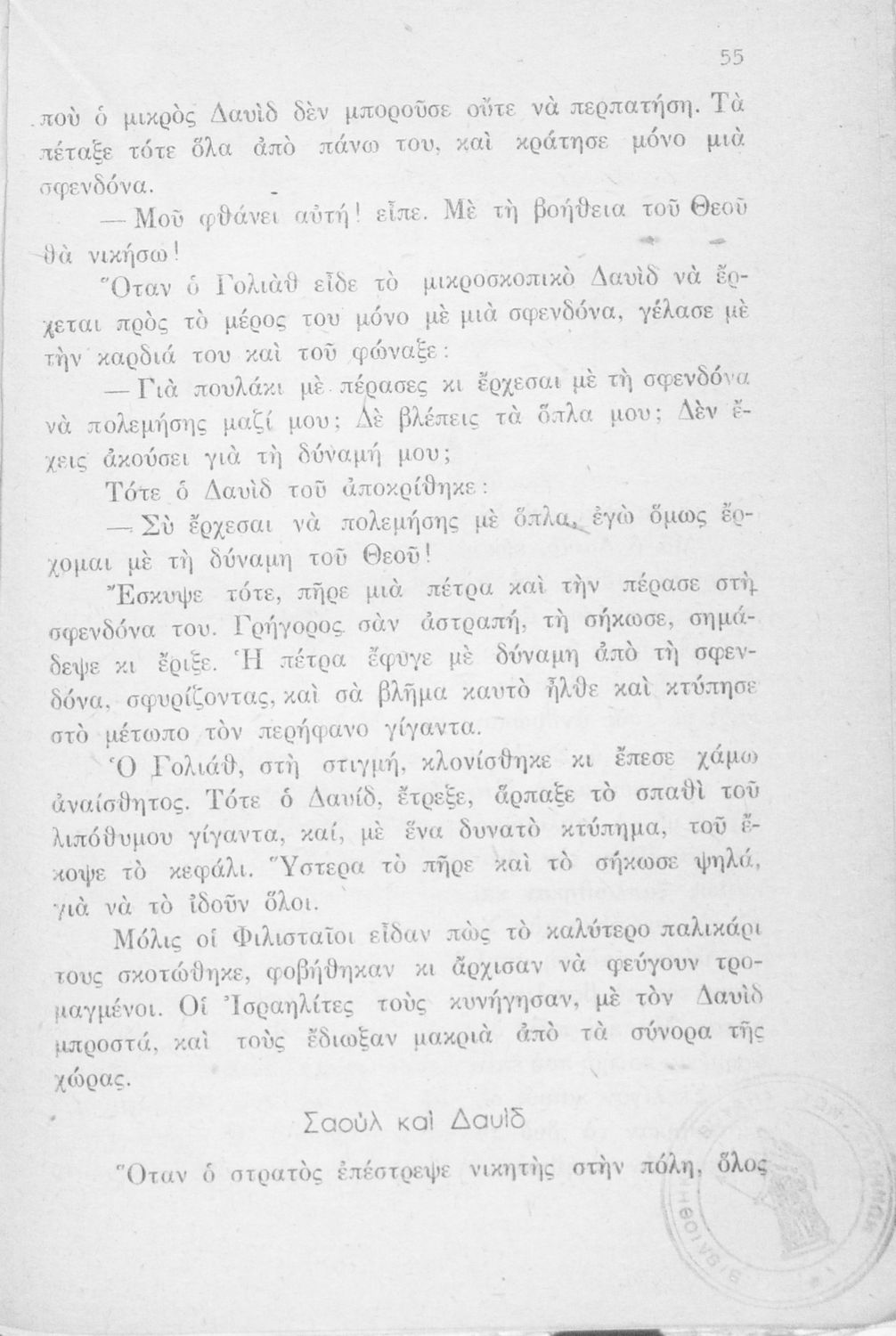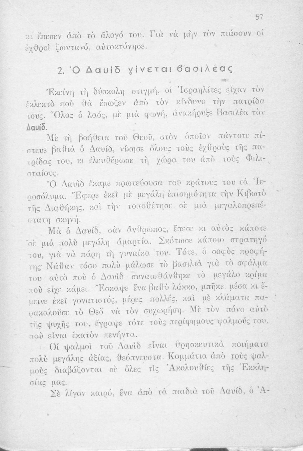 Σχολικό εγχειρίδιο για την Γ΄ Τάξη πιθανόν της Εκκλησιαστικής Γεωργικής Σχολής. Αναφέρεται στα γεγονότα της Παλαιάς Διαθήκης. Περιέχει τη δράση του Ιακώβ, του Μωυσή, μέχρι και τους προφήτες.