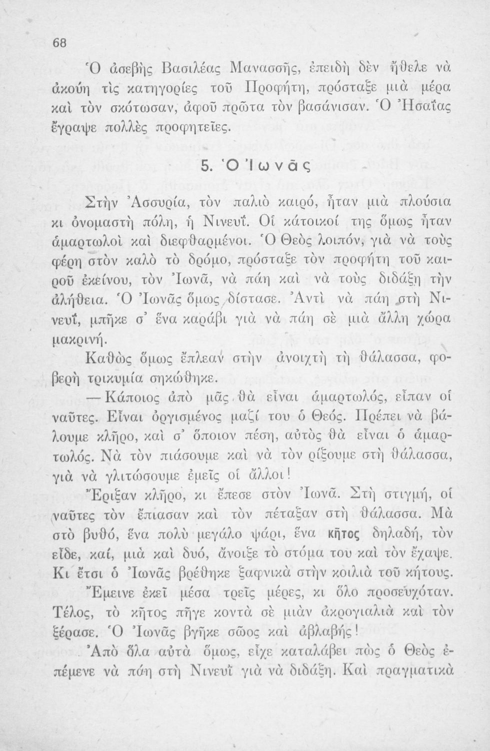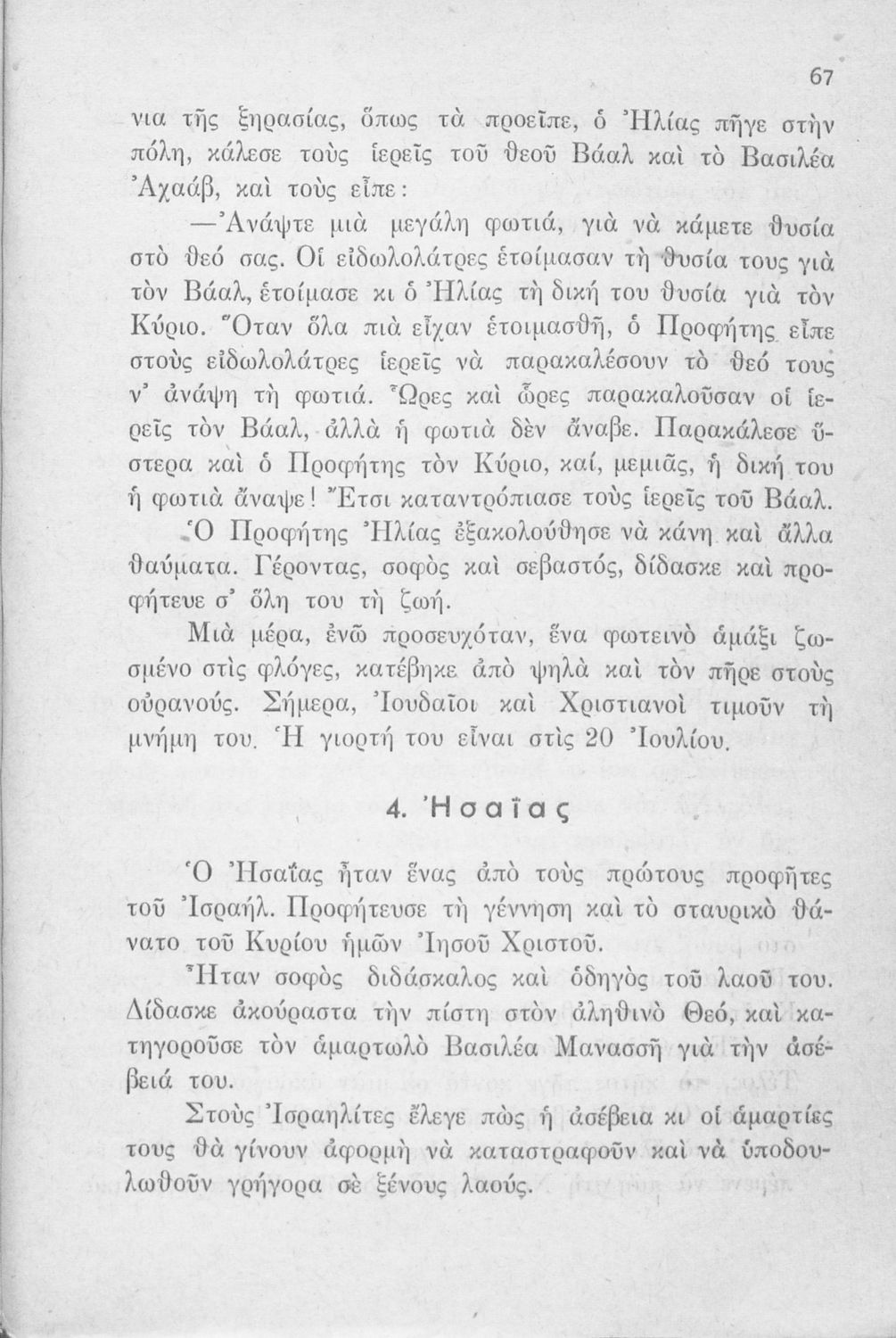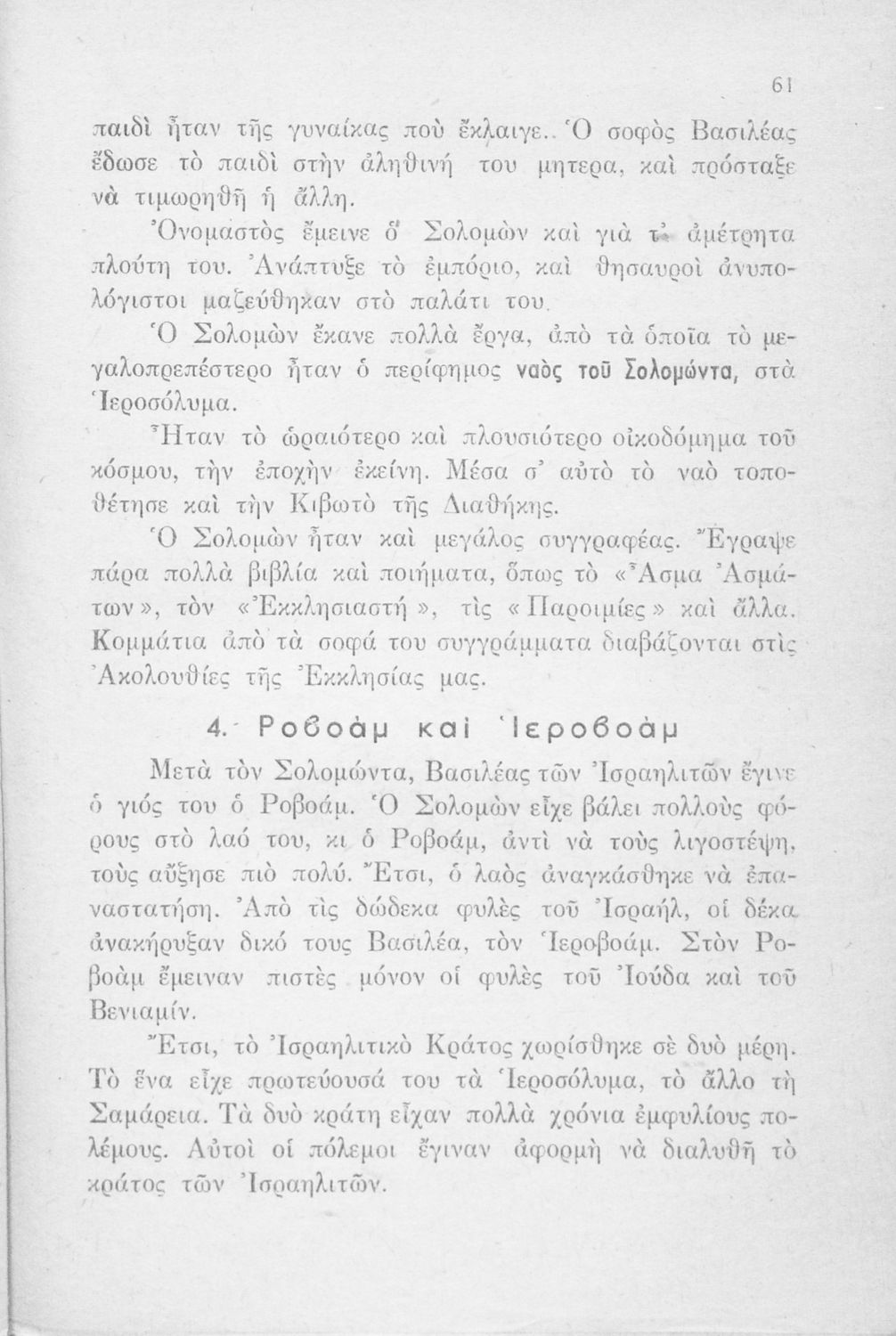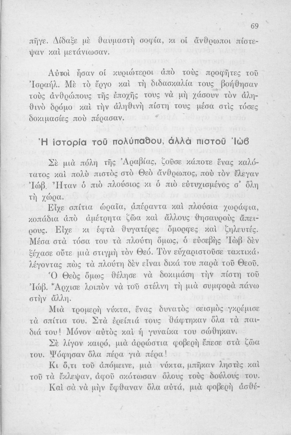 Σχολικό εγχειρίδιο για την Γ΄ Τάξη πιθανόν της Εκκλησιαστικής Γεωργικής Σχολής. Αναφέρεται στα γεγονότα της Παλαιάς Διαθήκης. Περιέχει τη δράση του Ιακώβ, του Μωυσή, μέχρι και τους προφήτες.
