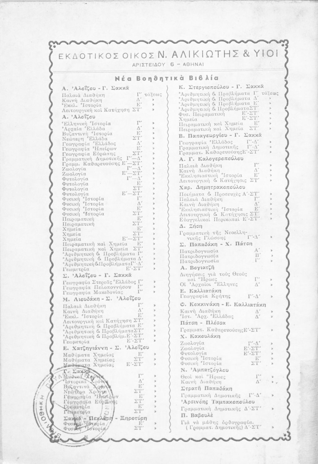 Σχολικό εγχειρίδιο Γ΄ και Δ΄ Δημοτικού που περιέχει τη γραμματικής της νέας ελληνικής. Την έκδοση επιμελήθηκε ο Γ. Λογοθέτης, τέως διευθυντής του επταταξίου δημ. Τμήμ.της Ευαγγελικής Σχολής.
