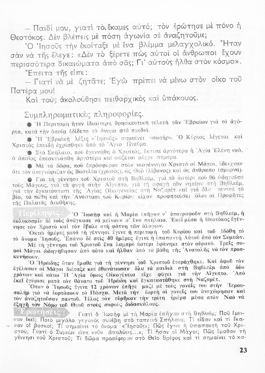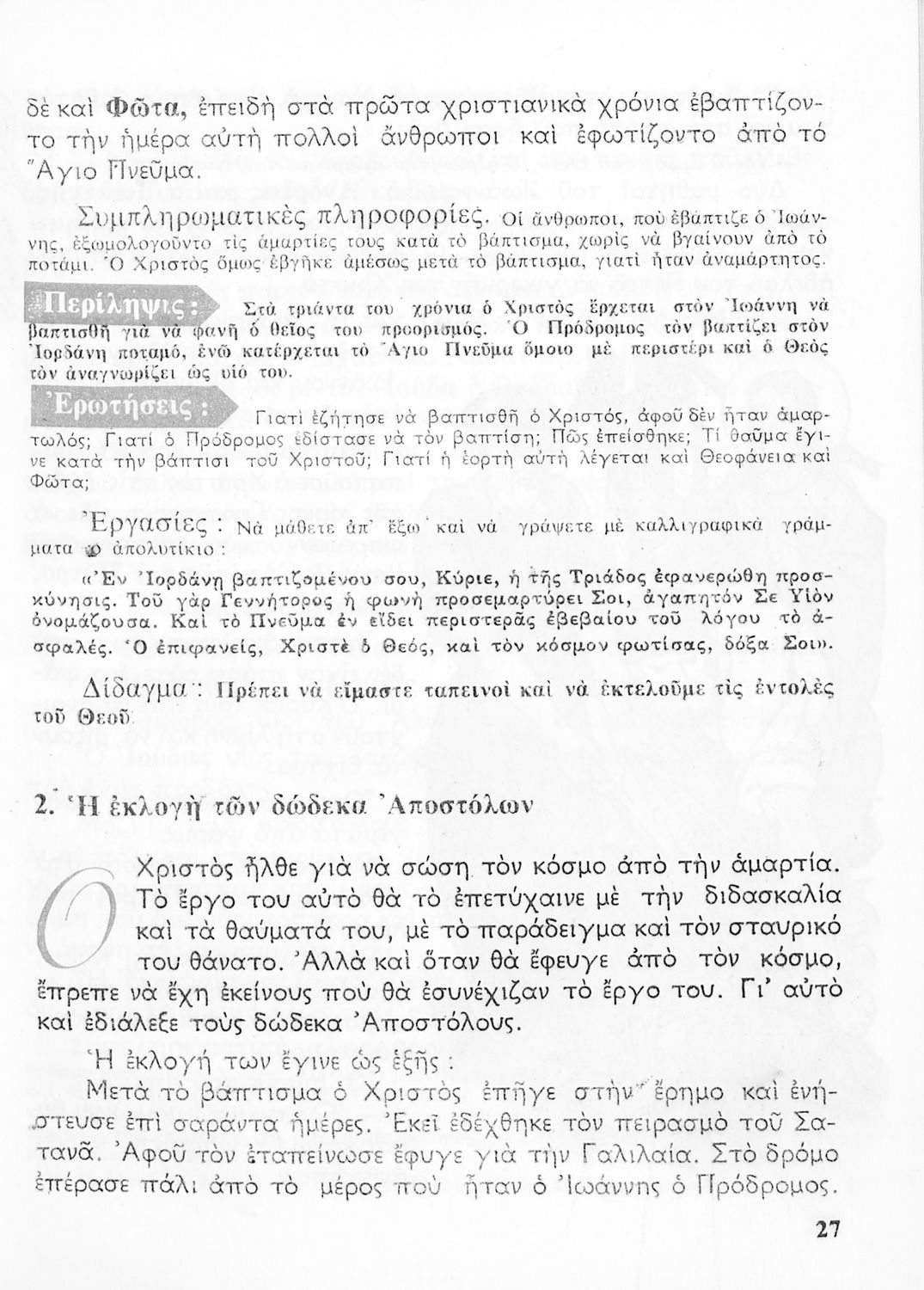 Σχολικό εγχειρίδιο Θρησκευτικών Β΄ Γυμνασίου που συνιστά μία εξιστόρηση της Καινής Διαθήκης από τη γέννηση της Θεοτόκου ως την ανάληψη του Χριστού. Περιέχει και απολυτίκια.