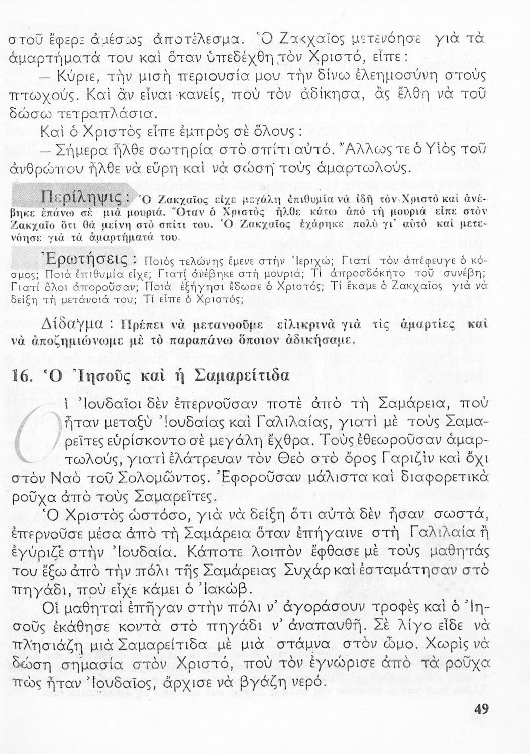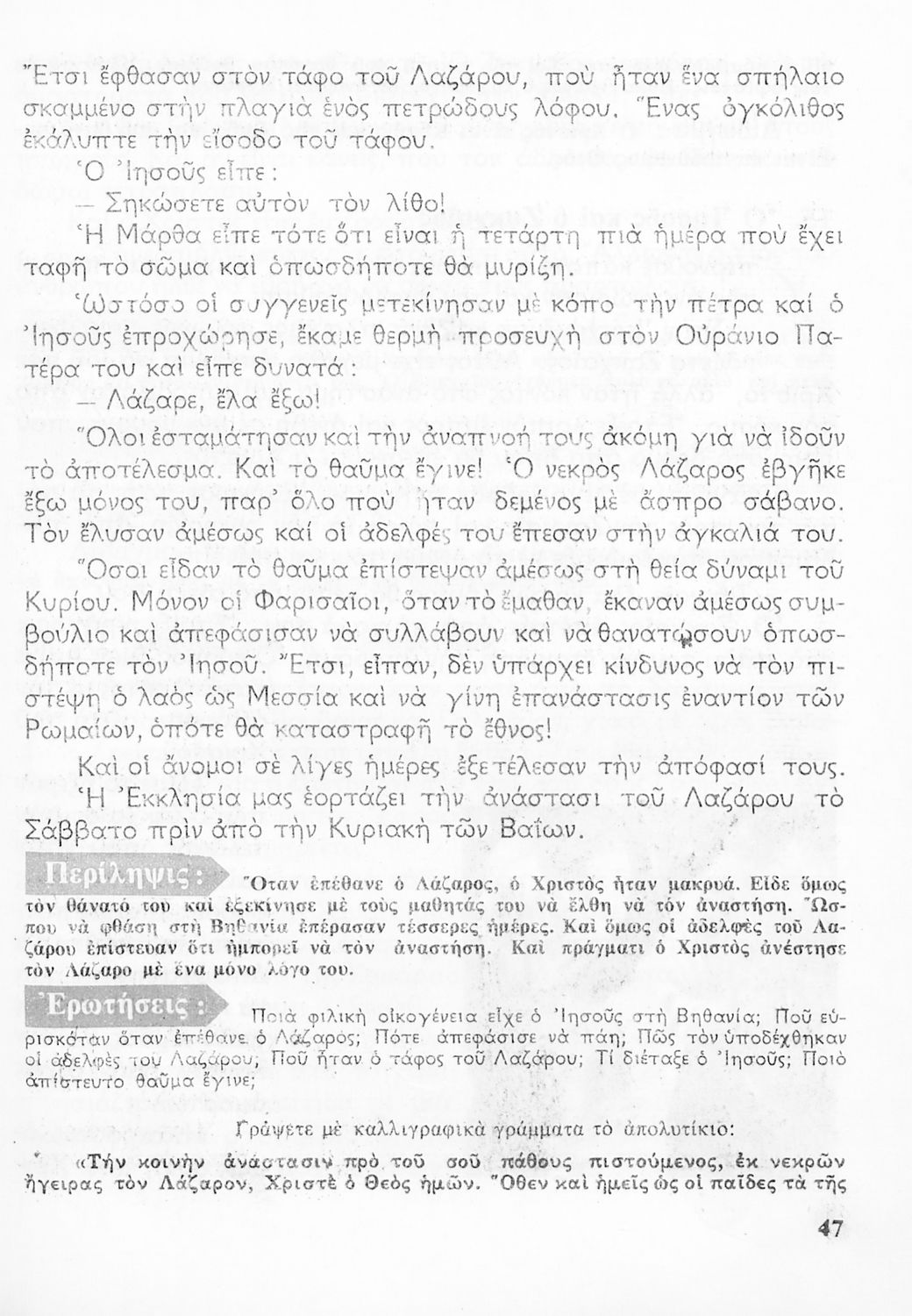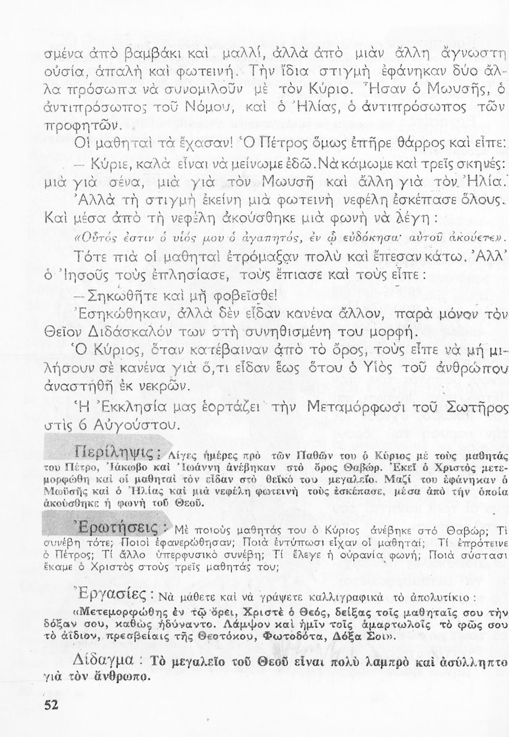 Βαθμίδα εκπαίδευσης: Πρωτοβάθμια Τάξη: Δ' Δημοτικού Μάθημα: Θρησκευτικά Γλώσσα: Δημοτική με στοιχεία καθαρεύουσας Παρουσίαση περιεχομένου: Μαθητικό βοήθημα Θρησκευτικών Δ΄ Δημοτικού που αποτελεί μια εξιστόρηση της Καινής Διαθήκης από τη γέννηση της Θεοτόκου μέχρι την ανάληψη του Χριστού. |