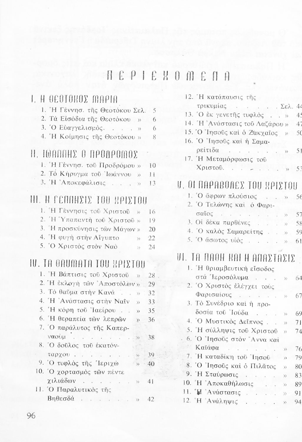 Σχολικό εγχειρίδιο Θρησκευτικών Β΄ Γυμνασίου που συνιστά μία εξιστόρηση της Καινής Διαθήκης από τη γέννηση της Θεοτόκου ως την ανάληψη του Χριστού. Περιέχει και απολυτίκια.