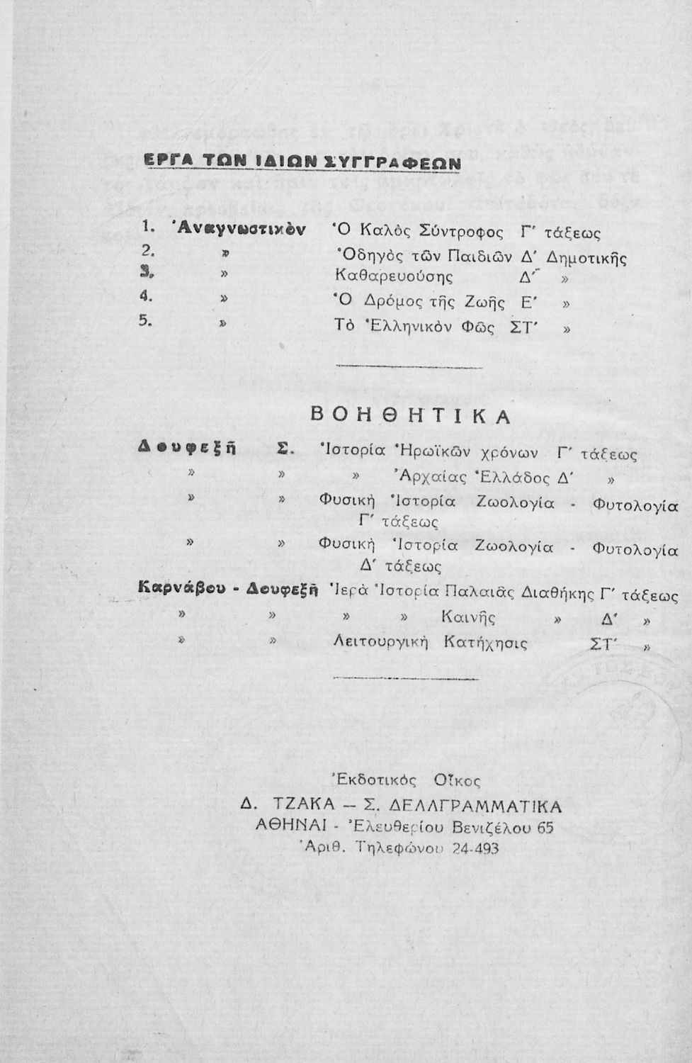 Εκδότης: Δημ. Ν. Τζάκας, Στεφ. Δελαγραμμάτικας και ΣΙΑ Έτος έκδοσης: 1946 Τόπος έκδοσης: Αθήνα Έκδοση: 3η |