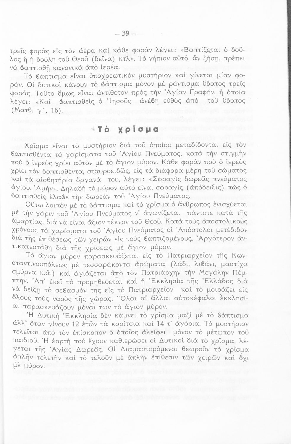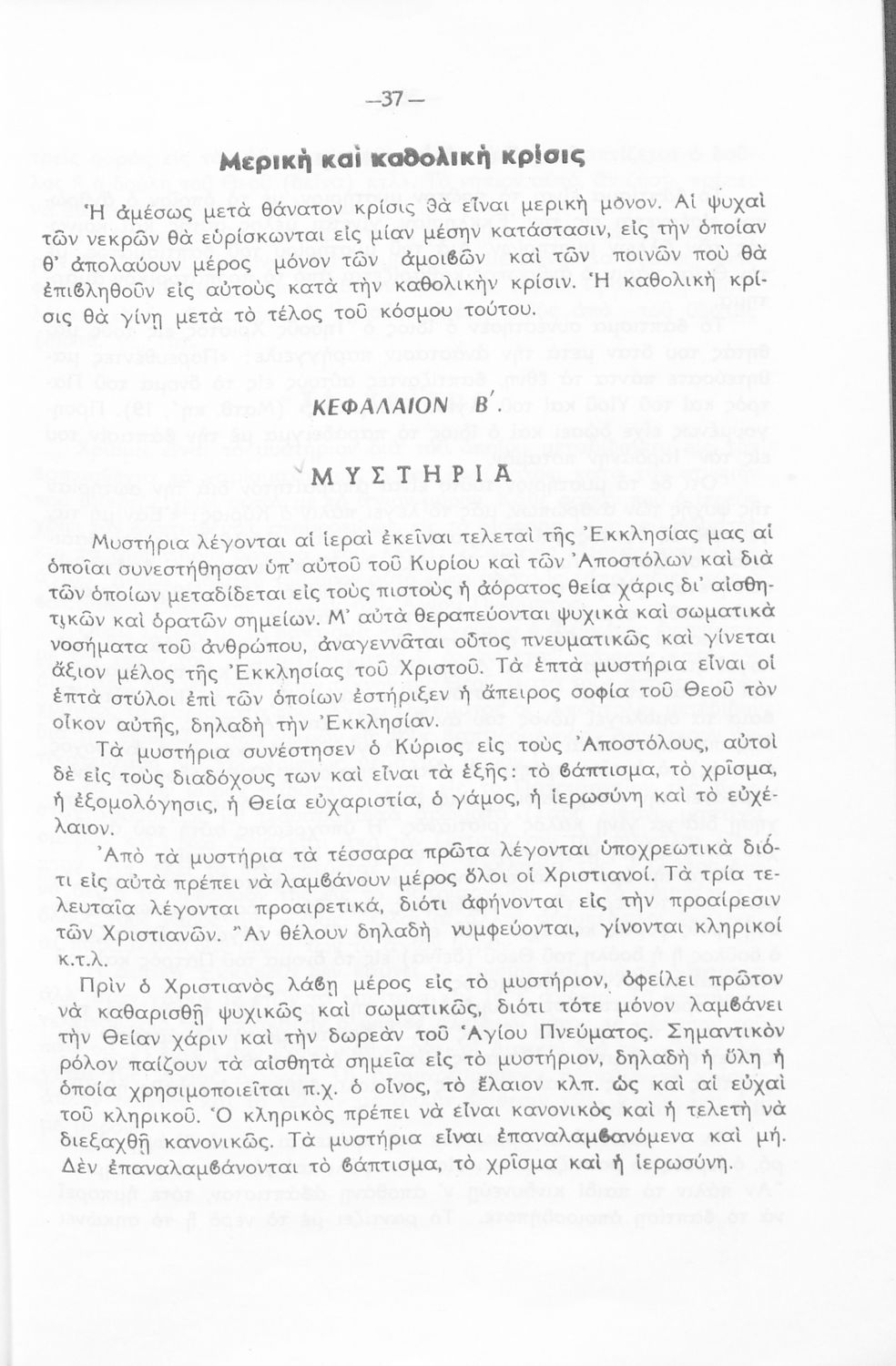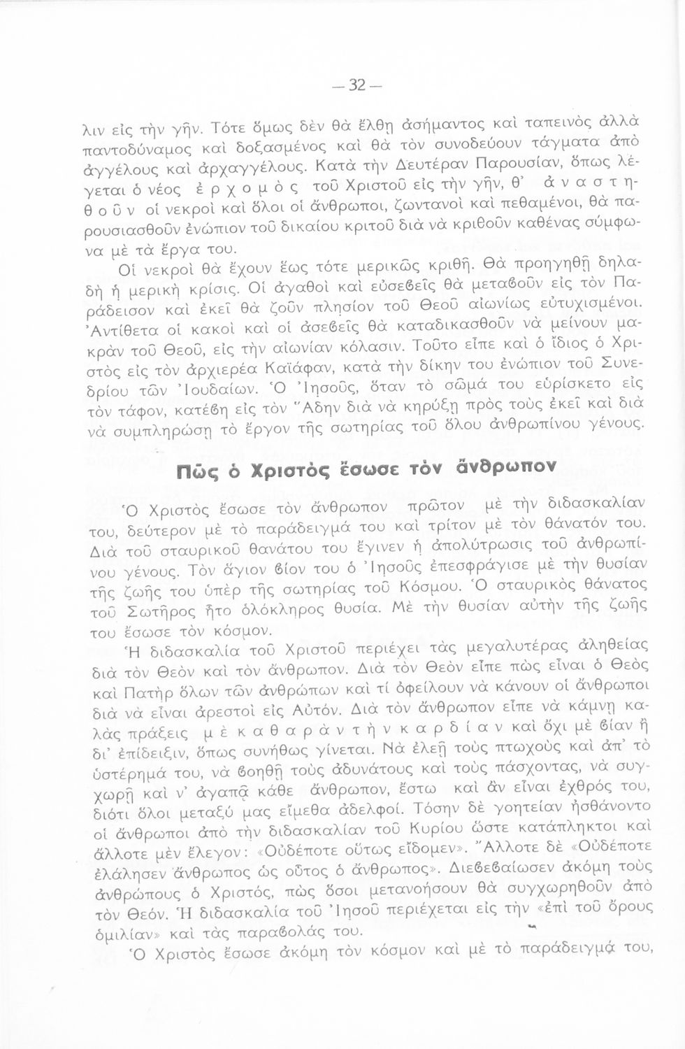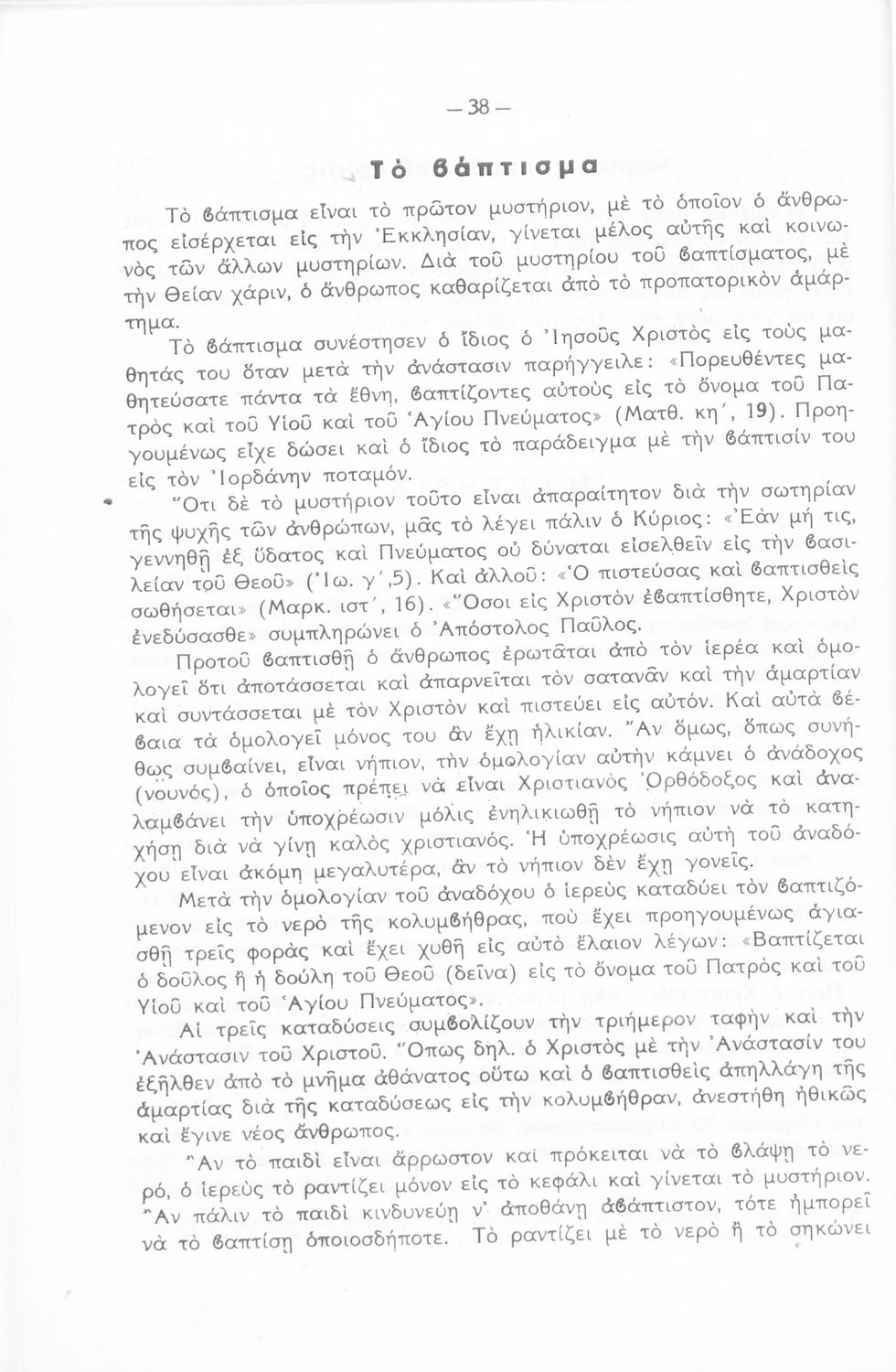 Βαθμίδα εκπαίδευσης: Πρωτοβάθμια Τάξη: ΣΤ' Δημοτικού Μάθημα: Θρησκευτικά Γλώσσα: Απλή καθαρεύουσα Παρουσίαση περιεχομένου: Μαθητικό βοήθημα Θρησκευτικών ΣΤ΄ Δημοτικού που αναλύει την έννοια της κατήχησης στις διάφορες θρησκείες με έμφαση στο ορθόδοξο χριστιανικό δόγμα, το οποίο εξετάζει από δογματική και ηθική σκοπιά. Περιλαμβάνει και στοιχεία λειτουργικής της Ορθόδοξης Εκκλησίας και παράρτημα με προσευχές. |