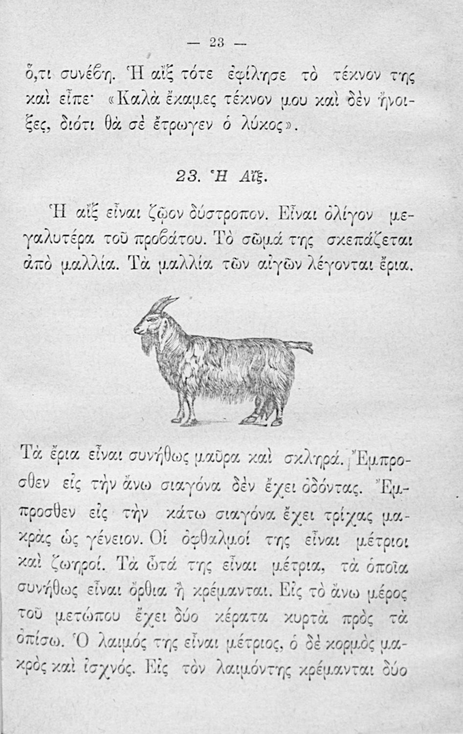 Σχολικό εγχειρίδιο Γεωγραφίας για την Α΄ Ελληνικών Σχολείων. Βιβλίο Φυσικής Ιστορίας με ζώα και φυτά που αναφέρονται οι χρήσεις τους, οι εχθροί και οι προφυλάξεις.