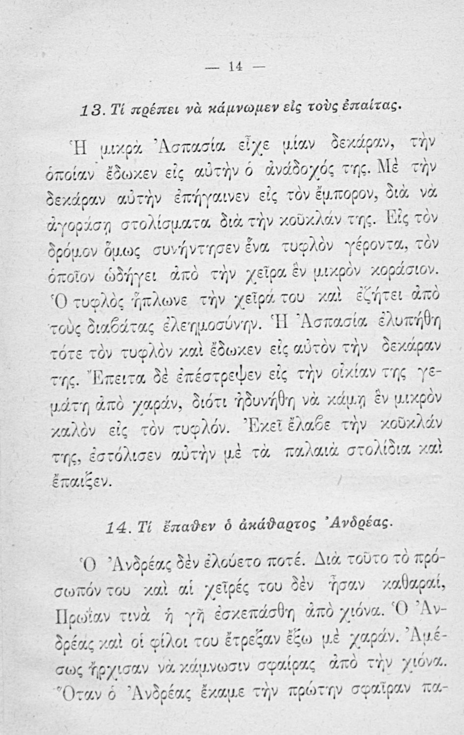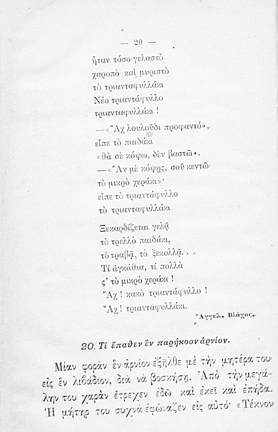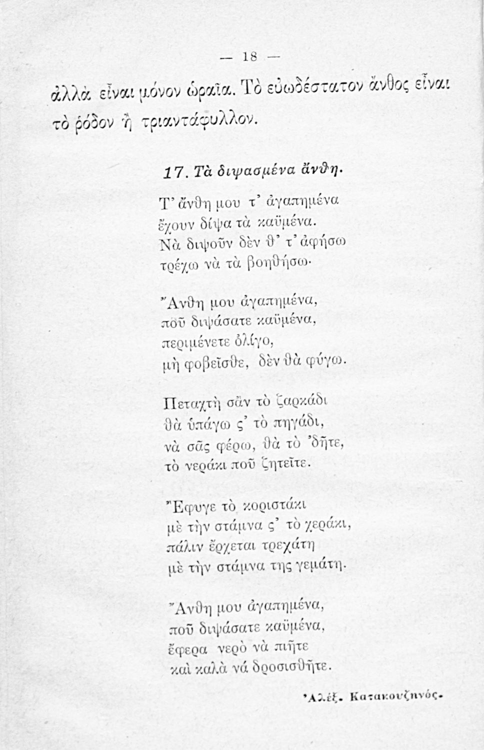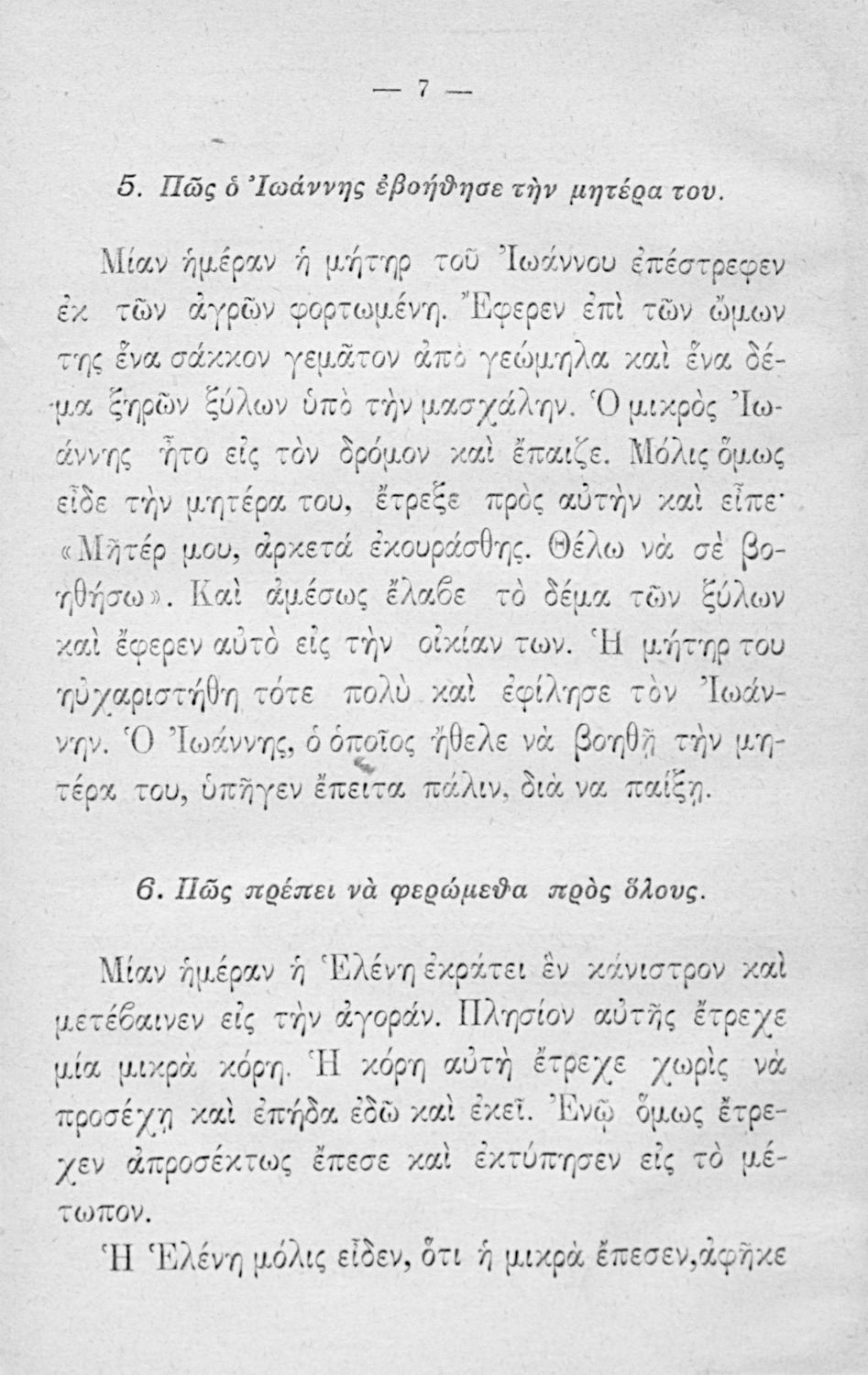 Αναγνωστικό Α΄ Δημοτικού που περιλαμβάνει ποιήματα και πεζά ηθοποιητικού περιεχομένου.