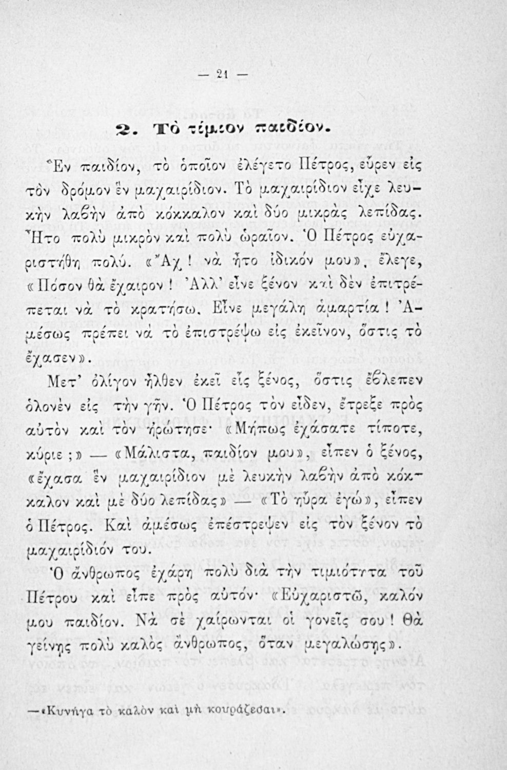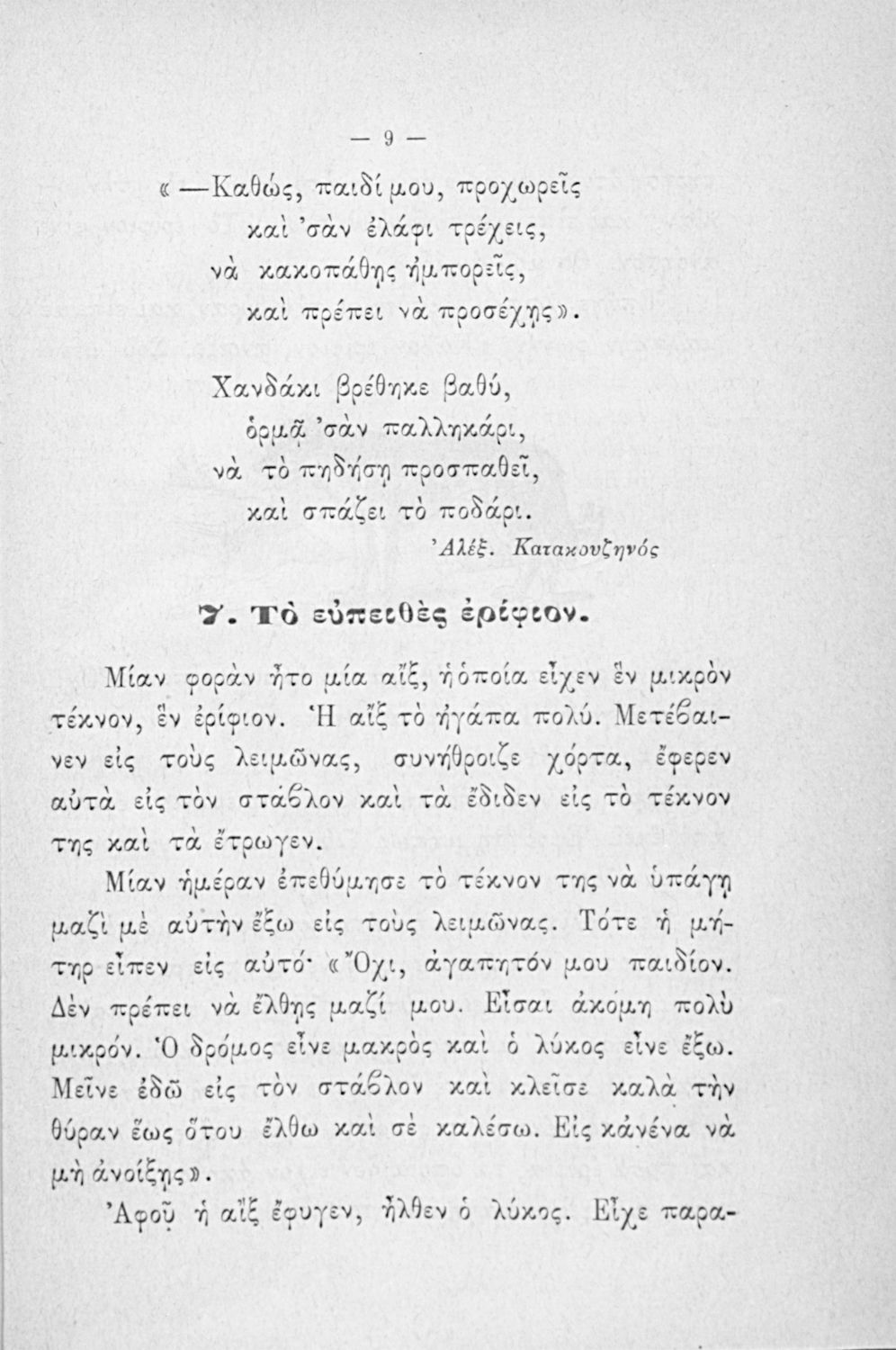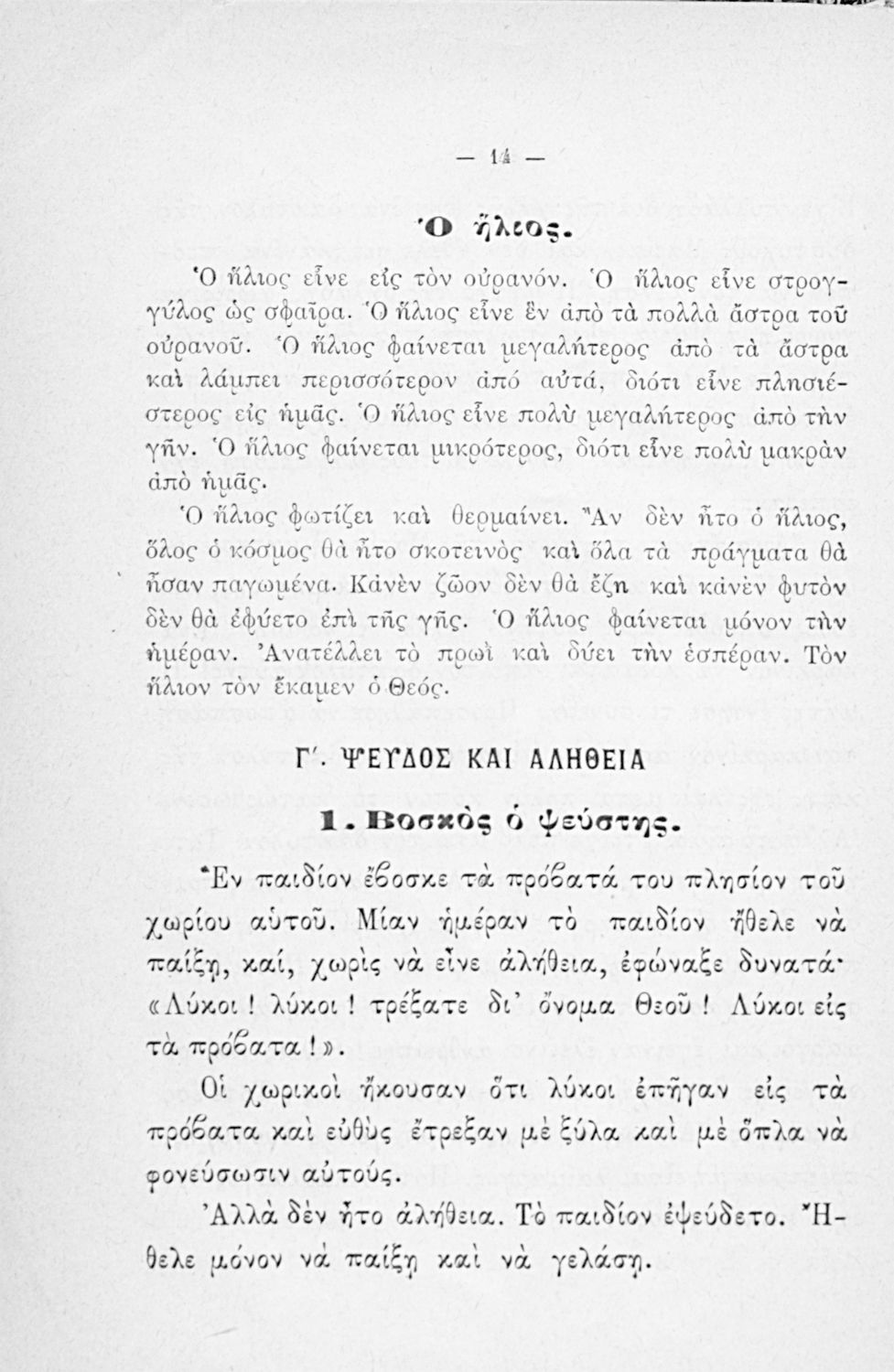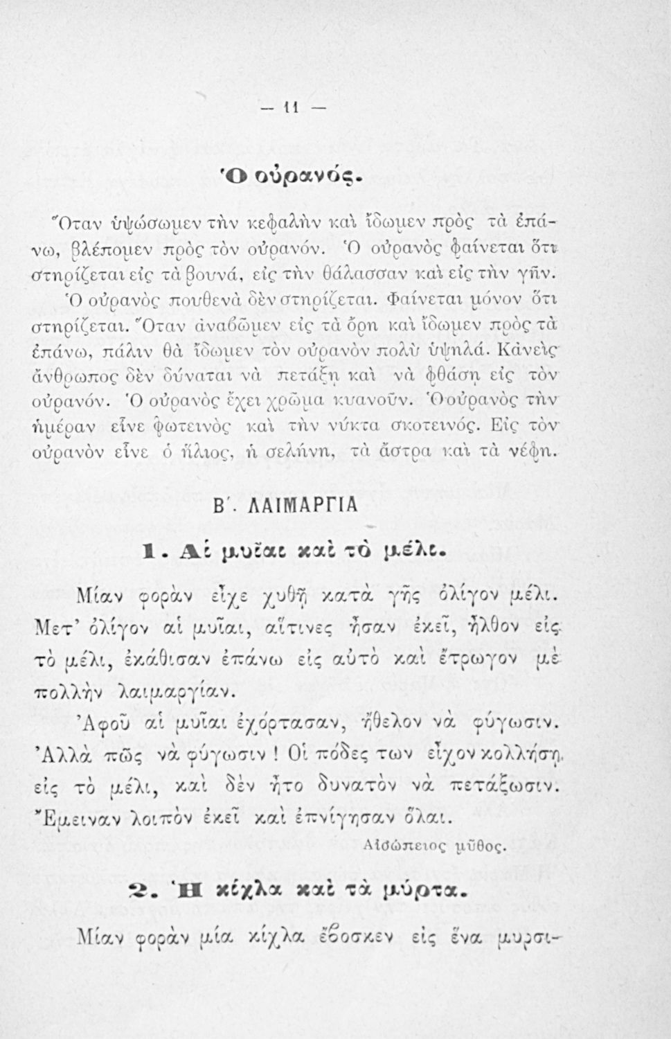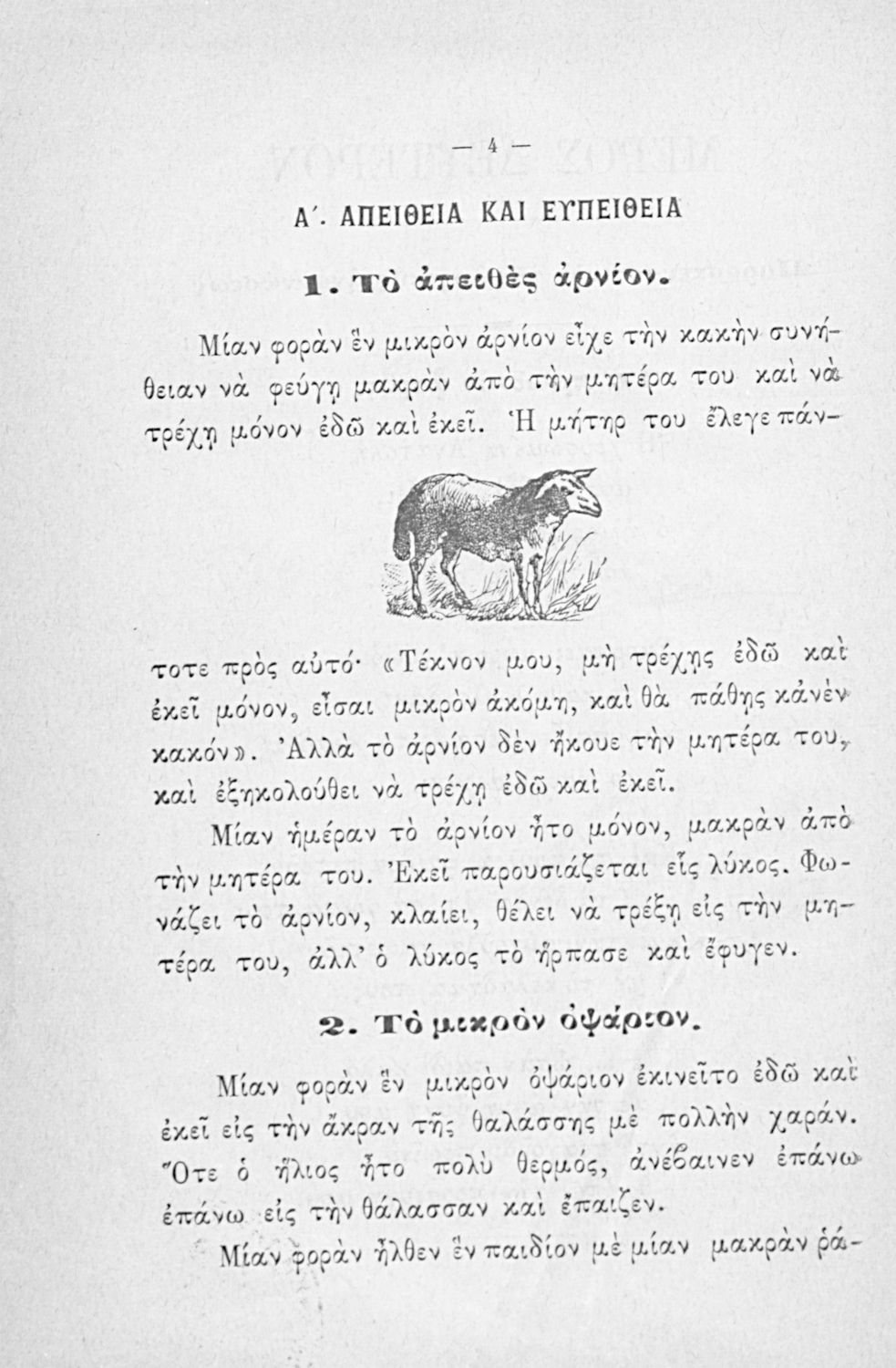 Σχολικό εγχειρίδιο Αρχαίων Ελληνικών Β΄ Ελληνικού Σχολείου και Γ' Δημοτικού που περιλαμβάνει σύντομα κείμενα προσαρμοσμένα στη διδασκαλία των γραμματικών φαινομένων, λεξιλόγιο και ασκήσεις.