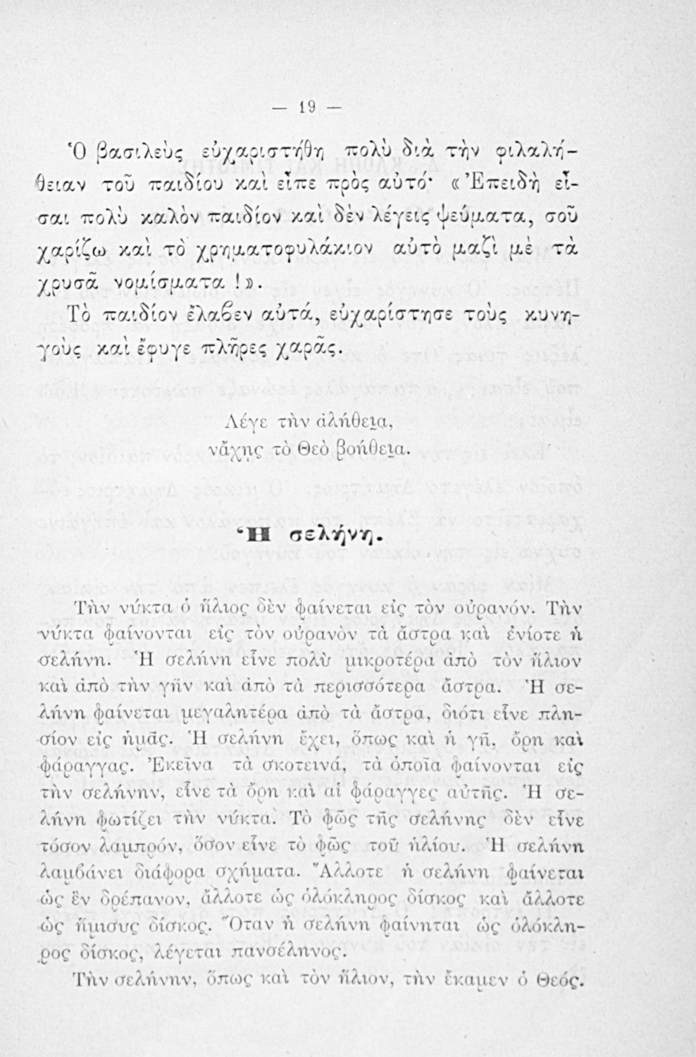 Αναγνωστικό Δημοτικού που περιλαμβάνει ποιήματα και πεζά ηθοποιητικού περιεχομένου.