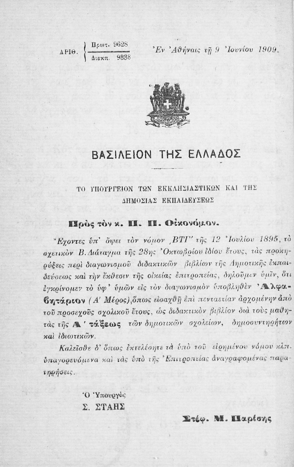 Υπουργική απόφαση / Σύμβαση: 6928/9-9-1904