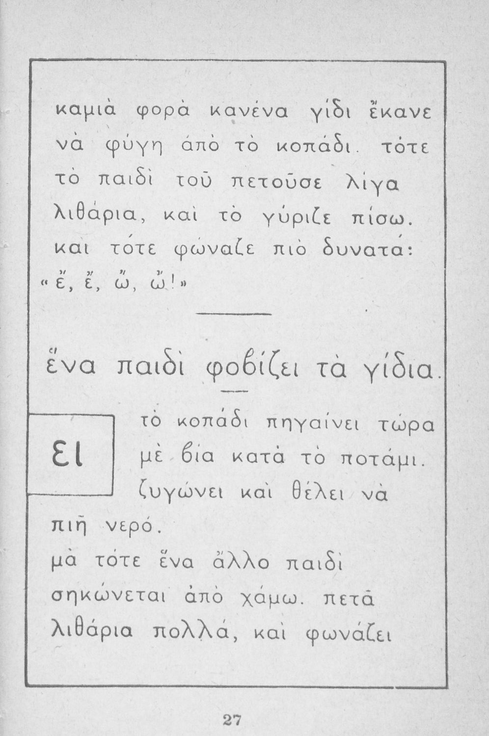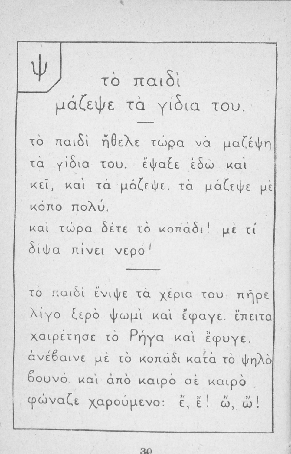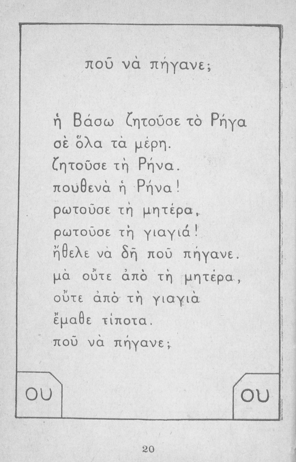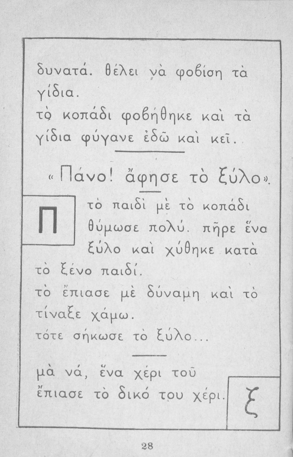 Σχολικό εγχειρίδιο Γλώσσας Δημοτικού που περιλαμβάνει τη γραμματική της νέας ελληνικής και είναι χωρισμένο σε φθογγολογικό, τυπικό και ετυμολογικό μέρος.