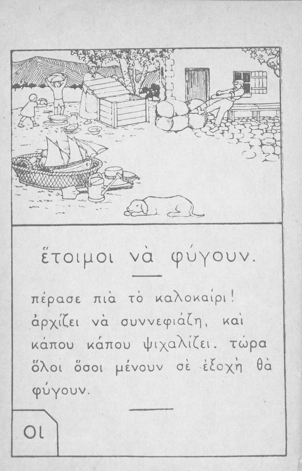 Αναγνωστικό Α΄ Δημοτικού που περιλαμβάνει μικρές συλλαβές και ιστορίες με θεματολογία από την οικογενειακή και κοινωνική ζωή μιας μικροαστικής οικογένειας κατά τη διάρκεια ενός χρόνου.