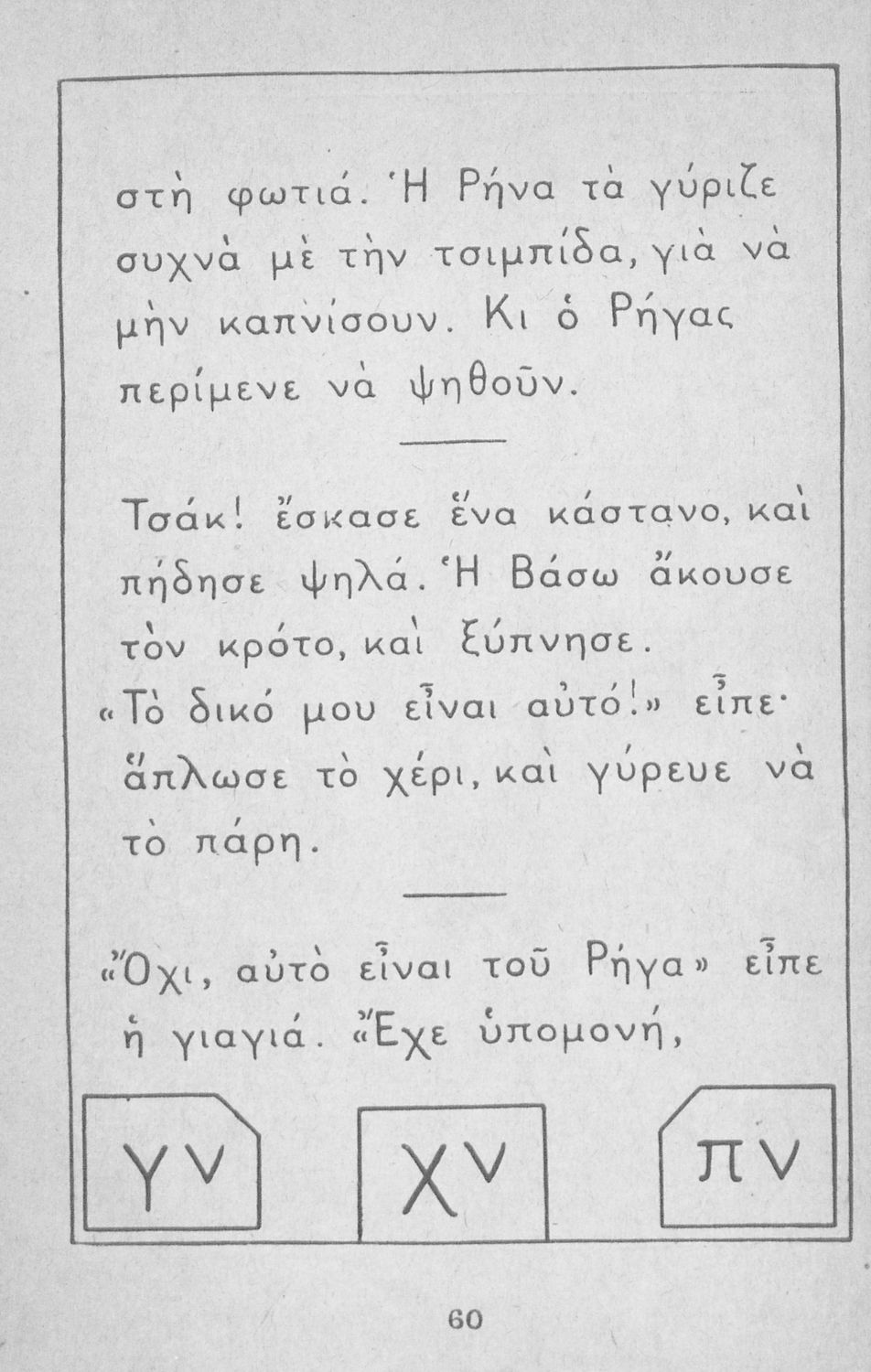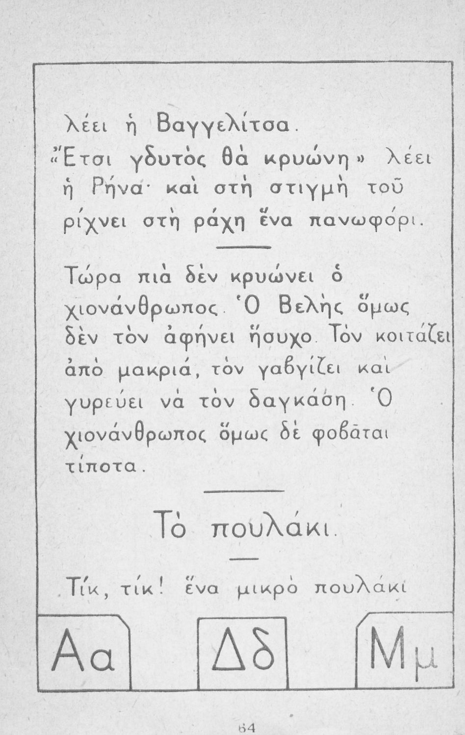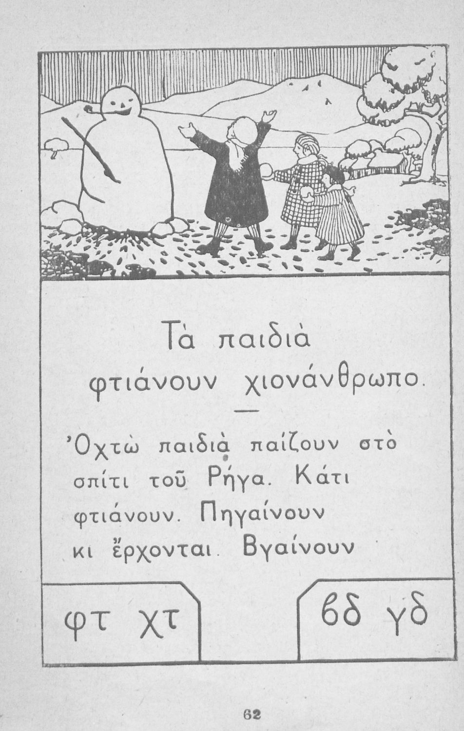 Αναγνωστικό Α΄ Δημοτικού που περιλαμβάνει μικρές συλλαβές και ιστορίες με θεματολογία από την οικογενειακή και κοινωνική ζωή μιας μικροαστικής οικογένειας κατά τη διάρκεια ενός χρόνου.