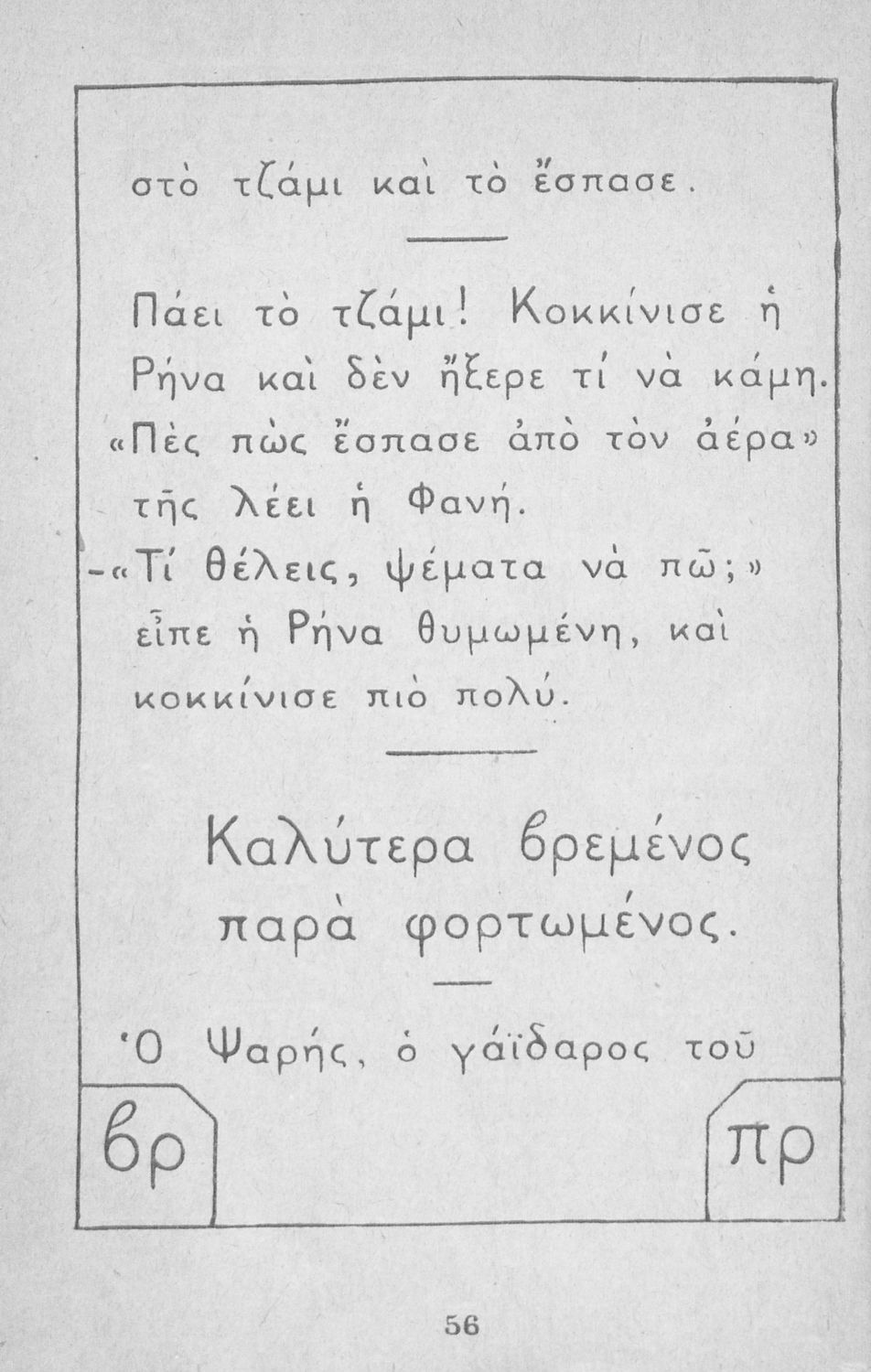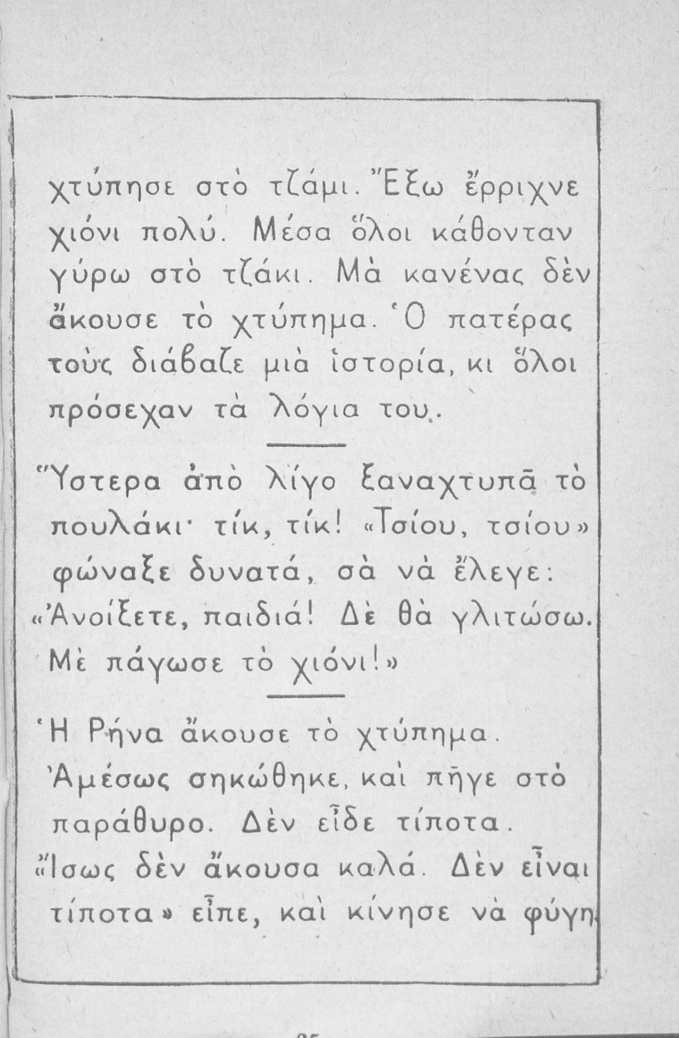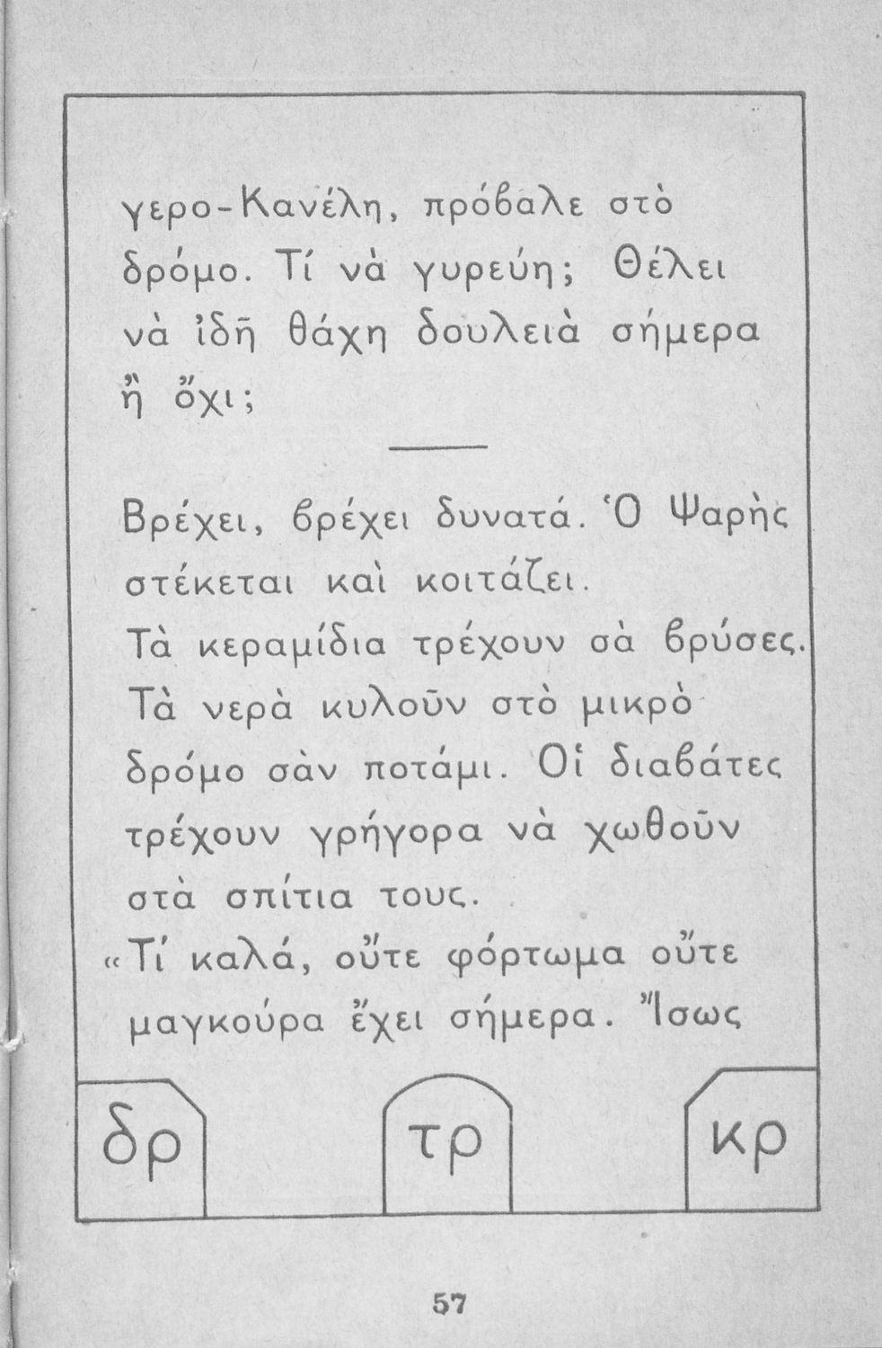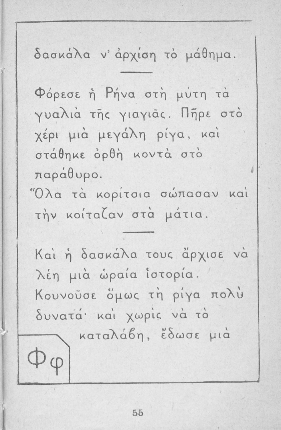 Αναγνωστικό Α΄ Δημοτικού που περιλαμβάνει μικρές συλλαβές και ιστορίες με θεματολογία από την οικογενειακή και κοινωνική ζωή μιας μικροαστικής οικογένειας κατά τη διάρκεια ενός χρόνου.