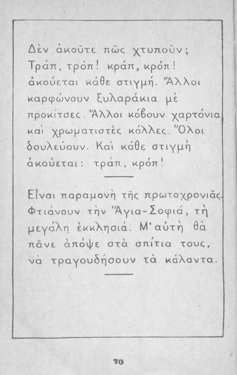 LDR 01282 2200229 4500 035 ## _a03-20561071 040 ## _aΒιβλιοθήκη της Βουλής των Ελλήνων 041 ## _ael 100 ## _aΔ. Ανδρεάδης _aΑ. Δελμούζος _aΠ. Νιρβάνας _aΖ. Παπαντωνίου _aΜ. Τριανταφυλλίδης 110 ## _a20561071 245 0# _aΑλφαβητάριο. Πρώτο Μέρος. 250 ## _a2η Έκδοση 260 ## _aΑθήνα _bΒιβλιοπωλείο της "Εστίας" _c1920 300 ## _a82 _bΣκίτσα, εικόνες (ασπρόμαυρα) 520 ## _aΑναγνωστικό Α΄ Δημοτικού που περιλαμβάνει μικρές συλλαβές και ιστορίες με θεματολογία από την οικογενειακή και κοινωνική ζωή μιας μικροαστικής οικογένειας κατά τη διάρκεια ενός χρόνου. 521 ## _aΑ' Δημοτικού 522 ## _aΕλλάδα 546 ## _aΔημοτική 563 ## _aΣκληρό Εξώφυλλο 583 ## _a13074/19-4-1919 _c1919 650 #4 _aΑλφαβητάριο _aΆνοιξη _aΓιαγιά _aΔημοτικό _aΚαλοκαίρι 700 ## _aΚ. Μαλέας (εικόνες)