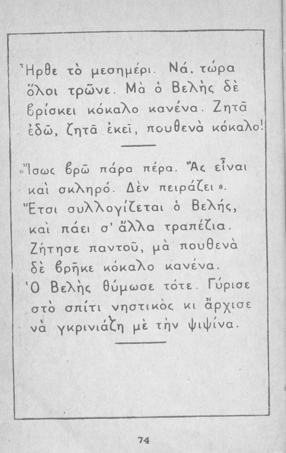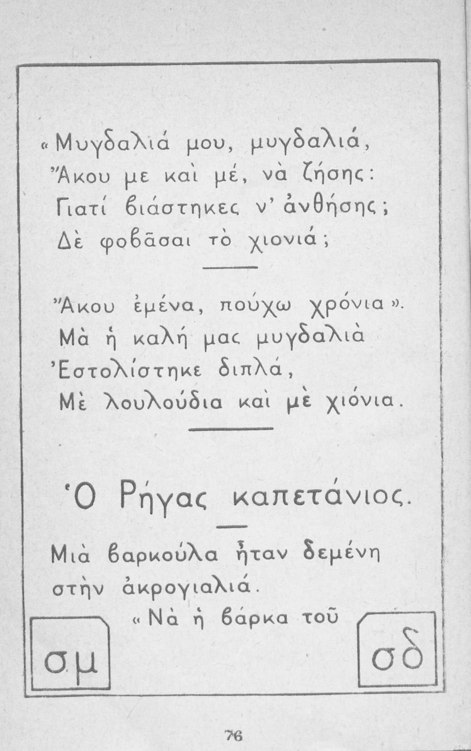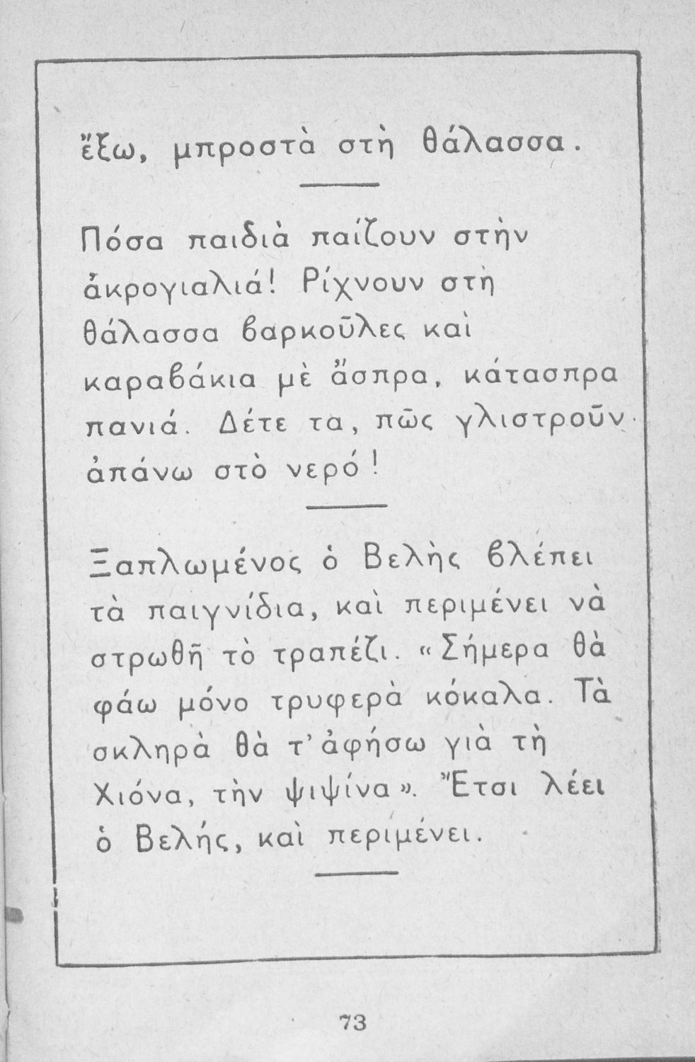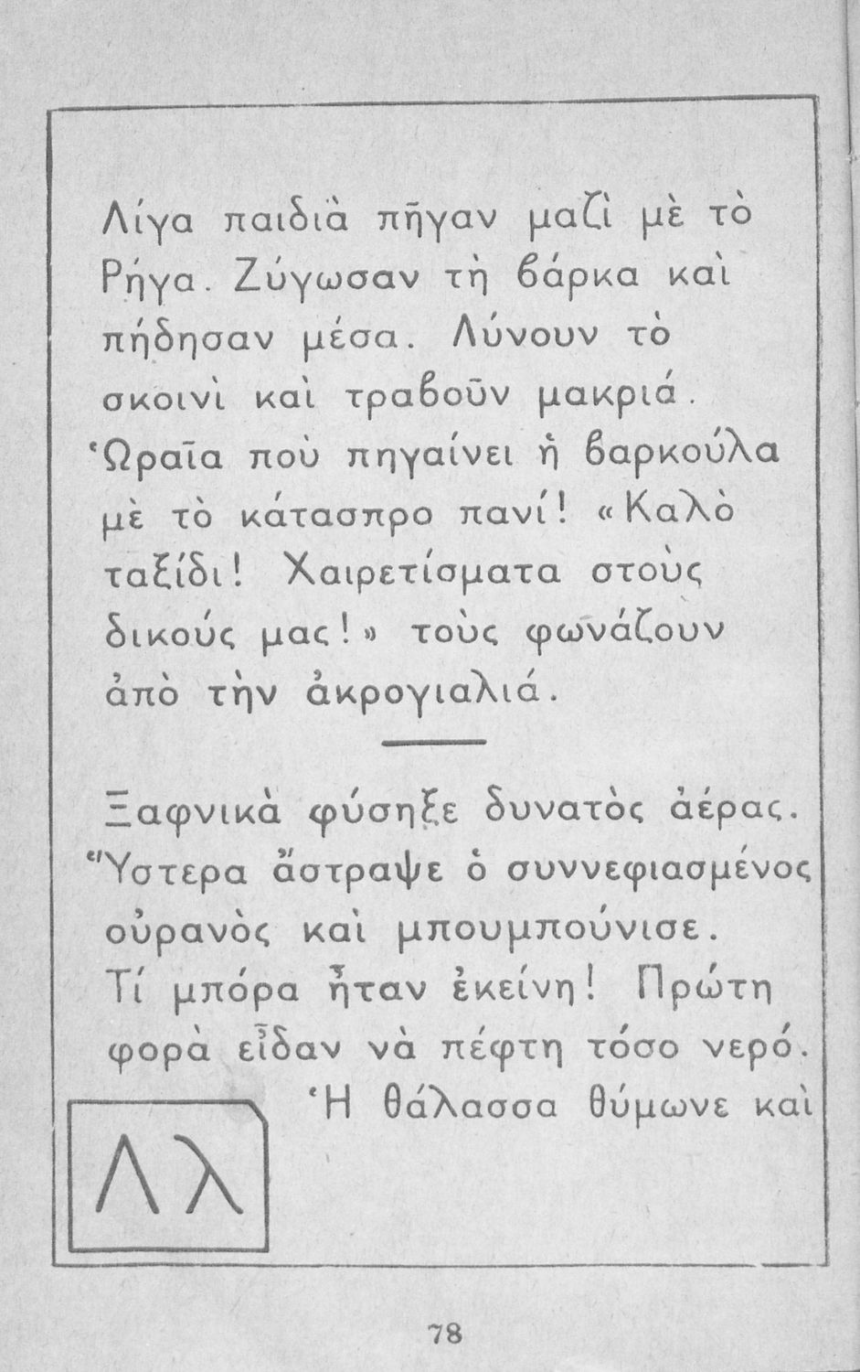 Σχολικό εγχειρίδιο Γλώσσας Δημοτικού που περιλαμβάνει τη γραμματική της νέας ελληνικής και είναι χωρισμένο σε φθογγολογικό, τυπικό και ετυμολογικό μέρος.