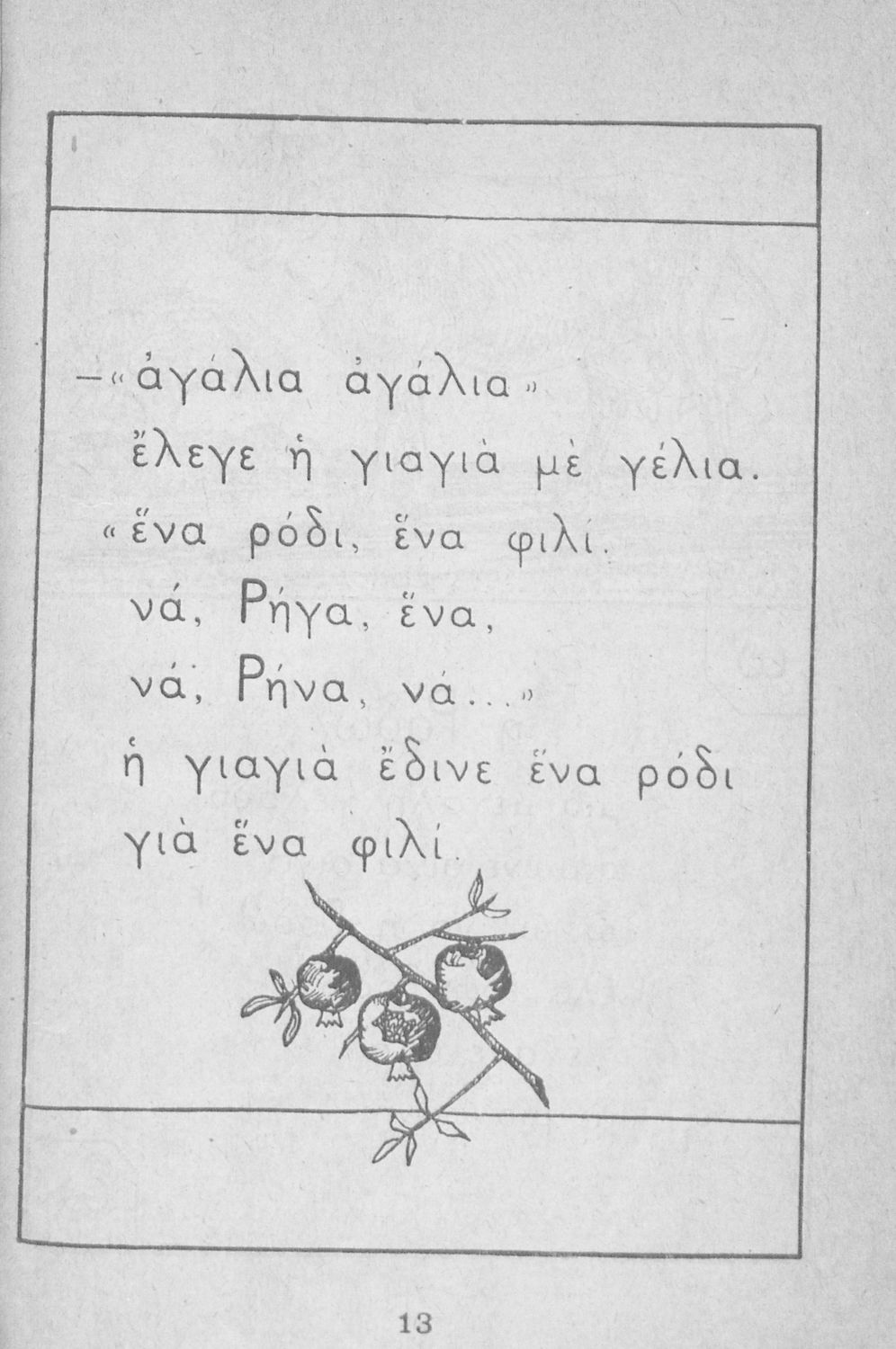 Αναγνωστικό Α΄ Δημοτικού που περιλαμβάνει μικρές συλλαβές και ιστορίες με θεματολογία από την οικογενειακή και κοινωνική ζωή μιας μικροαστικής οικογένειας κατά τη διάρκεια ενός χρόνου.